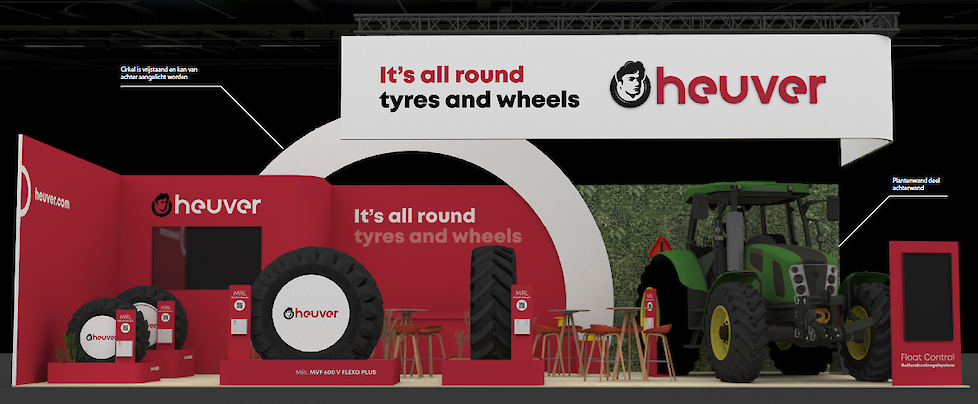 Naast de nieuwste productintroducties van MRL en Aeolus presenteert Heuver Banden tijdens de beurs ook een John Deere-tractor met wielen van Bevri - het huismerk op-maat-gemaakte landbouwwielen van Heuver - en het unieke Float Control-luchtdrukwisselsysteem wordt getoond. Daarmee wordt in één oogopslag zichtbaar hoe Heuver meerdere sterke merken samenbrengt en klanten een breed, volledig en innovatief aanbod biedt. Naast de banden op Heuvers eigen stand zijn ook merken uit het Heuver dealerschap-portfolio zichtbaar tijdens de beurs op andere stands, zoals die van Alliance, Nokian en MRL.