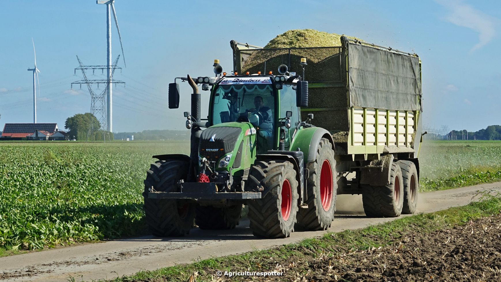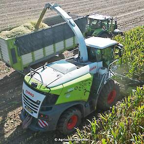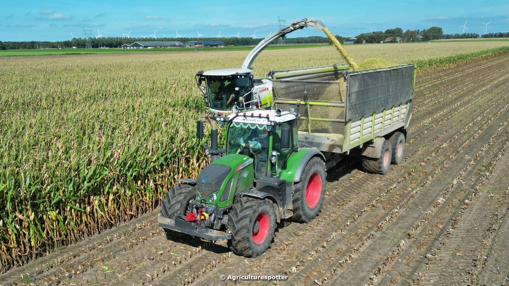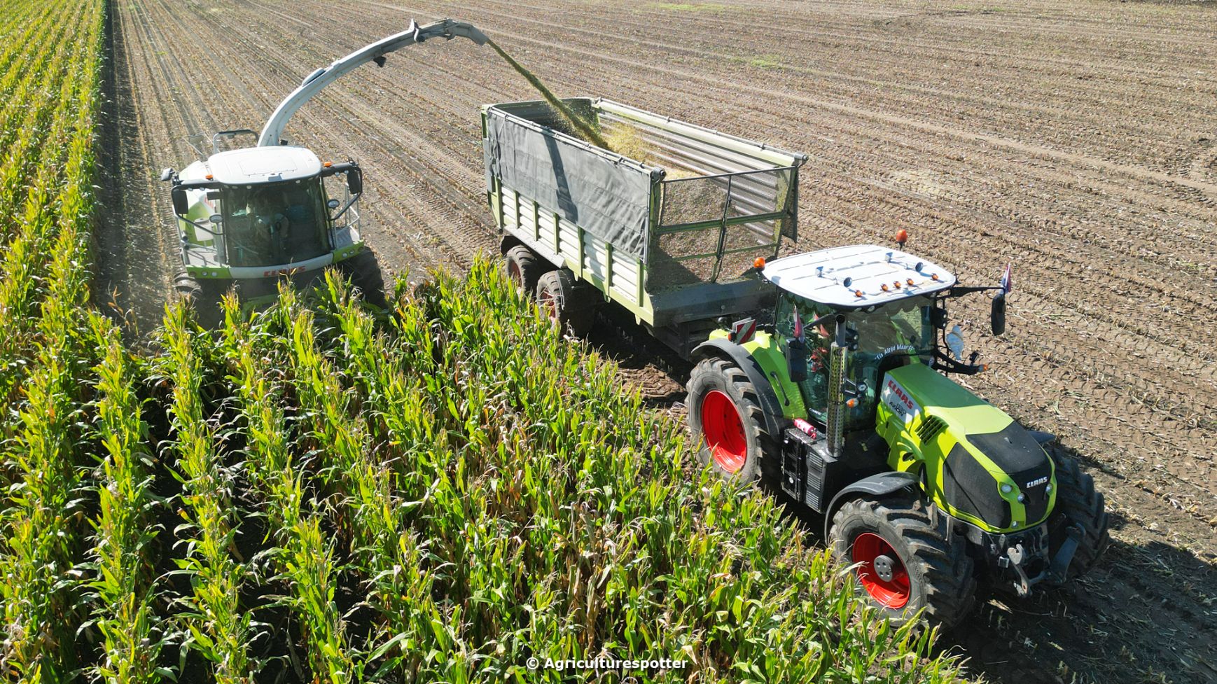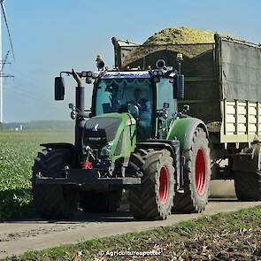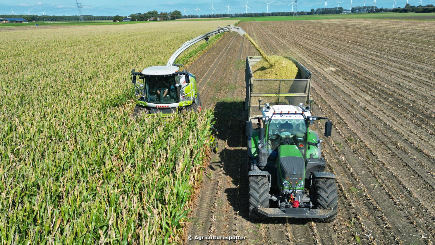 Maïs hakselen met een Claas Jaguar 960 van akker-/ loonbedrijf B. Hut uit Zeewolde. Het transport werd gedaan met een Fendt 722 Vario en een Claas Axion 830 met Kaweco Radium-silagewagens. De kuil werd aangereden met een Volvo L70H.