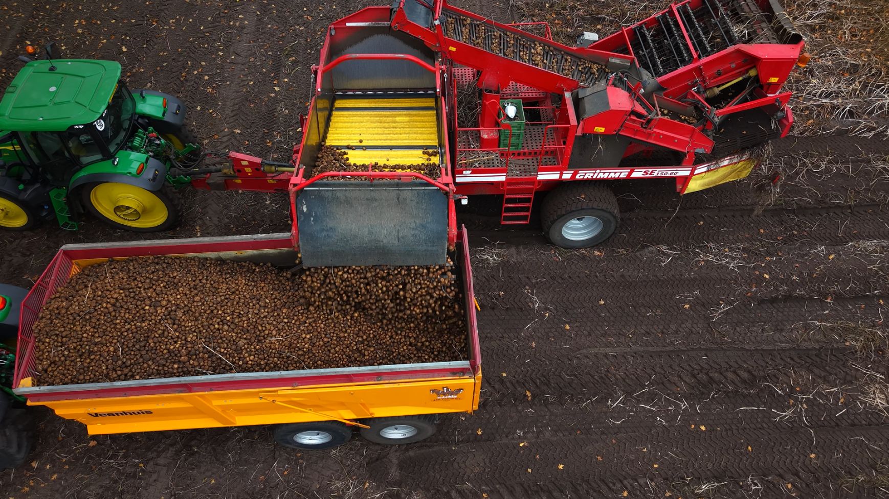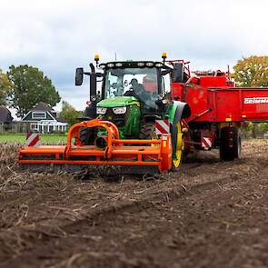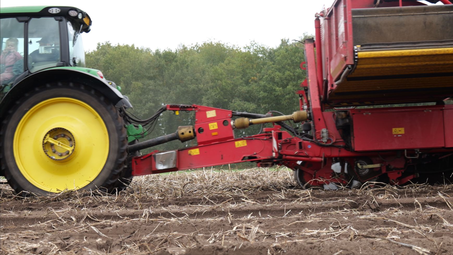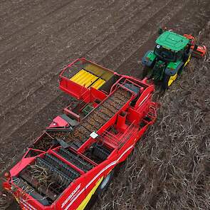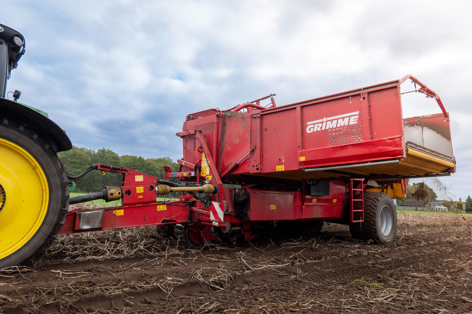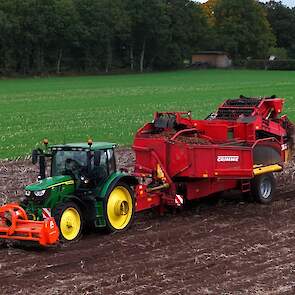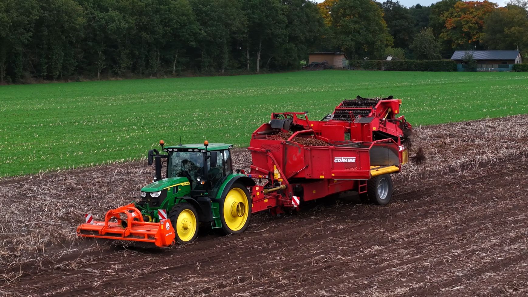 Video: John Deere met Shuttle Agrimaster in de fronthef en Grimme SE 150-60-rooimachine