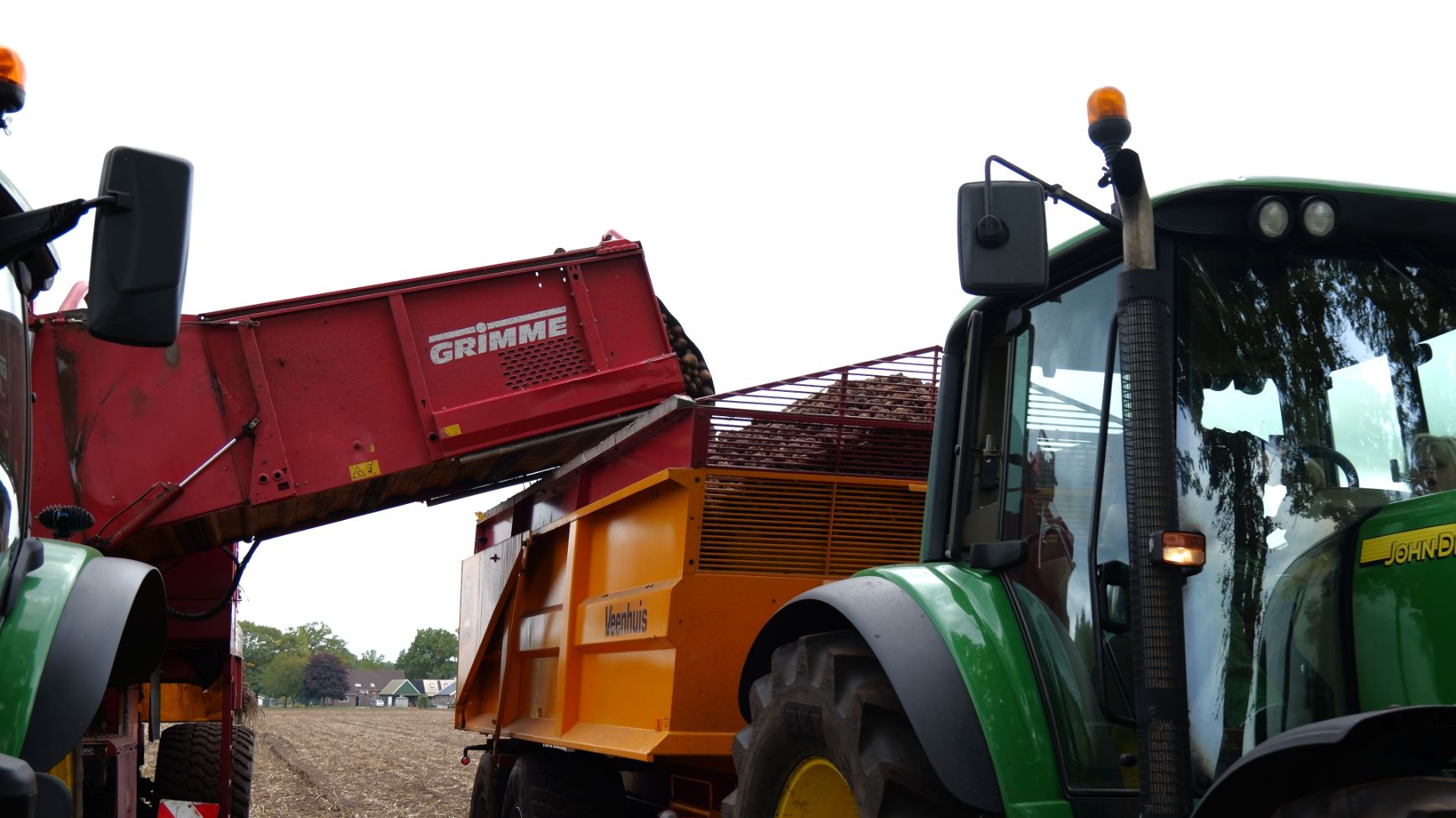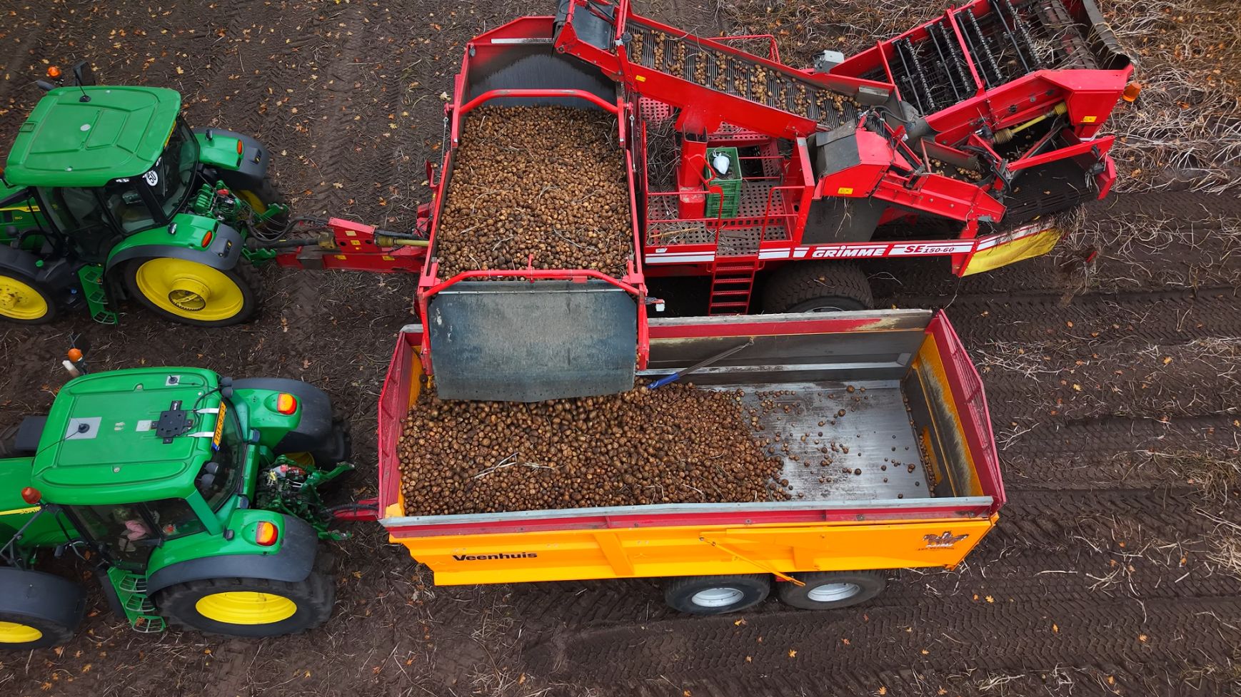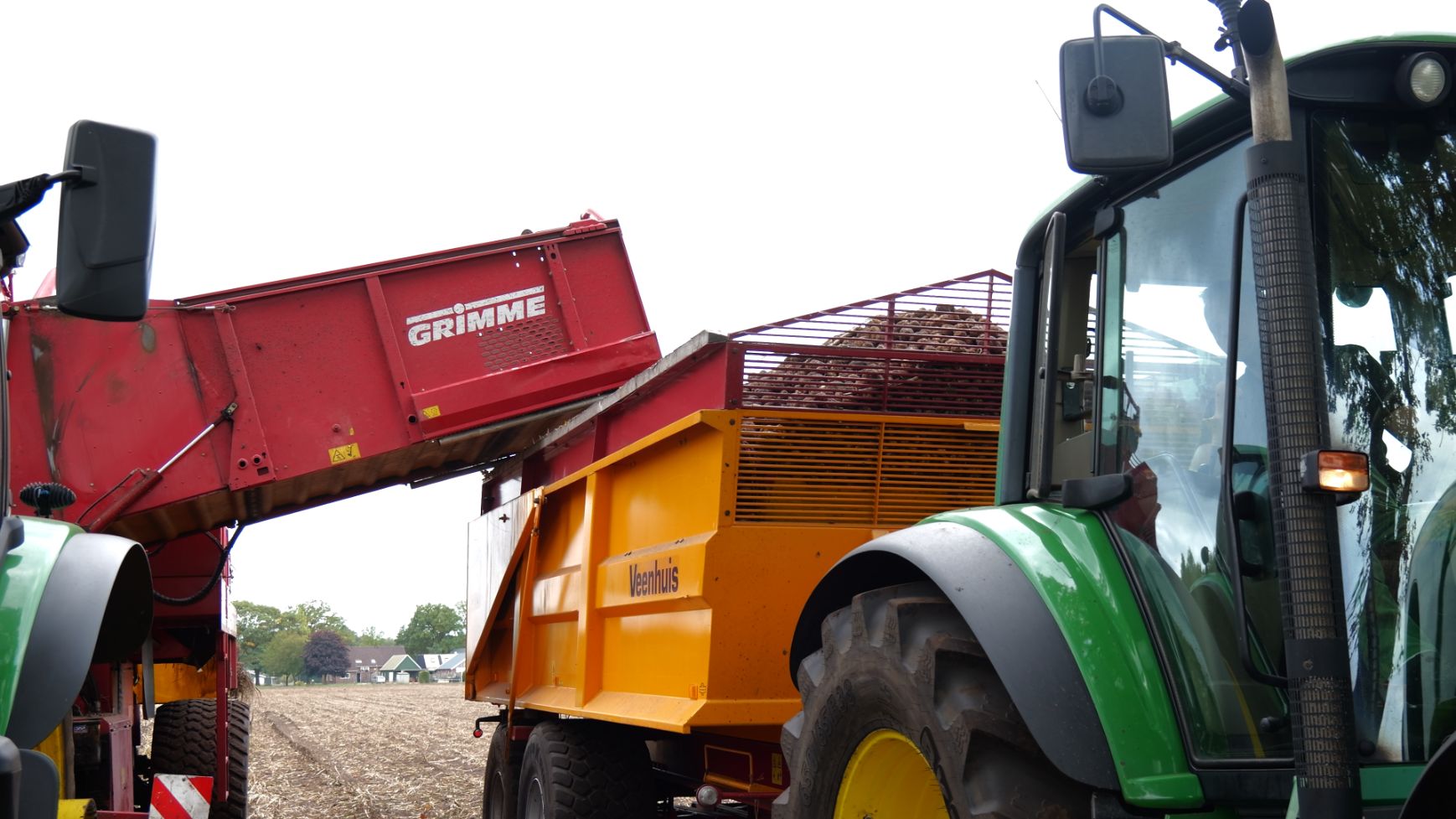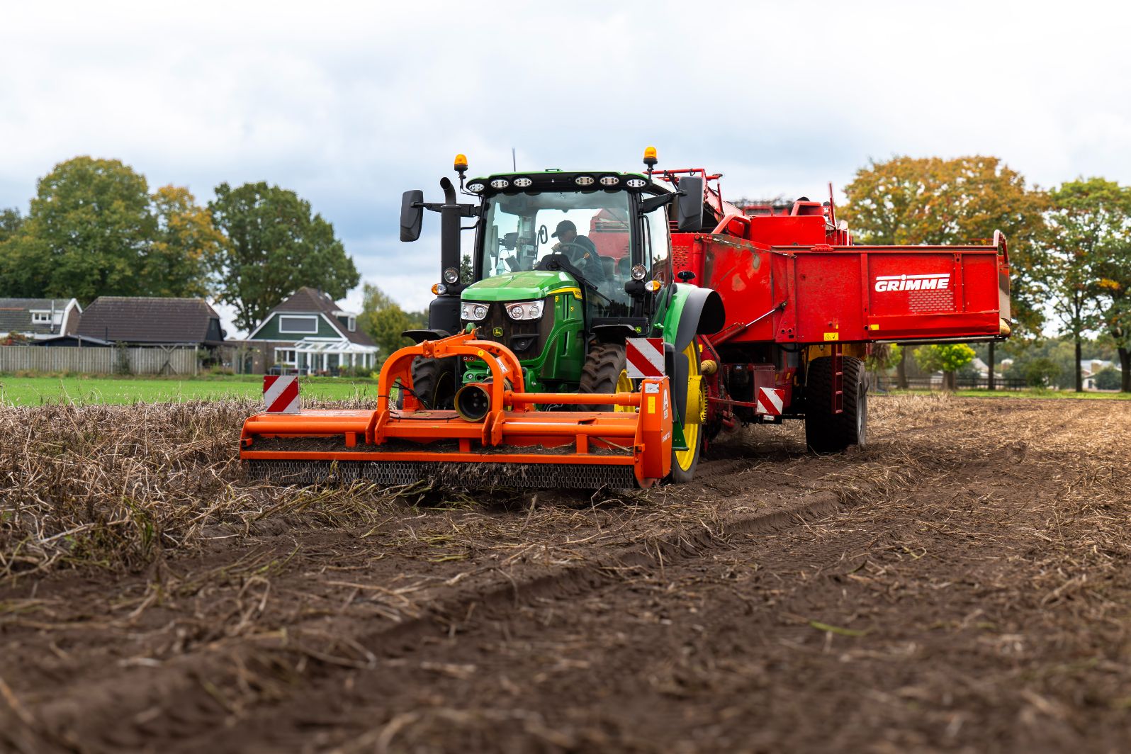 Video: John Deere met Shuttle Agrimaster in de fronthef en Grimme SE 150-60-rooimachine