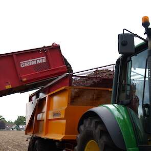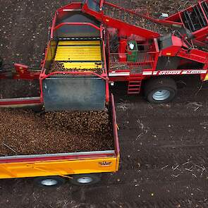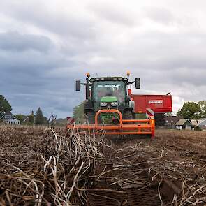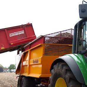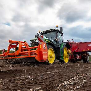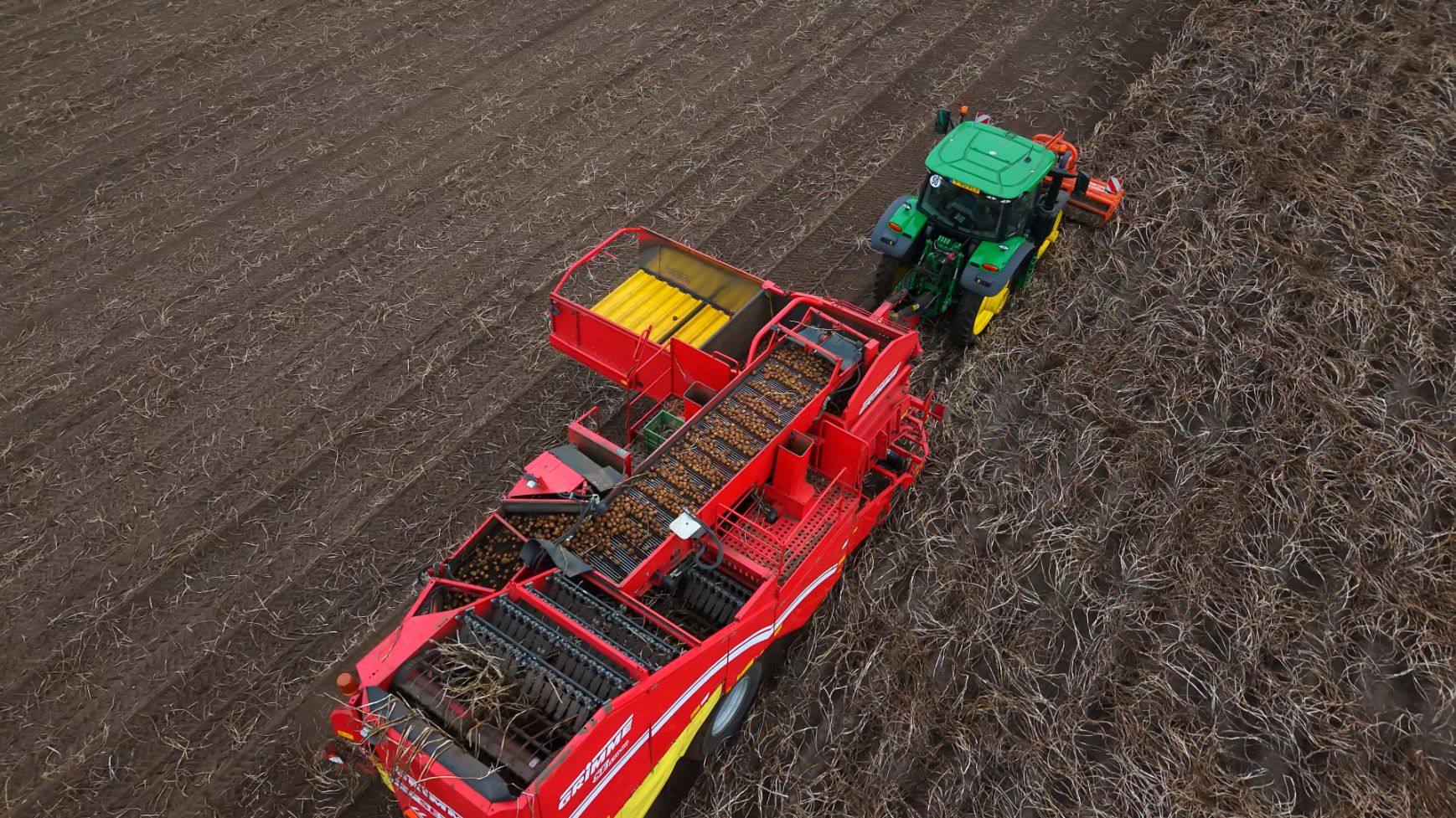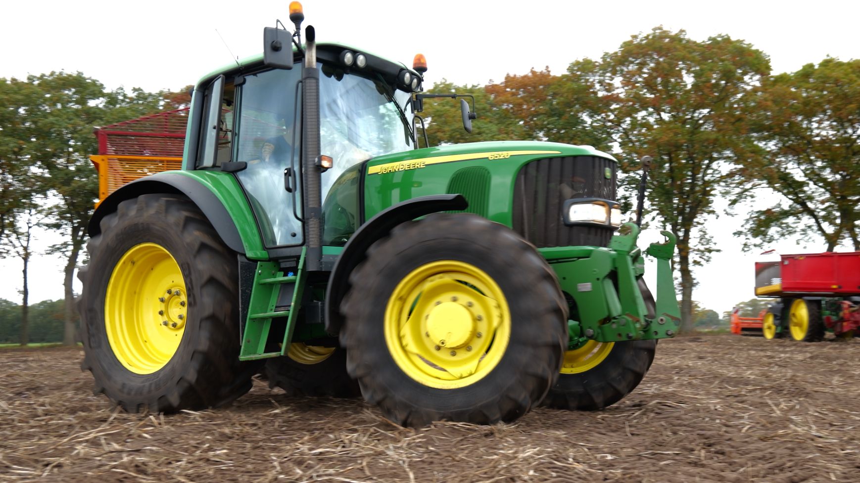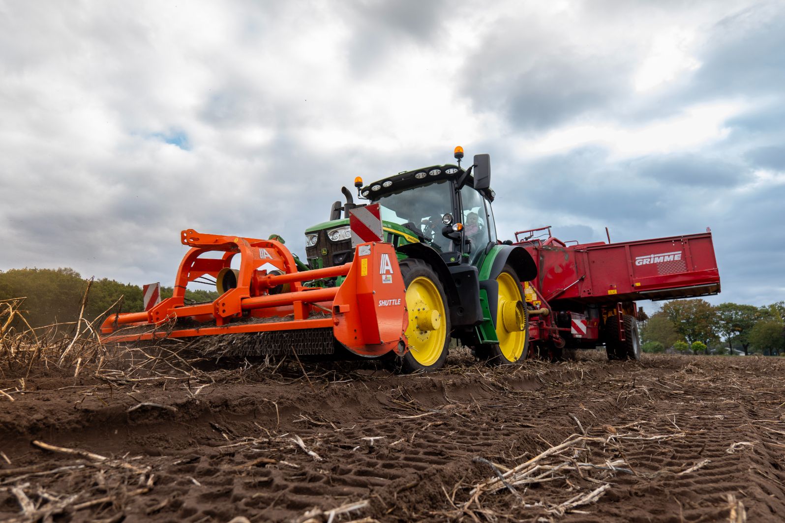 Video: John Deere met Shuttle Agrimaster in de fronthef en Grimme SE 150-60-rooimachine