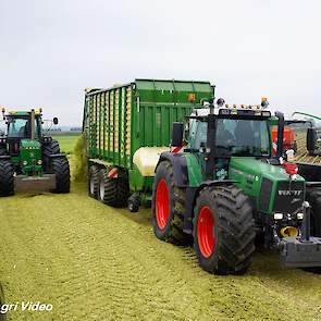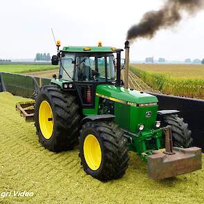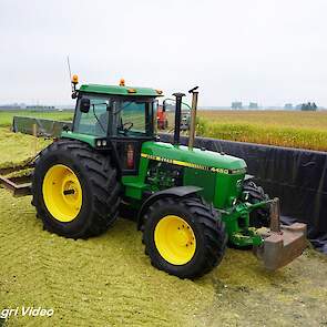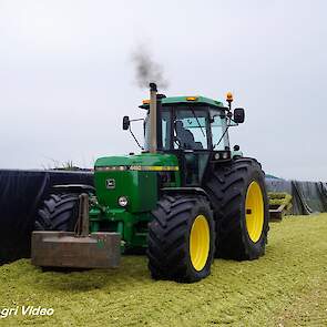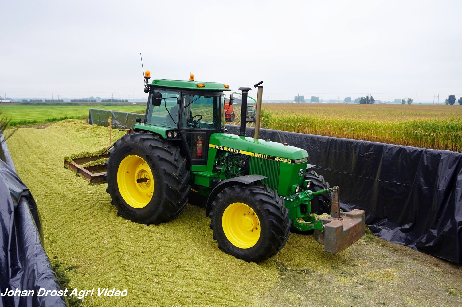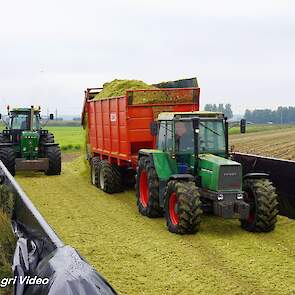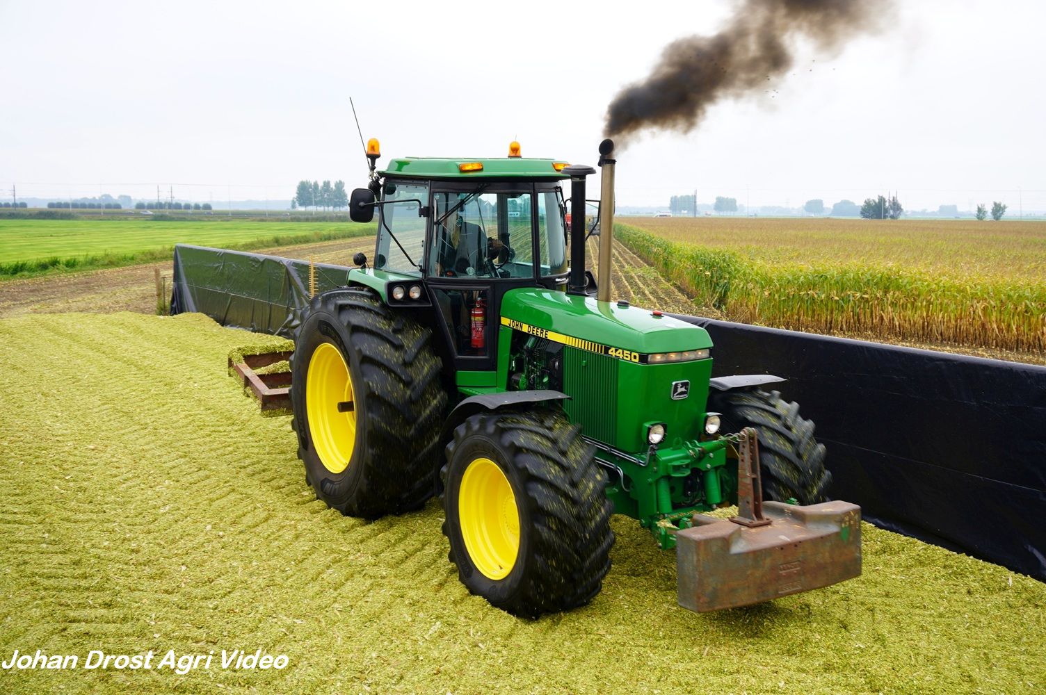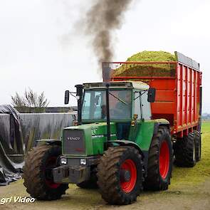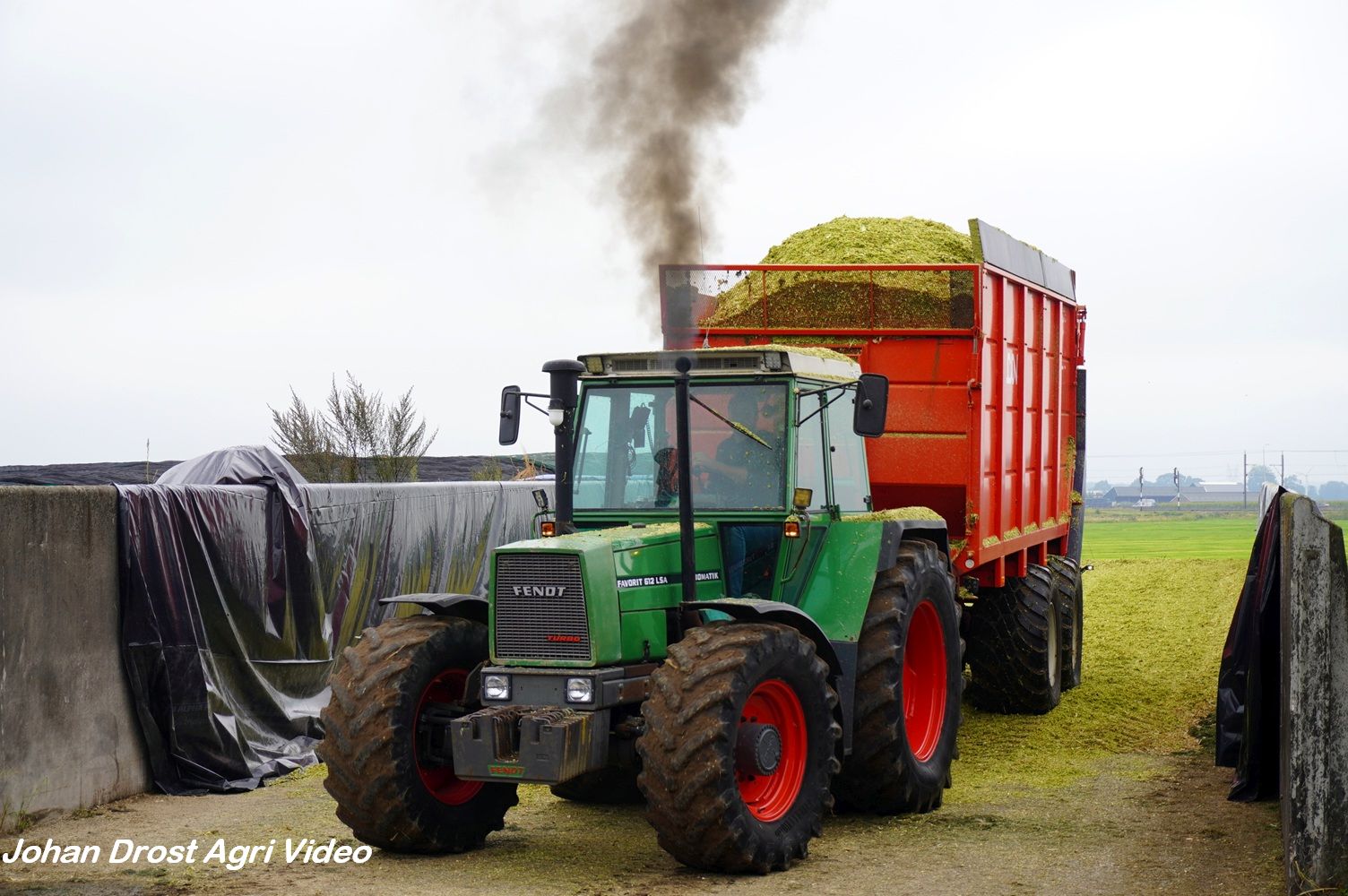 Melkveebedrijf Olieman uit Zalk aan het maïs inkuilen met een John Deere 4450, Fendt Favorit 612 LSA met Decov en Fendt Favorit 916 Vario met Krone.