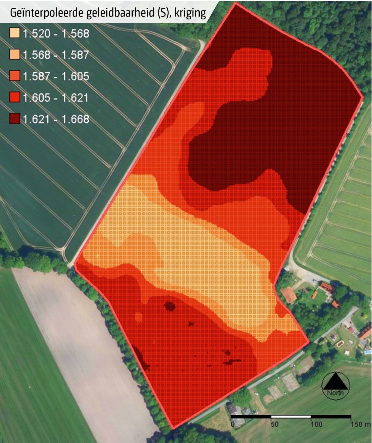 Na een verwerking van de meetgegevens en kriging (interpolatie van de geleidingswaarden) ontstaan geïnterpoleerde waarden van de elektrische geleidbaarheid (EC-waarden), die volgens de Jenks-methode worden geclassificeerd.