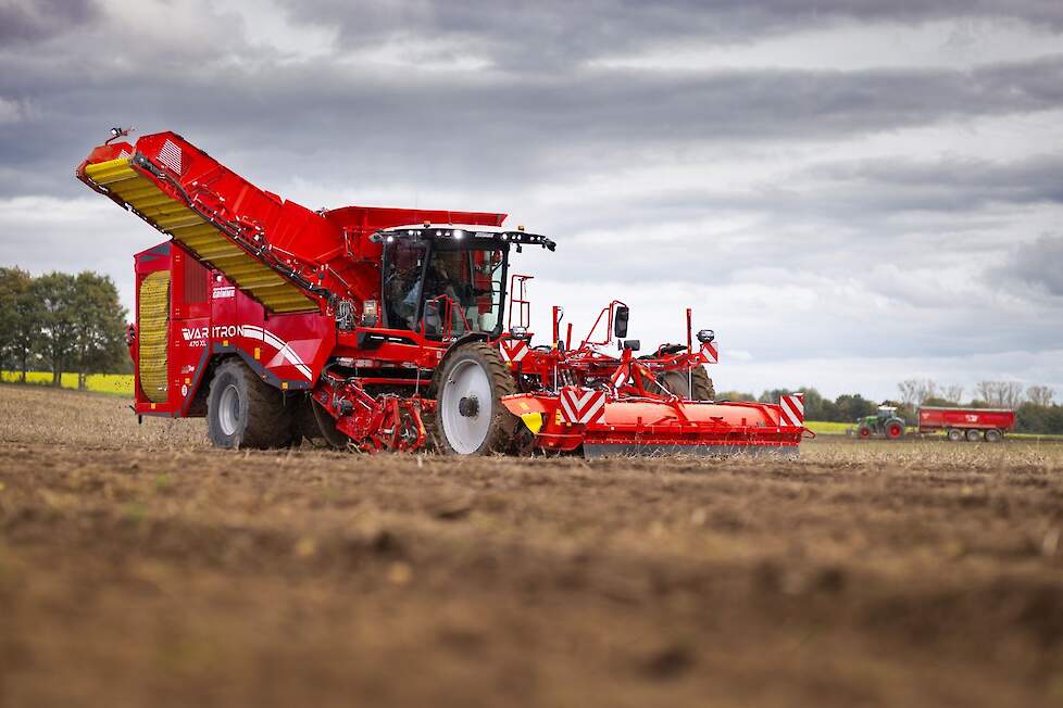 Grimme presenteert op de Agritechnica 2025 de intussen vierde generatie van de Varitron 470. De grote verscheidenheid aan uitvoeringen heeft er aanzienlijk toe bijgedragen dat de machine nu een van de meest gekochte vierrijige zelfrijdende machines ter wereld is voor de oogst van aardappelen, uien en wortelen. Bij de meest recente doorontwikkeling zijn talrijke klantwensen omgezet. De gepatenteerde NonstopBunker is er nu ook als XL-variant. Deze beschikt over een bunkerinhoud van 13 m³. Afhankelijk van het product, kaliber en additieven komt dit overeen met maximaal 11 ton. De nieuw ontwikkelde bunker is daarmee een van de grootste bunkers in de klasse van 4-rijige zelfrijdende machines met rollenreinigers en wielonderstel.