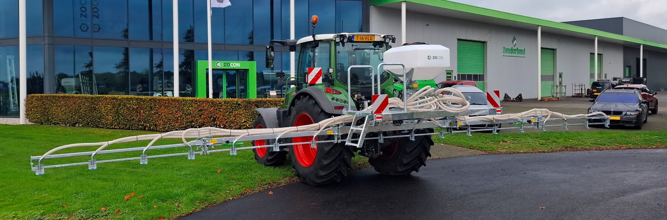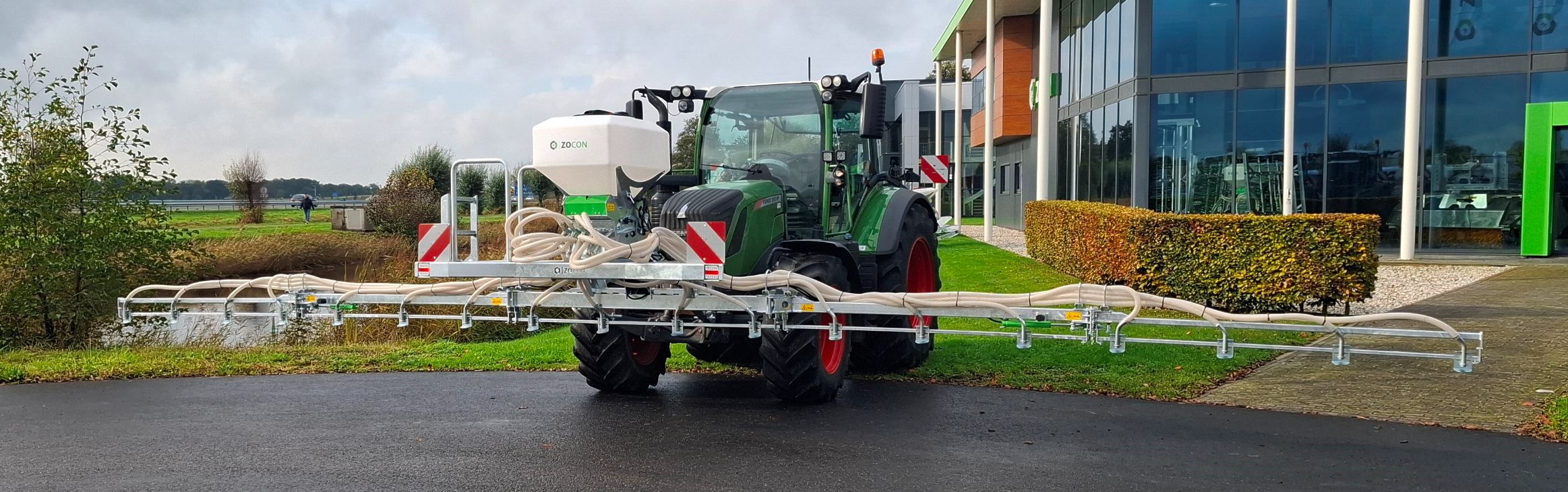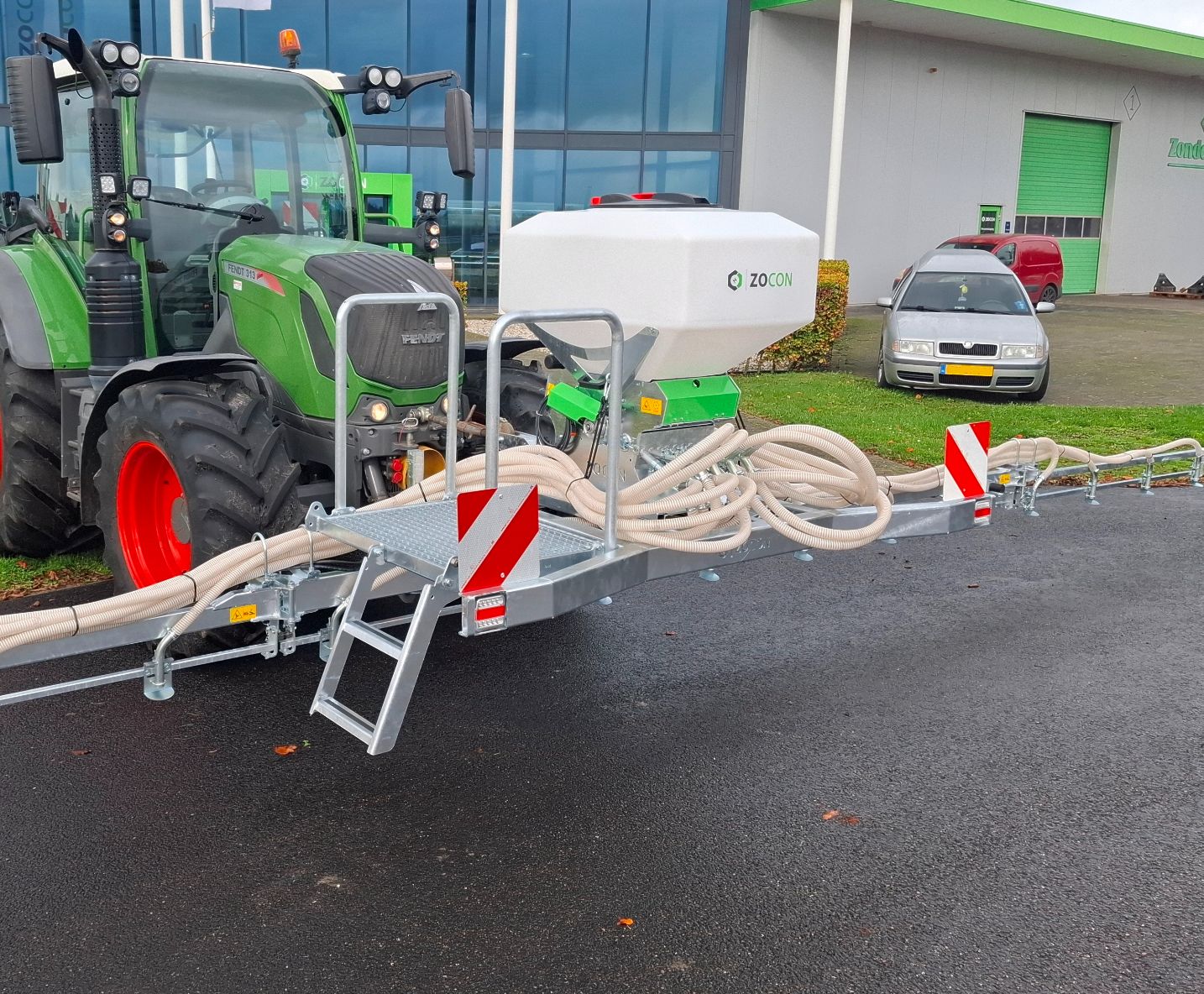 De nieuwste innovatie die meegaat naar de Agritechnica in Hannover is de Zocon-zaaiboom. Verkrijgbaar in 3 tot 12 meter en mechanisch of hydraulisch opklapbaar. Ideaal voor zaaien tussen andere gewassen of in combinatie met bijvoorbeeld een zaaiboom in de fronthef en een schijveneg of cultivator in de achterhef. Deze opklapbare zaaiboom is geschikt in combinatie met alle Zocon-zaaimachines en de ketsplaten zijn variabel in te stellen. Standaard is de zaaiboom voorzien van verlichting met breedtemarkering en geïntegreerde opklapbare steunpoten. Optioneel is een bordes met traptreden beschikbaar.