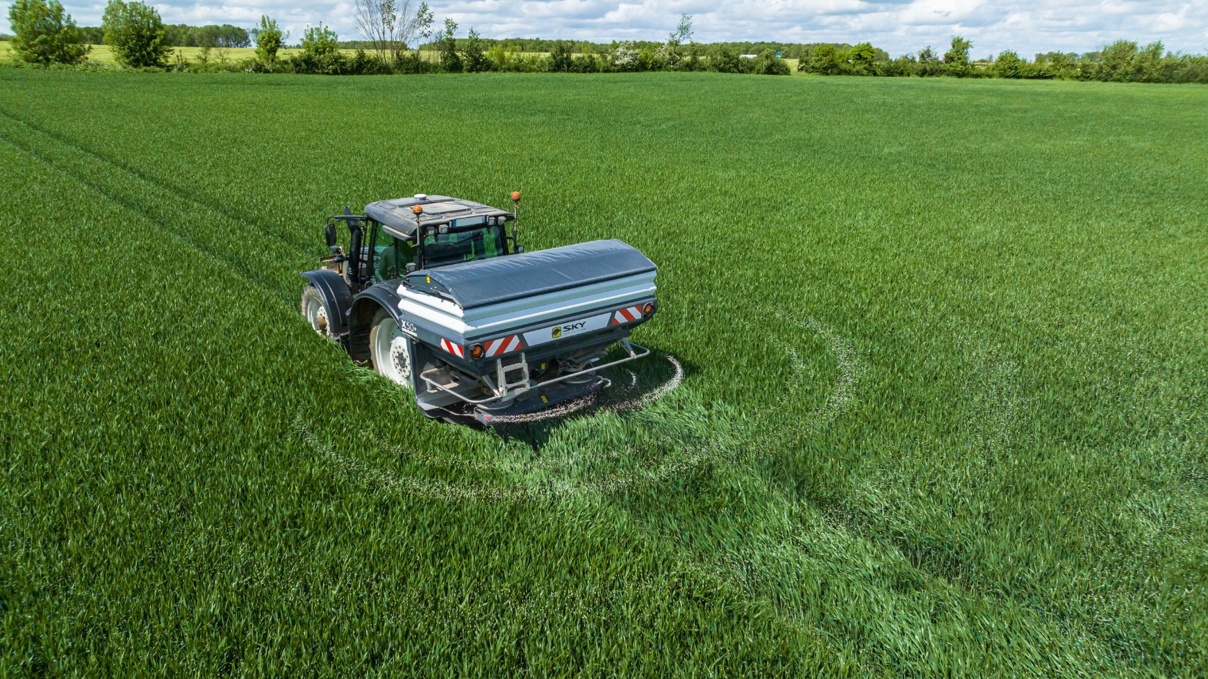 Met SKY Econov-kunstmeststrooiers is het mogelijk om uiterst nauwkeurig in secties en ook plaatsspecifiek kunstmest te strooien.