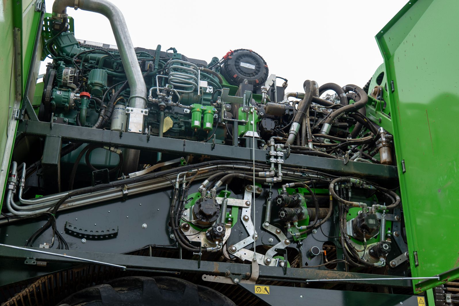 Vanuit de cabine geniet de bestuurder van een uitstekend zicht op de rooibek , die strategisch iets naar voren werd geplaatst. De vernieuwde ACC-rooibek is uitgerust met een snelwisselsysteem waarmee je de volledige bek — inclusief schaarhouder — in één beweging loskoppelt. Hierdoor kan de gebruiker binnen het half uur overschakelen naar een andere toepassing, zoals het rooien van uien.
