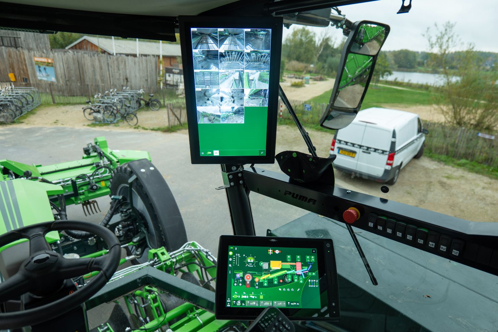Omdat machines steeds langere uren draaien, blinkt de gebruikerservaring uit in comfort, gebruiksgemak en geautomatiseerde functies. De nieuwe Claas X11-cabine van de AVR Puma biedt de bestuurder een comfortabele en intuïtieve werkomgeving. De ergonomische AVR-joystick ligt vlot in de hand en maakt bediening eenvoudiger dan ooit. Ook het bedieningsinterface en het camerasysteem kregen een grondige update: gebruiksvriendelijker, overzichtelijker en visueel aantrekkelijker. Alle camerabeelden worden nu weergegeven op één groot, helder display (tot 18 camera’s op één scherm) - voor maximale controle en veiligheid tijdens het werk.