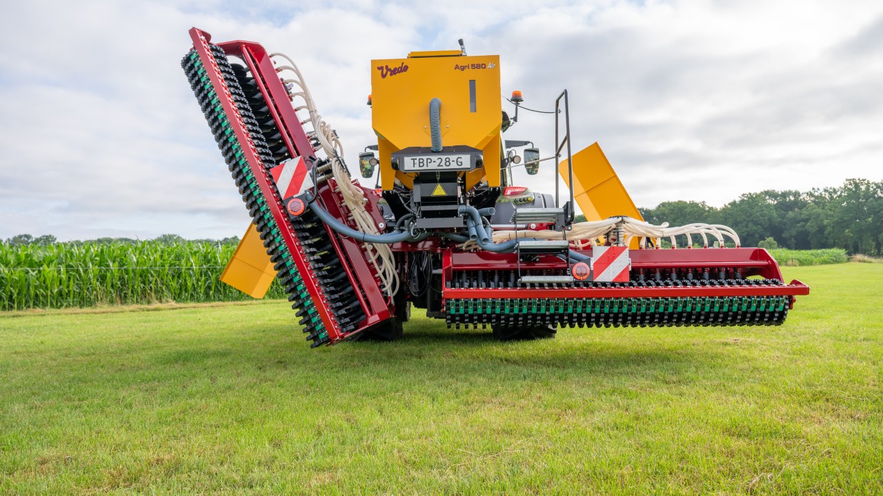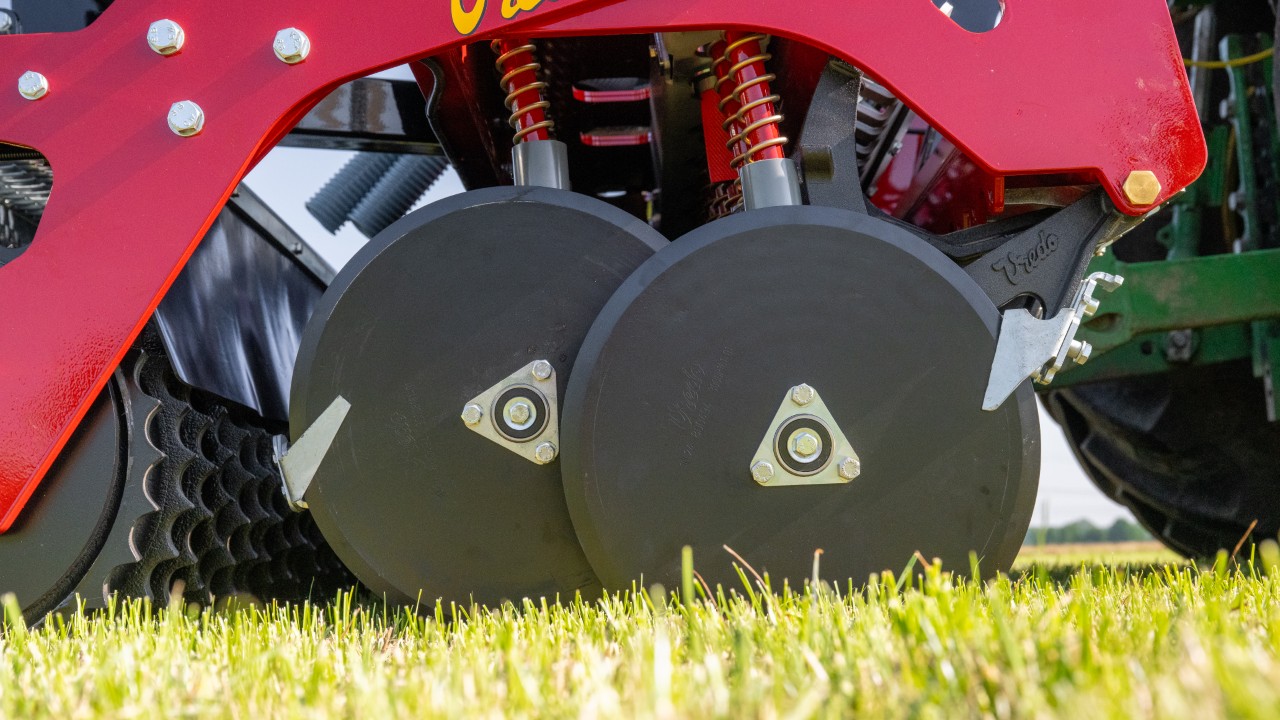 De Vredo DZ5 Agri bouwt voort op het beproefde dubbelschijf-zaaiprincipe van het bedrijf, waarbij V-vormige schijven de grond openen, het zaad precies op de juiste diepte plaatsen en de sleuf sluiten met een aandrukrol, zodat het zaad maximaal contact maakt met de bodem voor een optimale ontkieming.