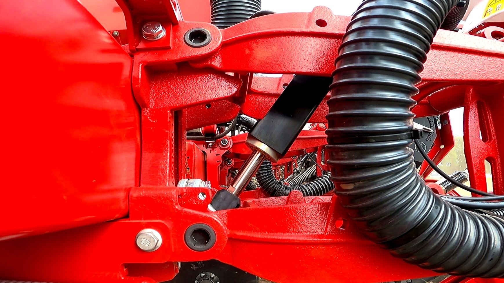 De bodemgesteldheid kan binnen een veld sterk variëren. Lichte bodems hebben minimale druk nodig, terwijl zwaardere bodems meer kracht vereisen voor een goede indringing. Als de druk te laag is, bestaat het risico dat de rijen inzakken en de zaaidiepte ongelijkmatig wordt. Overmatige druk kan daarentegen verdichting van de groeven veroorzaken, wat de wortelontwikkeling kan belemmeren en het sluiten van de rijen moeilijker maakt. De kern van Geoforce wordt gevormd door een slim sensorsysteem en een dubbelwerkende hydraulische cilinder, die automatisch de neerwaartse kracht aanpast of de druk rij voor rij vermindert. Het resultaat: geen ophopen meer, minder onkruid, minder zaadverlies en betere prestaties bij hogere snelheden. Het vermindert ook de slijtage van onderdelen, verlaagt het brandstofverbruik en ondersteunt duurzame landbouw door meer gerichte toepassingen mogelijk te maken.