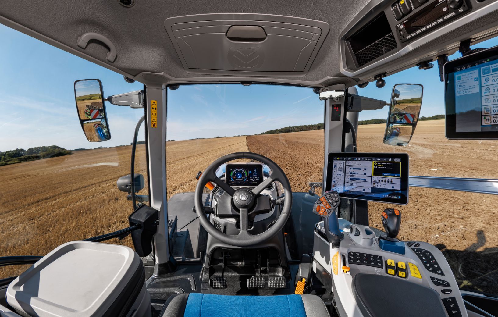 Inlooptreden zorgen voor een gemakkelijke in- en uitstap, naast een handwasbak en geïntegreerde externe opbergruimte voor gereedschapskisten, aangevuld met een grote opbergruimte in de cabine. Het geluidsniveau in de cabine is slechts 68 decibel en de IntelliView™ 12 touchscreen-terminal behoort tot de standaarduitrusting, waarmee bestuurders de trekker en alle Isobus-werktuigen kunnen instellen en General Business controleren. De functies omvatten onder andere Baler Mode, die de beweging van de cabine vermindert bij het werken met vierkantebalenpersen door de slag van de voorasvering voortdurend aan te passen om de beweging van de cabine en het motortoerental te verminderen.