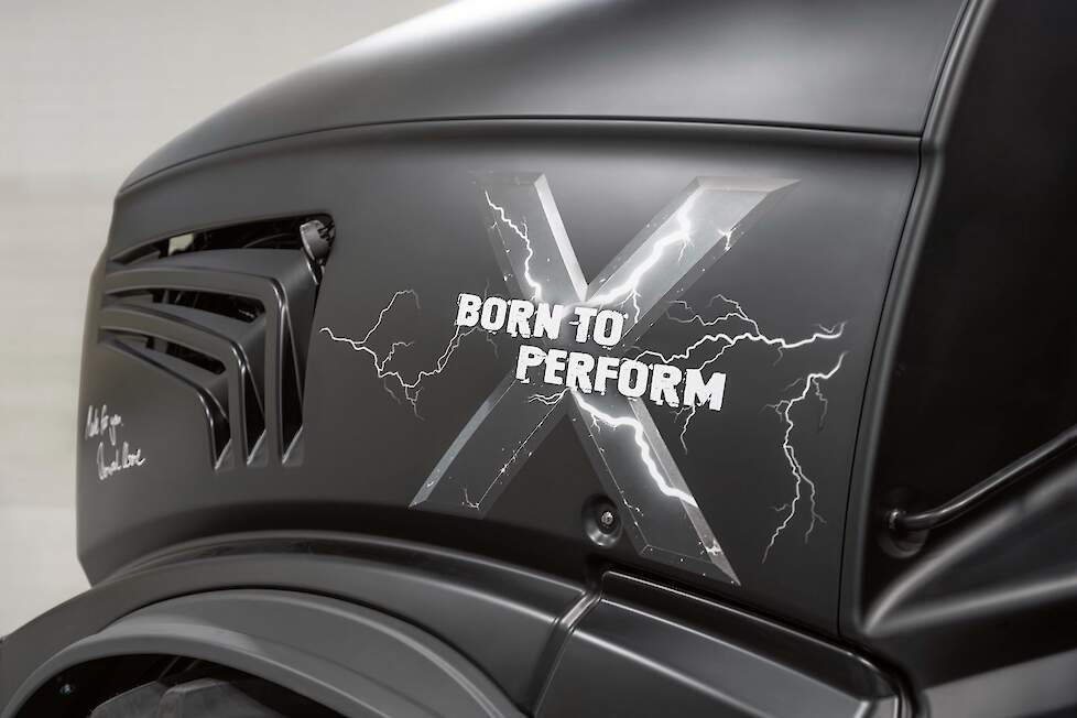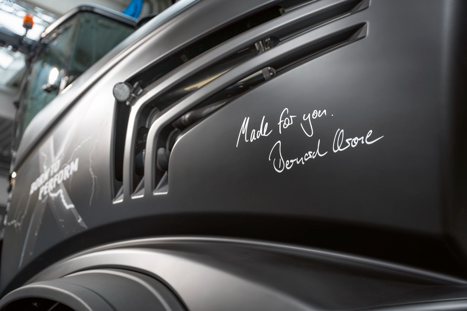 Sinds 25 jaar staat de naam BiG X voor compromisloze prestaties en praktijkgerichte ontwikkeling. Dit jubileummodel, dat overigens ook in schaal 1:32 verkrijgbaar is, vertaalt deze attitude zichtbaar in design en detail: de speciale matzwarte lakafwerking belichaamt technische soevereiniteit en bewust understatement – een kleur die niet schreeuwerig hoeft te zijn om zijn kracht te tonen. De belettering 'Born to perform', uitgevoerd met bliksemachtige accenten, symboliseert energie en vastberadenheid. De persoonlijke signatuur van Bernard Krone 'Made for you' staat voor verantwoordelijkheid, passie en authenticiteit. Tezamen resulteren ze in een belofte die Krone al sinds 25 jaar vervult: innovatie uit overtuiging.