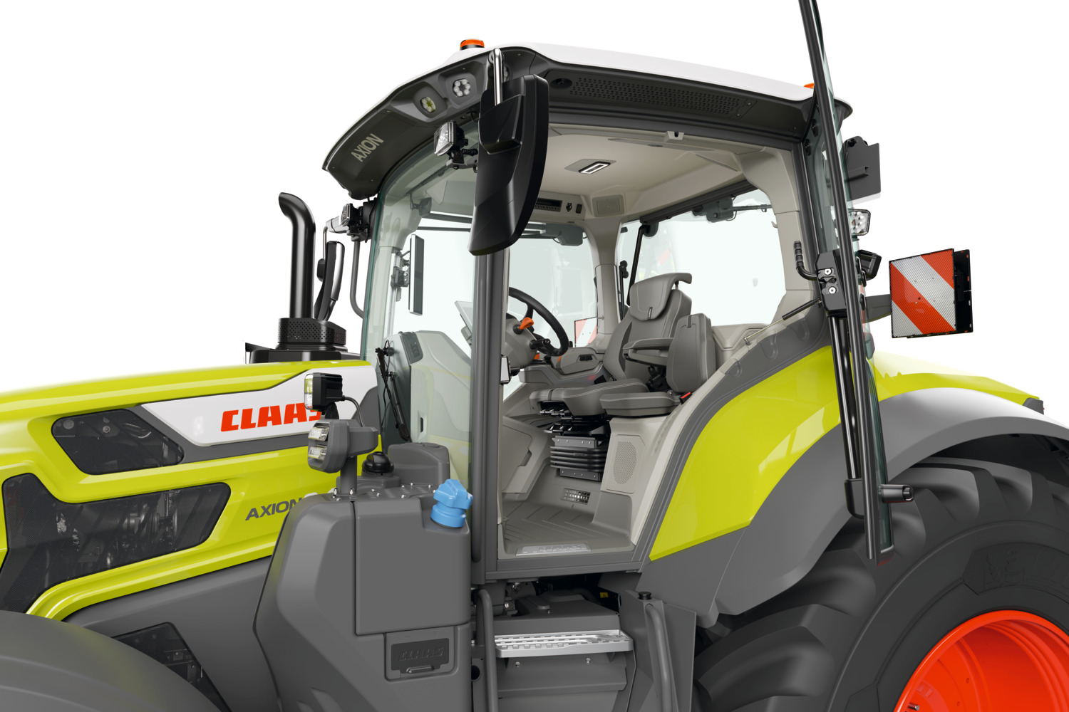 Een ander hoogtepunt van de nieuwe Axion 9-serie is de volledig nieuw ontwikkelde cabine. Met een volume van ongeveer drie kubieke meter biedt deze een nieuw ruimtegevoel en veel plaats voor premium bestuurdersstoelen, passagiersstoel en opbergvakken, evenals onbeperkte beenruimte, ook voor lange bestuurders. De instap in de vierpijlercabine is geoptimaliseerd en is nu de breedste in deze tractorklasse.