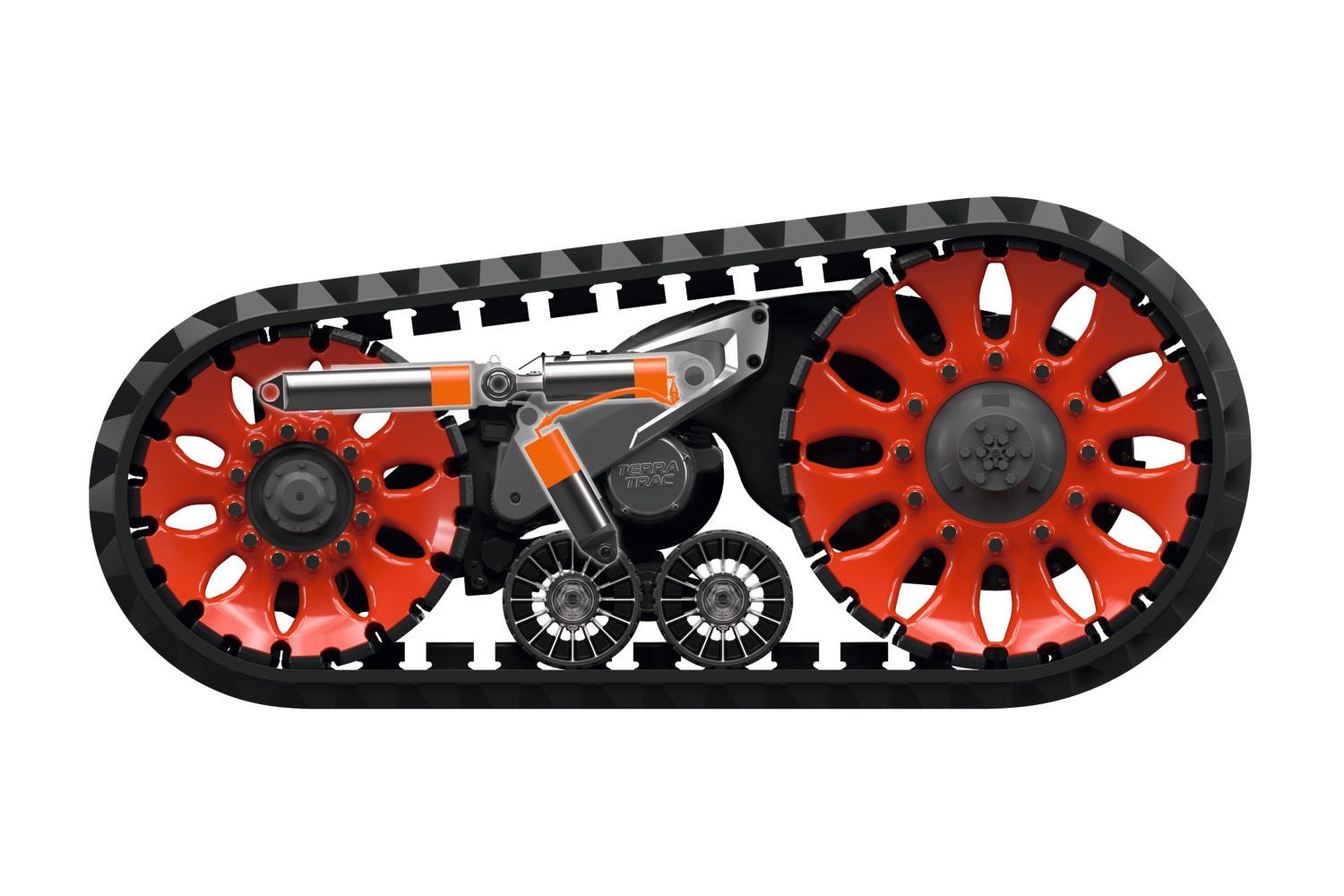 Dankzij de Terra Trac-aandrijvingen hebben de tractoren tot 50 procent meer contactoppervlak en vormen ze dankzij hun maximale buitenbreedte van 3 m een praktisch en economisch alternatief voor dubbele wielen. Loopbandbreedtes van 457 mm, 635 mm, 735 mm en 890 mm maken een breed spectrum aan toepassingen mogelijk, van maaien of bemesten op gevoelige bodems tot gecontroleerde verkeersprocedures en gebruik in ver ontwikkelde rijgewassen.
