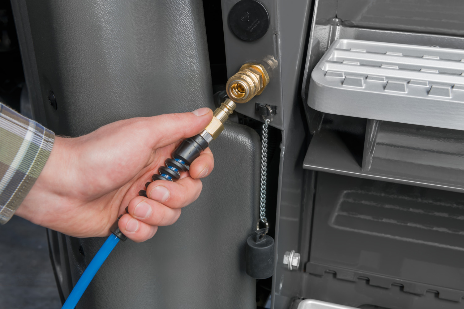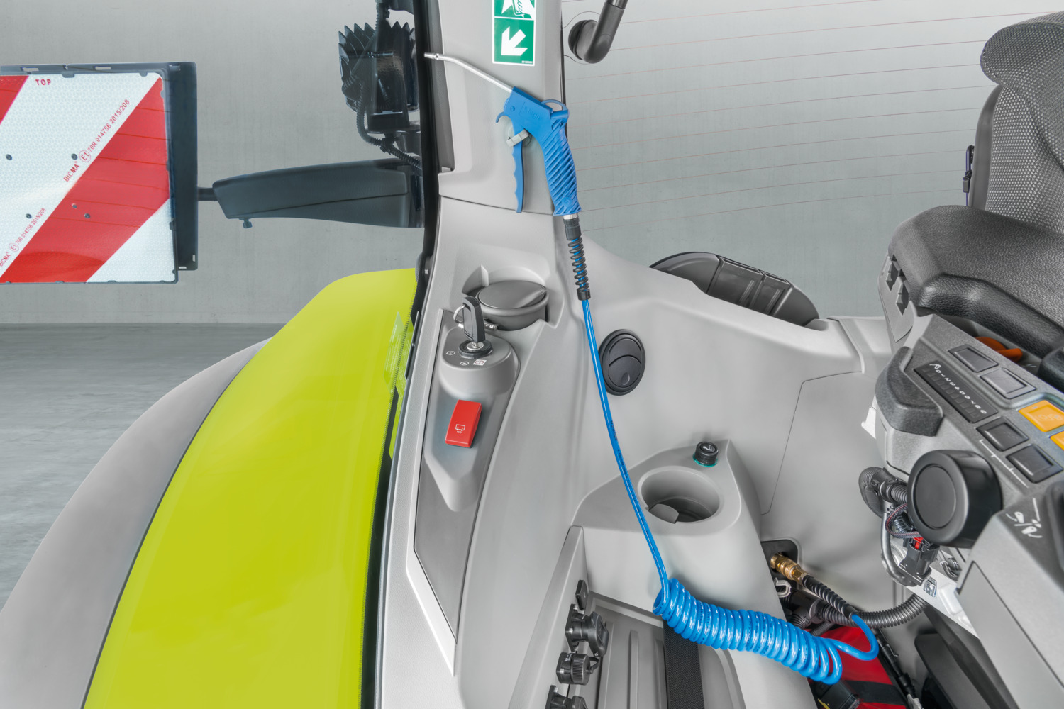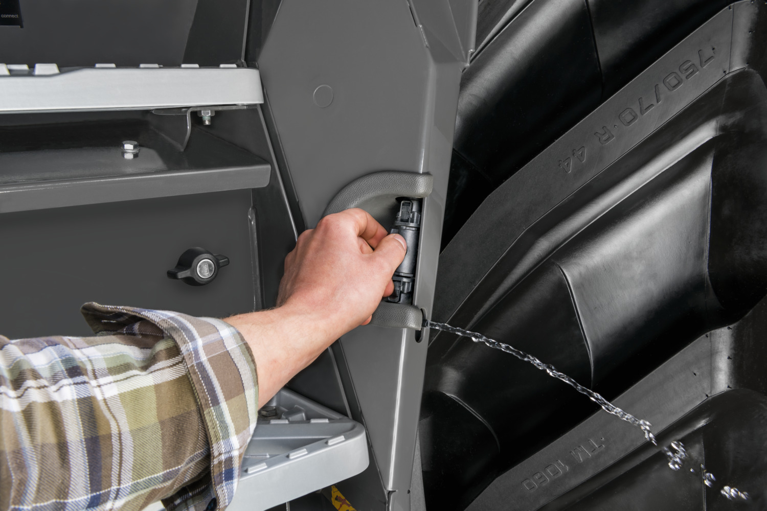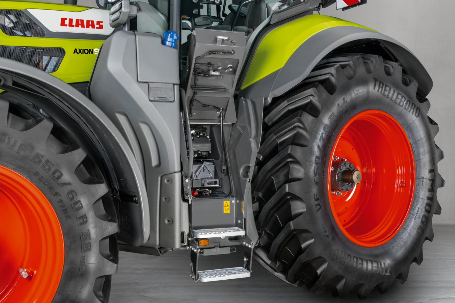 Het centrale smeersysteem, dat ook de vooras en bij de Axion 9 Terra Trac de aandrijvingen smeert, zorgt voor nog meer ontlasting bij het dagelijkse onderhoud. Een handwasbak bij de opstap en persluchtaansluitingen aan de buitenkant en in de cabine maken het regelmatig reinigen van de Axion 9 tot een schone zaak. Een nieuw centraal smeersysteem voorziet de vooras en bij de Axion 9 Terra Trac ook de smeerpunten van de Terra Trac-aandrijvingen continu van smeermiddel, wat de bestuurder ontlast en altijd een optimale dosering garandeert.