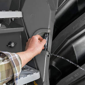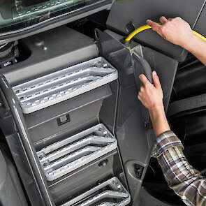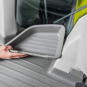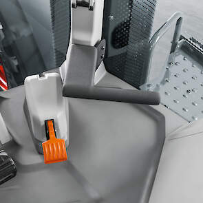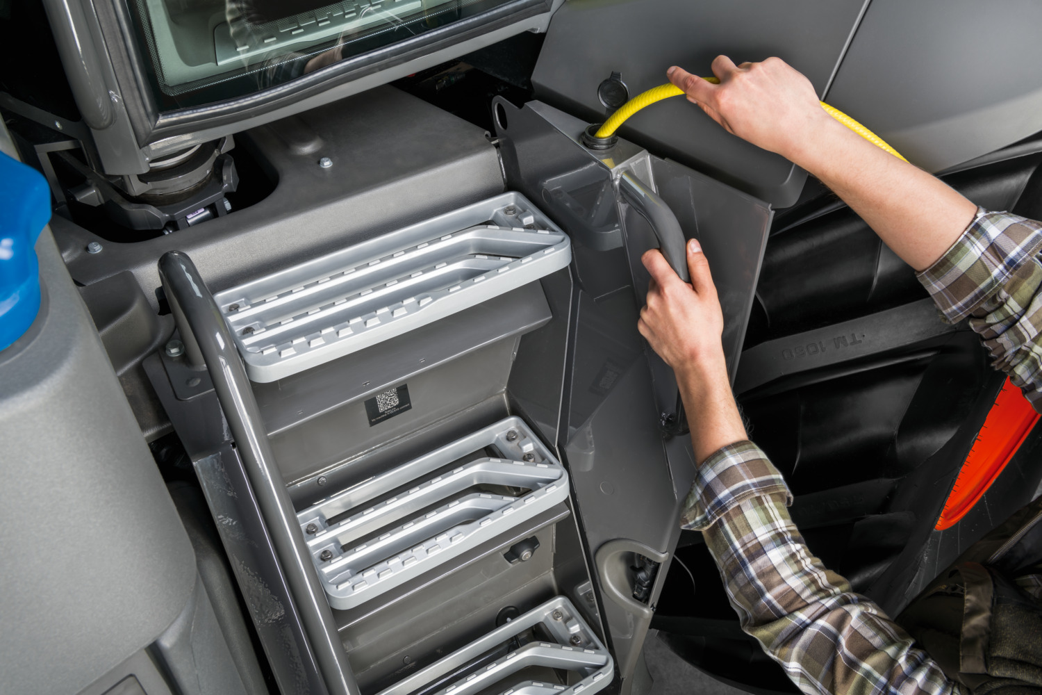 En: een opklapbare ladder aan de rechterkant, handgrepen en relingen aan de cabine vergemakkelijken het reinigen van de zijruiten. De ruitenwisser van de voorruit heeft een veegbereik van 280 graden en garandeert zo altijd een optimaal zicht naar voren.