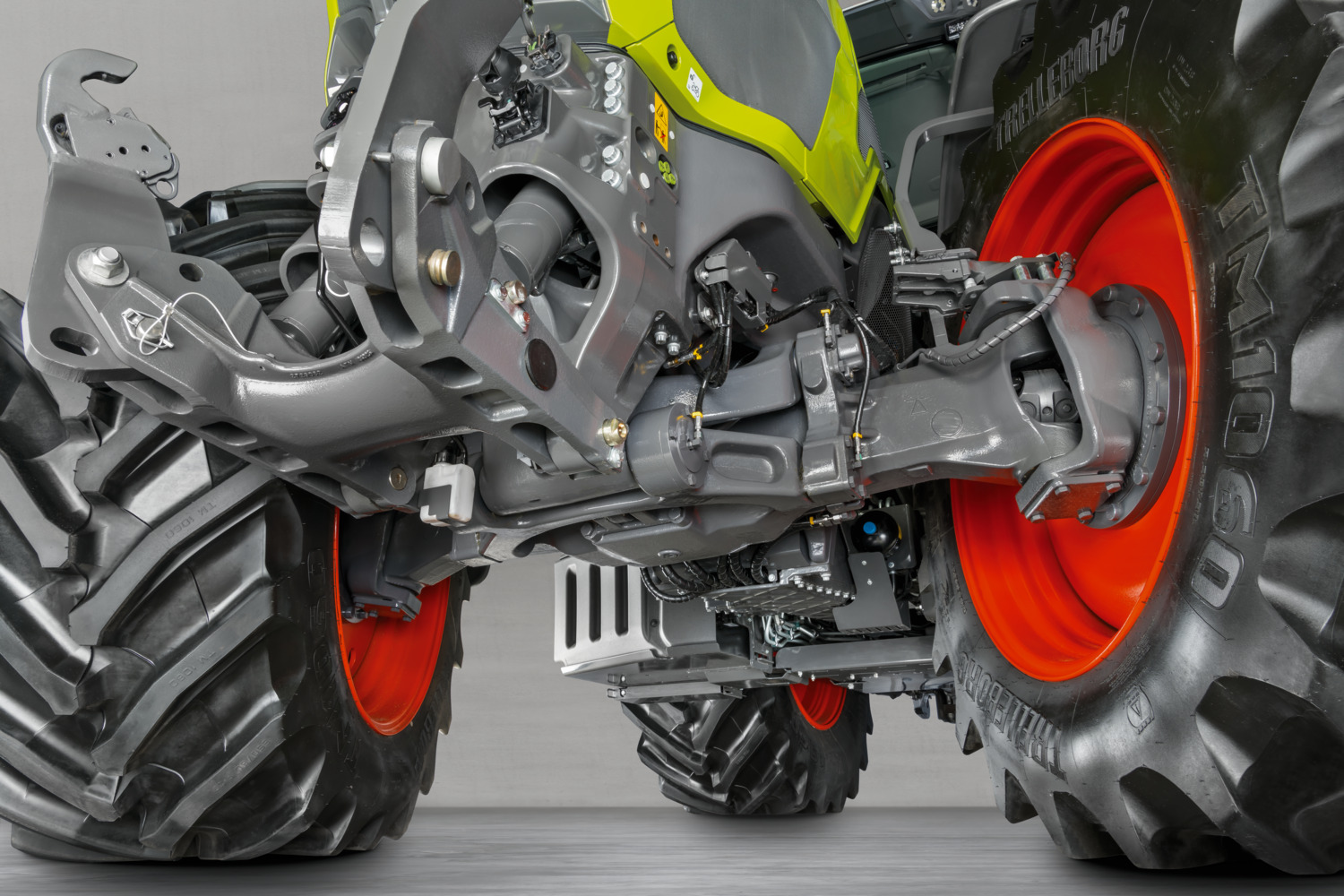 Met een hefvermogen van 11 tot 13 t achteraan en 6,5 t vooraan zijn er geen grenzen aan het gebruik van de Axion 9, zelfs met zware aanbouwapparatuur. Bijzonder praktisch is de optionele persluchtondersteunde bevestiging voor de hydraulische bovenste hefarmen, waarmee het aan- en afkoppelen kinderspel wordt. Het vullen gebeurt bij draaiende motor via de persluchtcompressor van het remsysteem.
