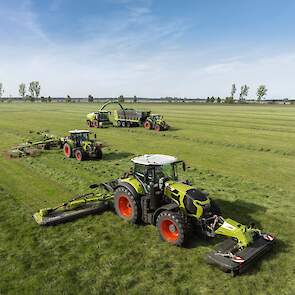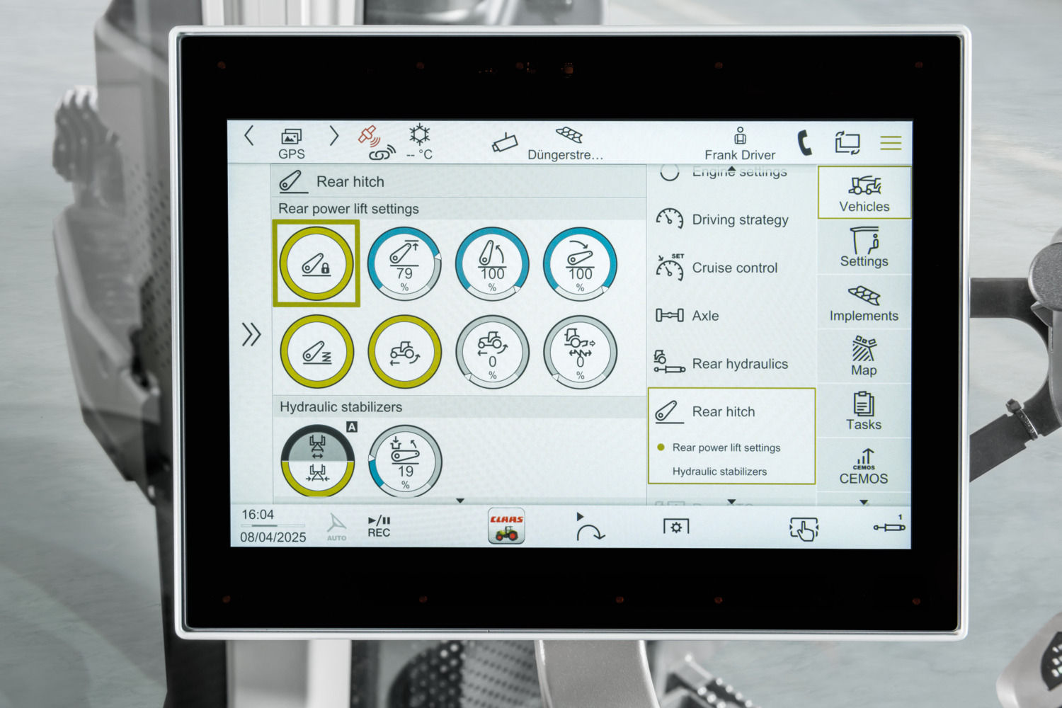 Andere functies regelen het motortoerental en de overbrengingsverhouding in functie van de belasting, de rijsnelheid en de hydraulische behoefte. Zo wordt onder alle gebruiksomstandigheden het benodigde vermogen geleverd bij een minimaal brandstofverbruik. Het resultaat is een zeer dynamisch en geoptimaliseerd rijgedrag, zonder dat handmatige instellingen en handelingen door de bestuurder nodig zijn. Voor het innovatieve, vooruitziende en volledig adaptieve aandrijflijnmanagement ontving Claas van de Dlg-innovatiecommissie een Agritechnica Innovation Award in zilver.