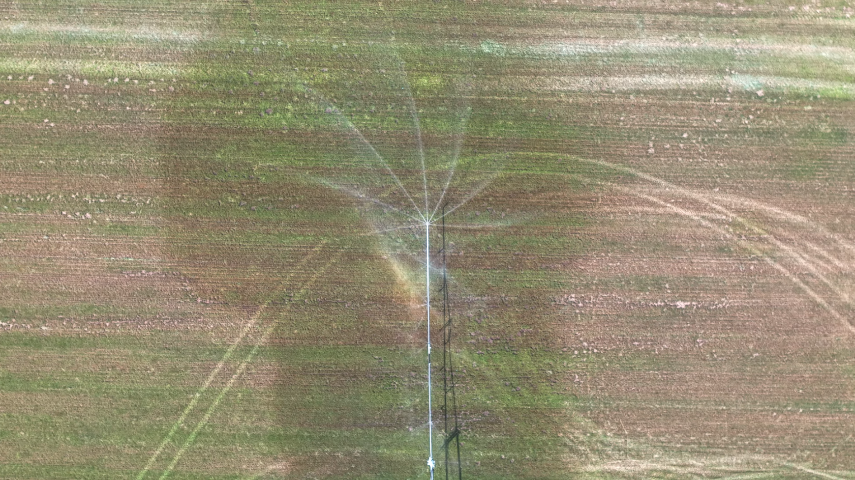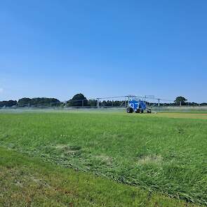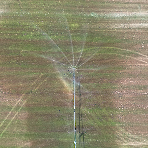 De Lenthe-sproeiboom verdeelt het water met 26 kleine sproeiers laag boven het gewas. Daardoor ontstaat een veel gelijkmatiger neerslagbeeld dan bij een beregeningskanon dat één krachtige straal gebruikt. Het water valt zacht en gecontroleerd, zonder de neerslagschade of korstvorming die bij zware druppels kan optreden.