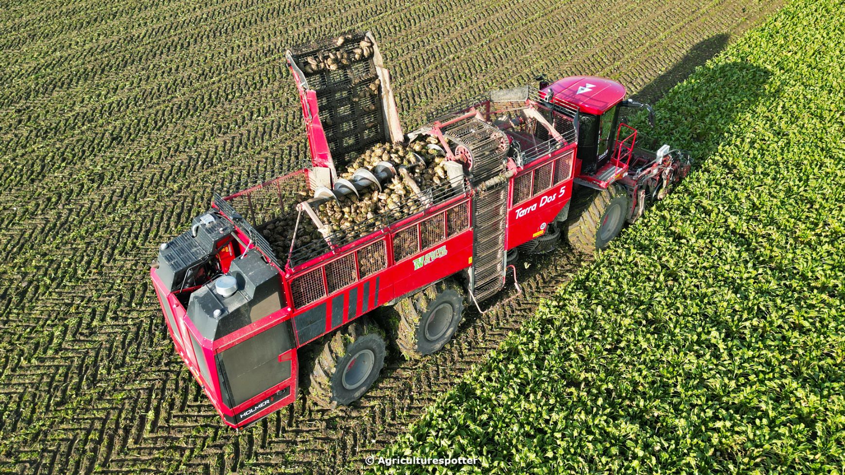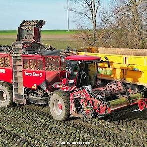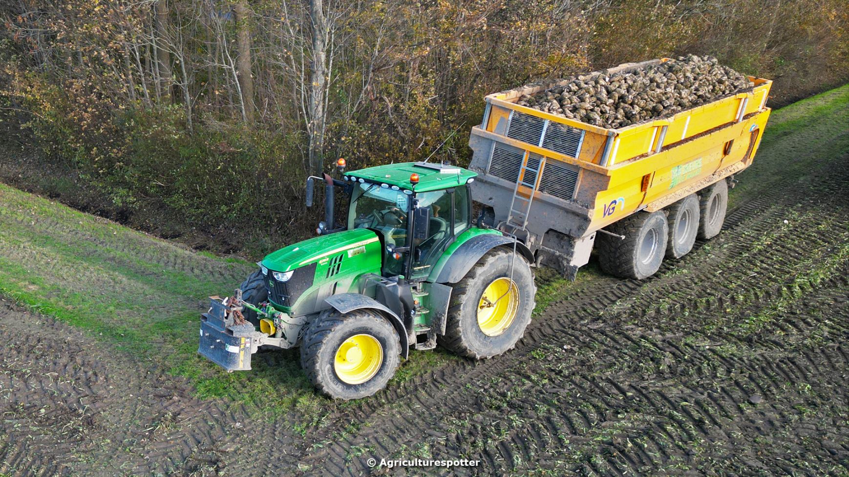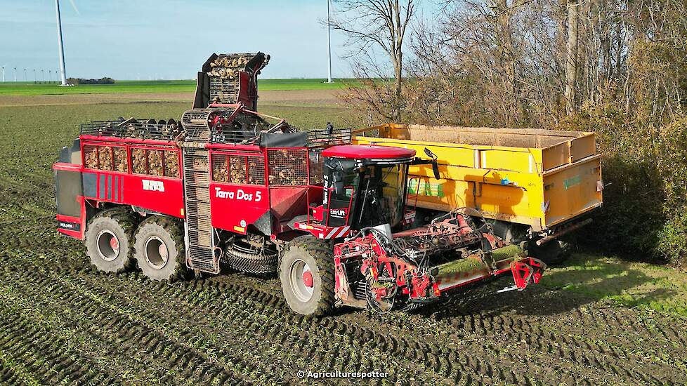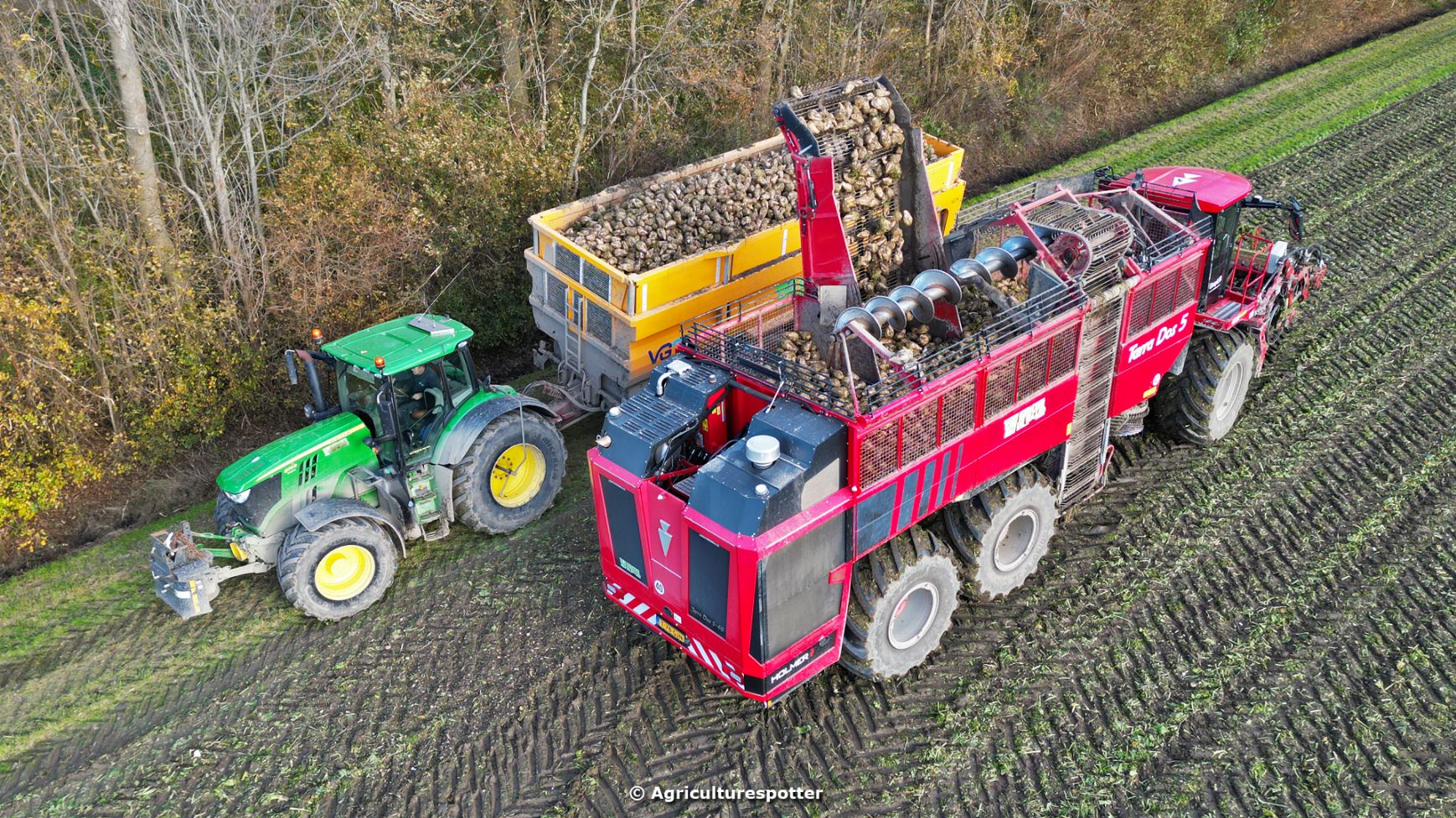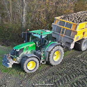 Suikerbieten rooien in Dronten met een Holmer Terra Dos T5-40 van Loon- en grondverzetbedrijf Breure de Waard. Het transport werd gedaan met een John Deere 6215R met een VGM Everest 30 multifunctionele kipper.
