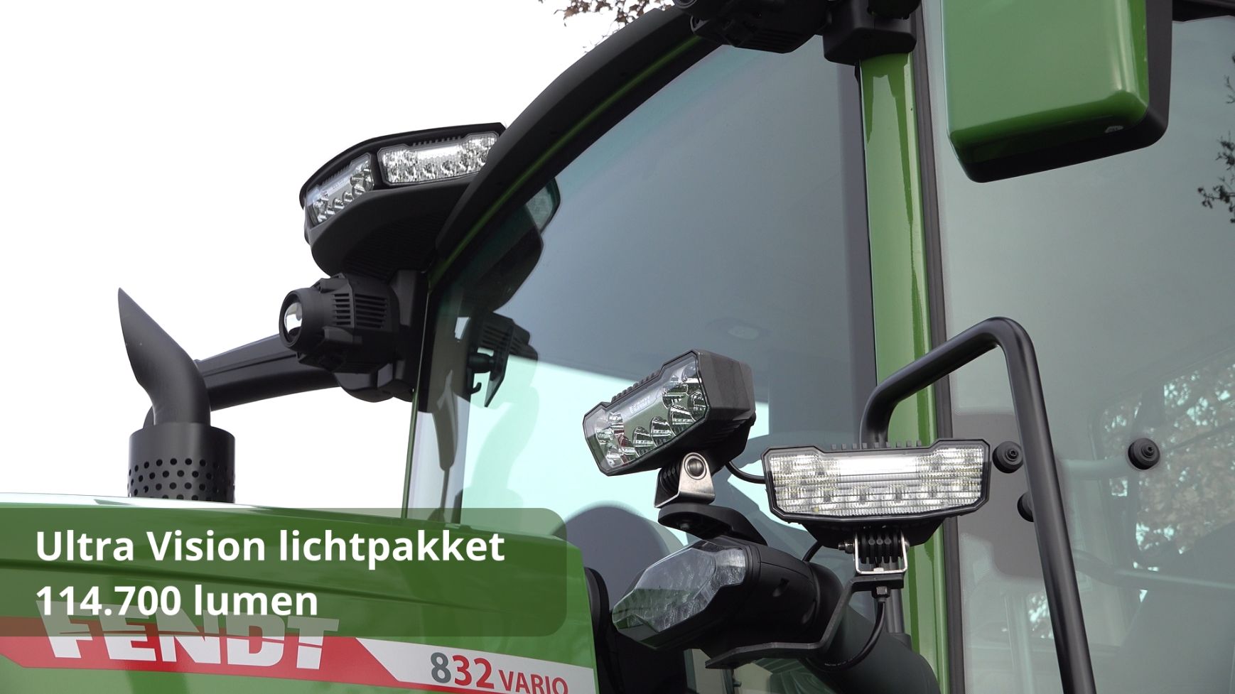 Wat opvalt aan de trekker is namelijk de nieuwe cabine. Dat wil zeggen, de buitenkant, want binnenin is maar weinig veranderd. De cabine heeft nog hetzelfde frame als zijn voorganger en daarmee ook dezelfde binnenruimte. Het is met name het dak dat veranderd is, door nieuwe verlichting. De ontwikkelaars bij Fendt hebben goed werk verricht door met name de werkverlichting totaal te veranderen. Ultra Vision heet het nieuwe concept. In de dakrand zitten twaalf werklampen, goed geïntegreerd. Mooi detail is dat een opstaand randje van het dak voorkomt dat de werklampen te veel spiegelen in de cabineruiten. Verdere werklampen zitten op de A- en C-stijl en in de neus. In totaal zijn er 32 werklampen mogelijk. Deze genereren met elkaar 114.000 lumen aan licht. Is dat veel? Ja, dat is heel veel. Ter vergelijking: bij de 900-serie produceren de werklampen 65 procent minder lumen en bij deze trekker rijd je ook bepaald niet met een paar brandende kaarsjes rond.