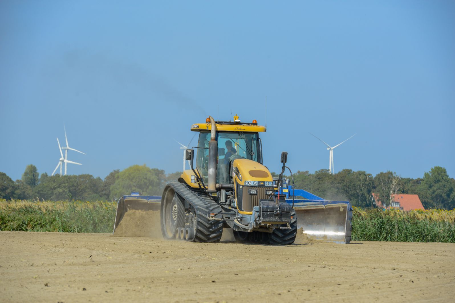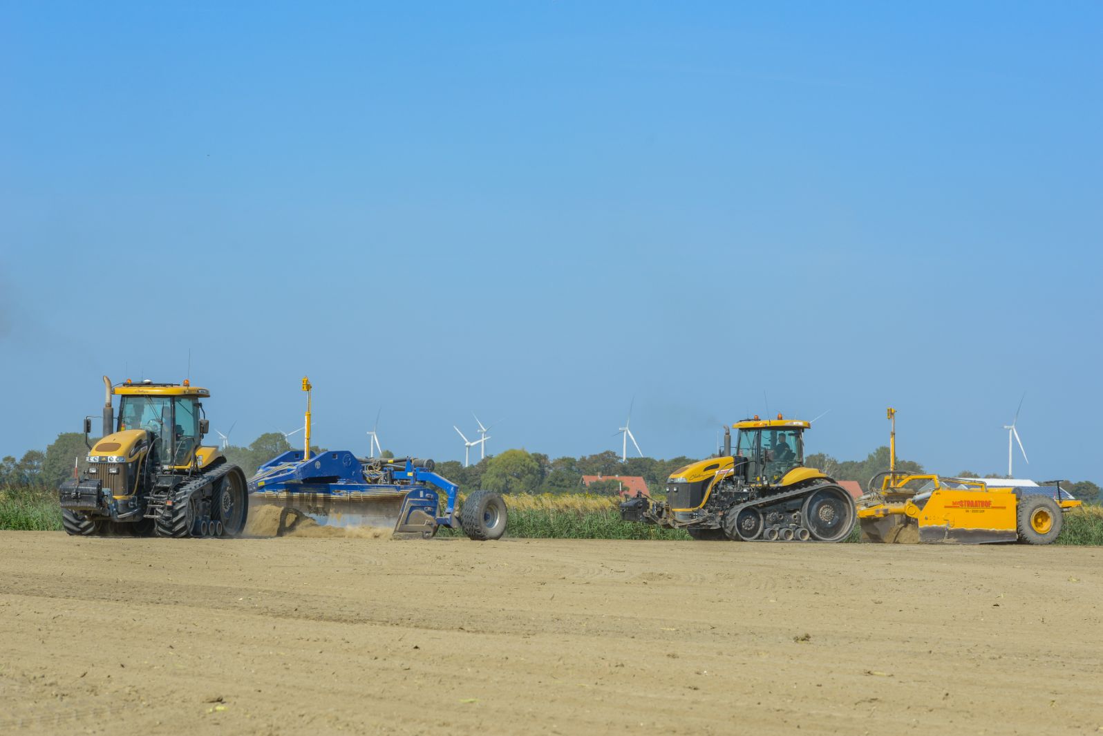 Met maar liefst drie dozerbakken van 7, 13 en 15 kuub en zes kilverbakken van 1,3 meter tot 7 meter breed worden de nodige percelen in de kop van Noord-Holland vlak gezet. De kleinere machines zorgen ervoor dat de nodige wegen, wandelpaden, fietspaden, paardenbakken en tuintjes er strak bij komen te liggen.