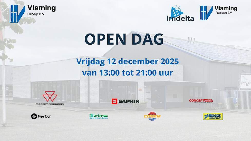 De Vlaming Groep opent op 11 en 12 december de deuren voor twee speciale open dagen in Zwaagdijk-Oost. Donderdag richt zich volledig op mechanisatiebedrijven en handelaren, terwijl vrijdag bedoeld is voor klanten, familie, vrienden en iedereen die het bedrijf eens van dichtbij wil zien.