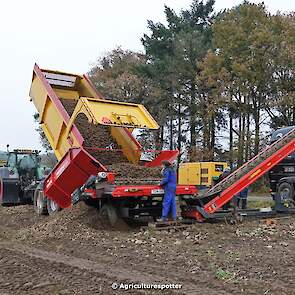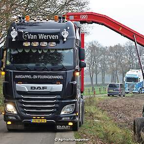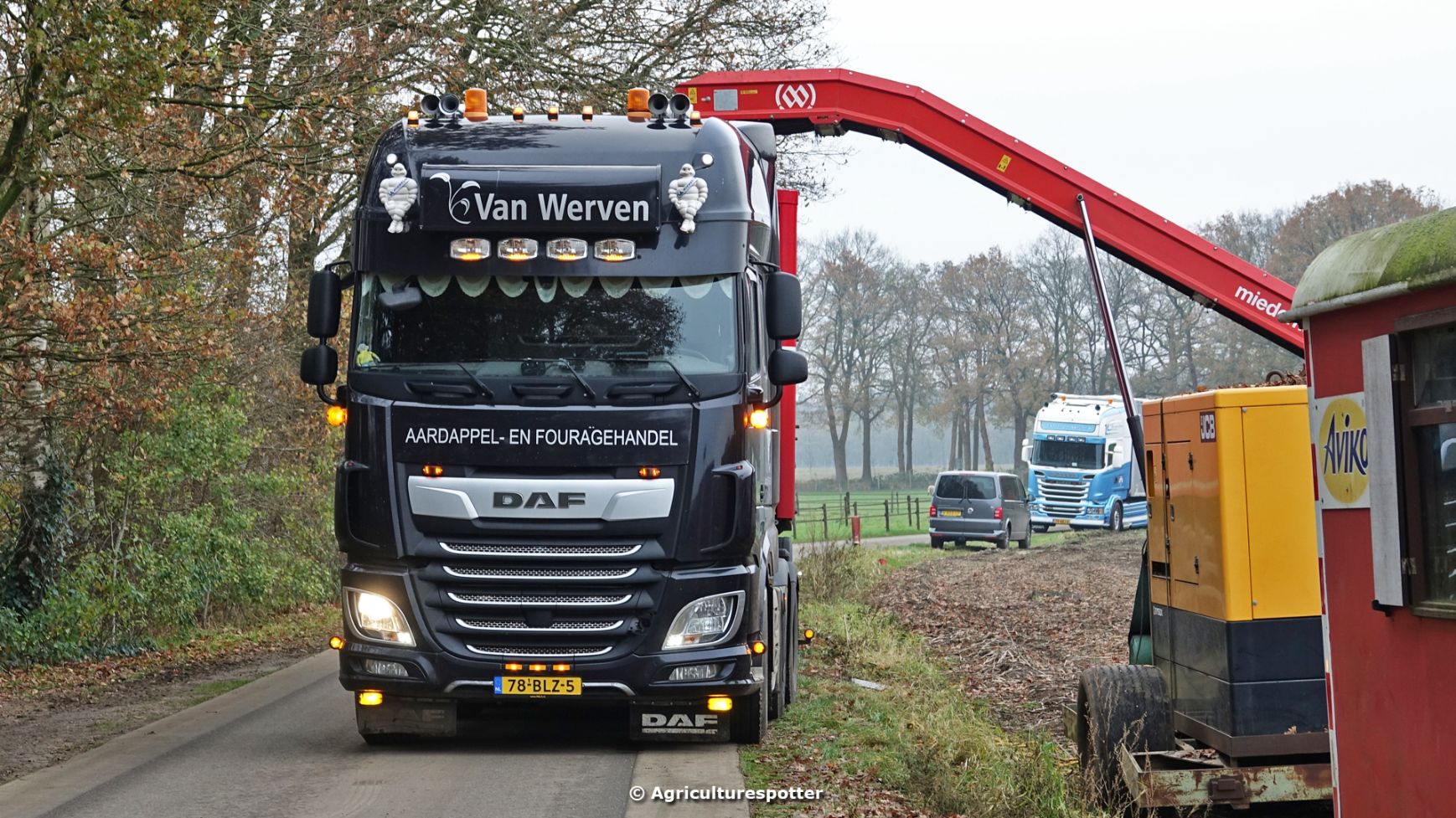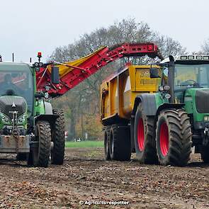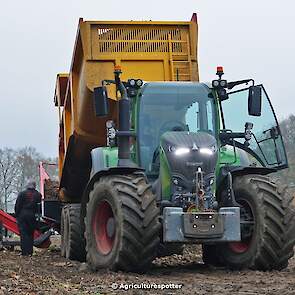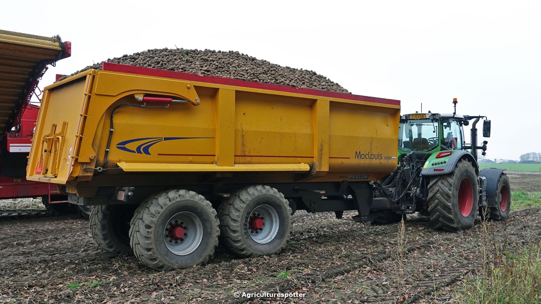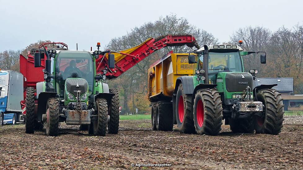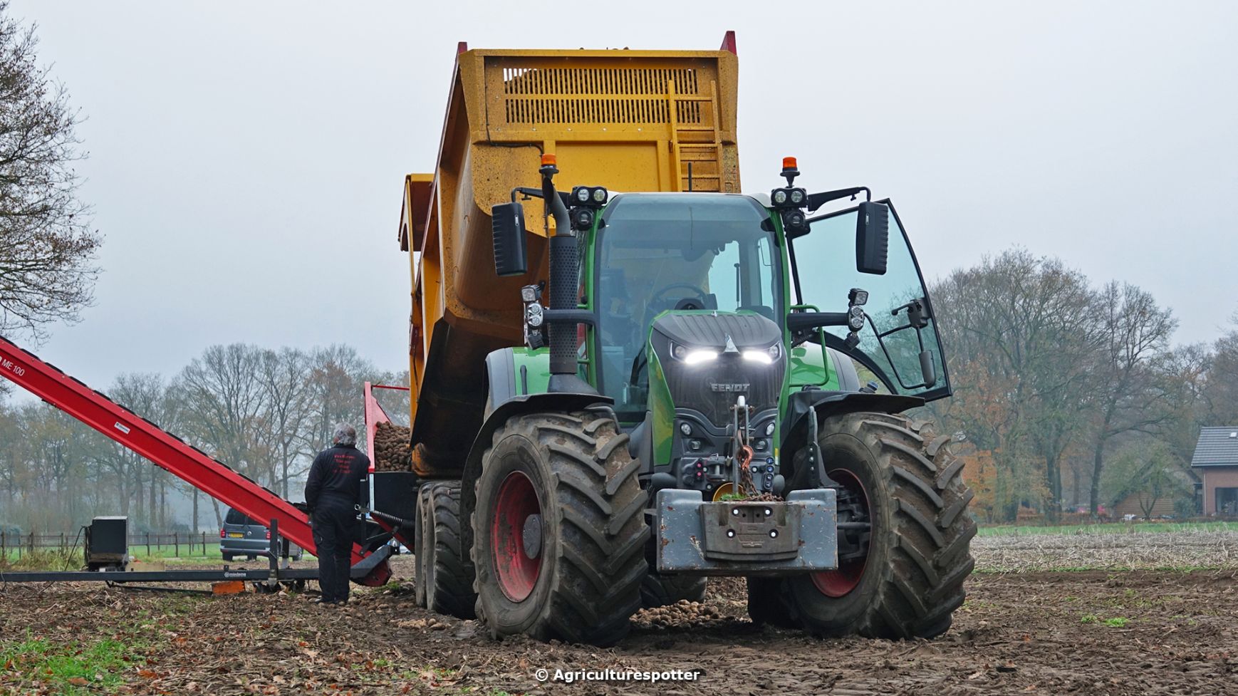 Aardappels rooien in Garderen met een Fendt 516 Vario met een Grimme SE 150-60-aardappelrooier van loonbedrijf Hans Versteeg uit Uddel. Het transport werd gedaan met een Fendt 728 Vario en een Fendt 930 Vario met Peecon MacLouis 18000-landbouwkippers. De aardappels werden met een Miedema SB 651-stortbak en een Miedema ME 100-opvoerband/ transportband in vrachtwagens geladen.