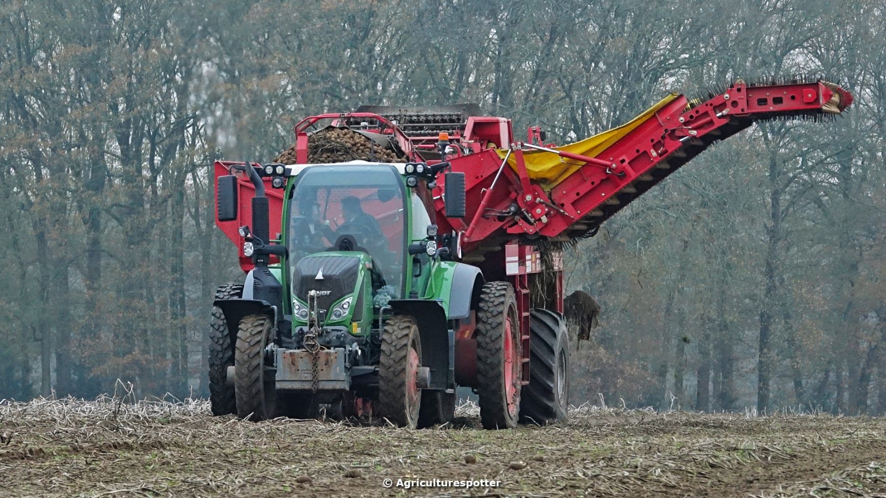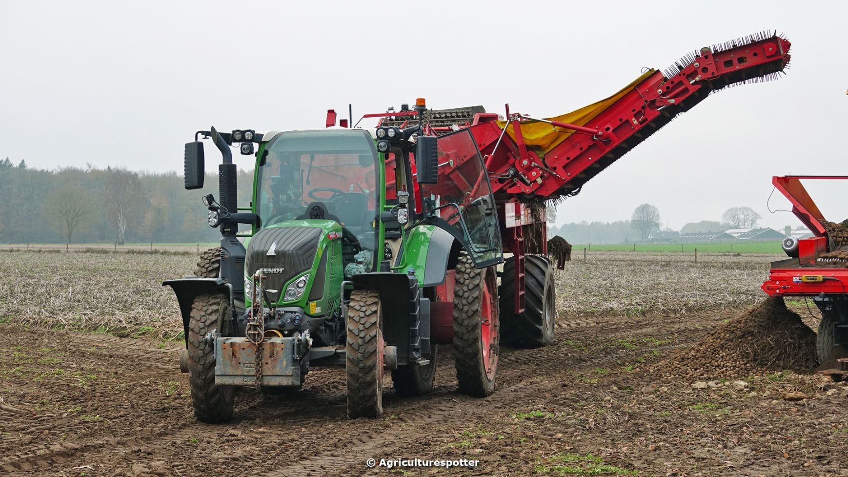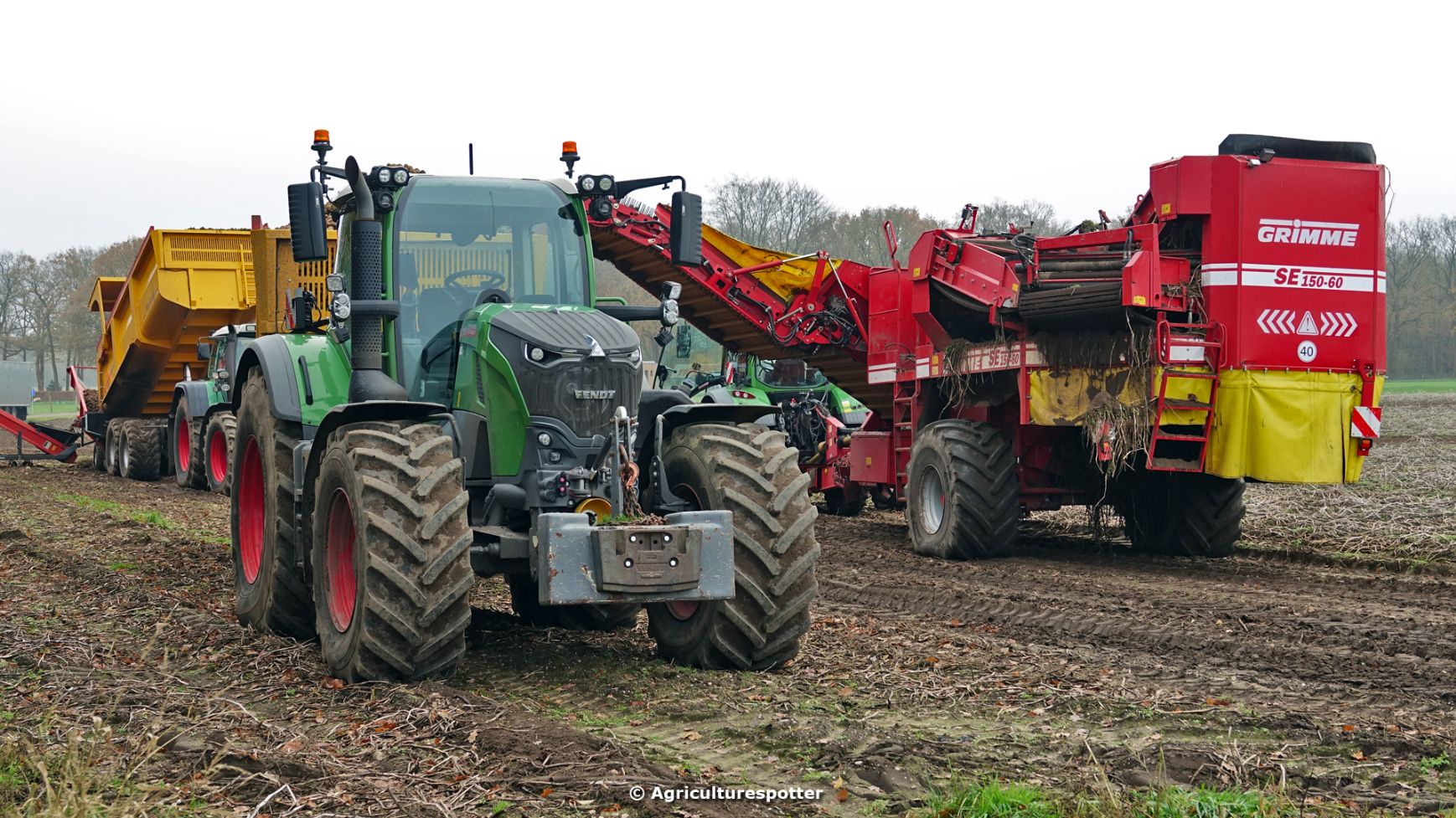 Fendt 516 Vario met Grimme SE 150-60-aardappelrooier