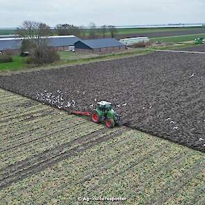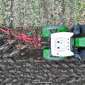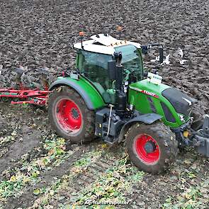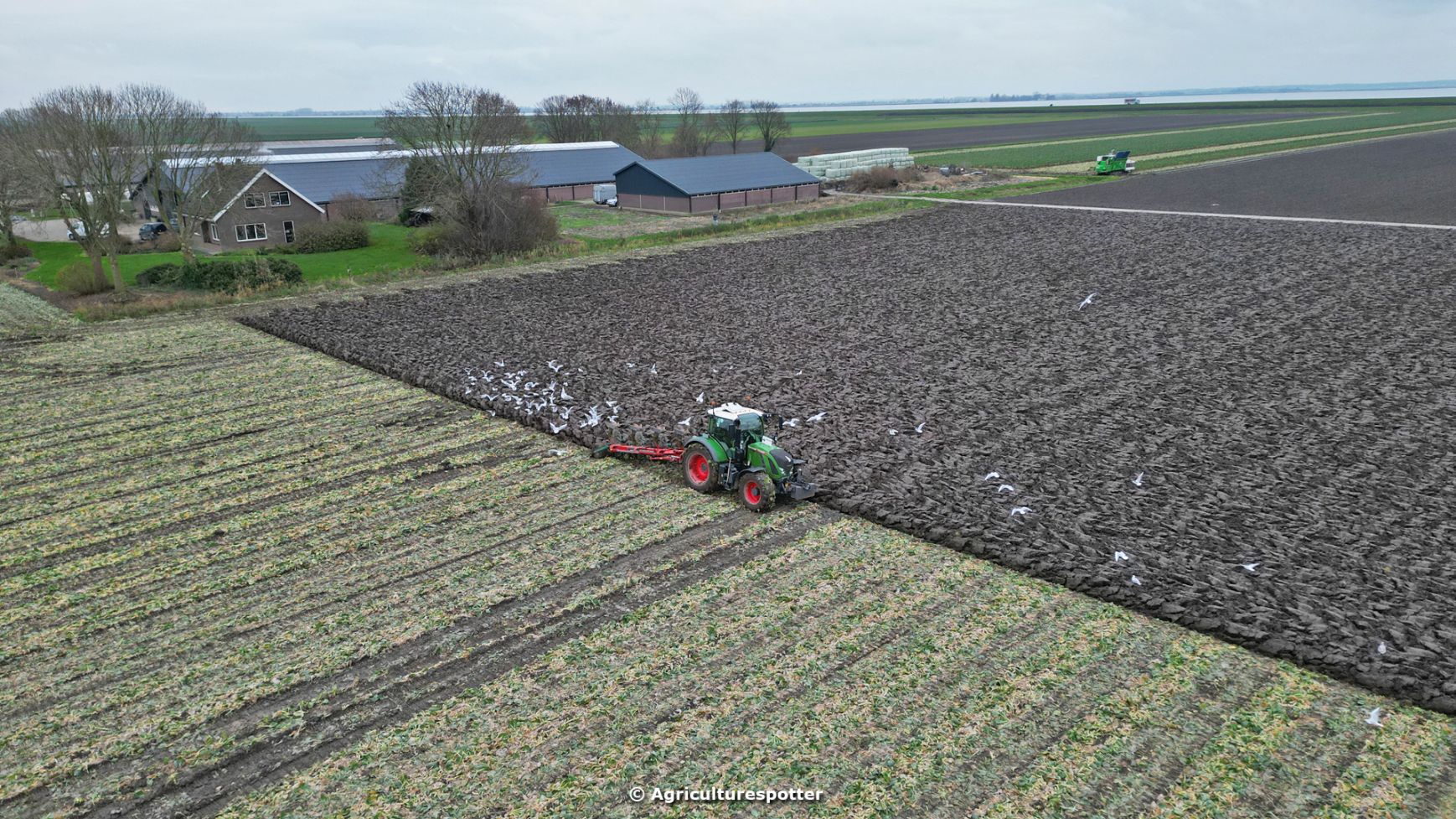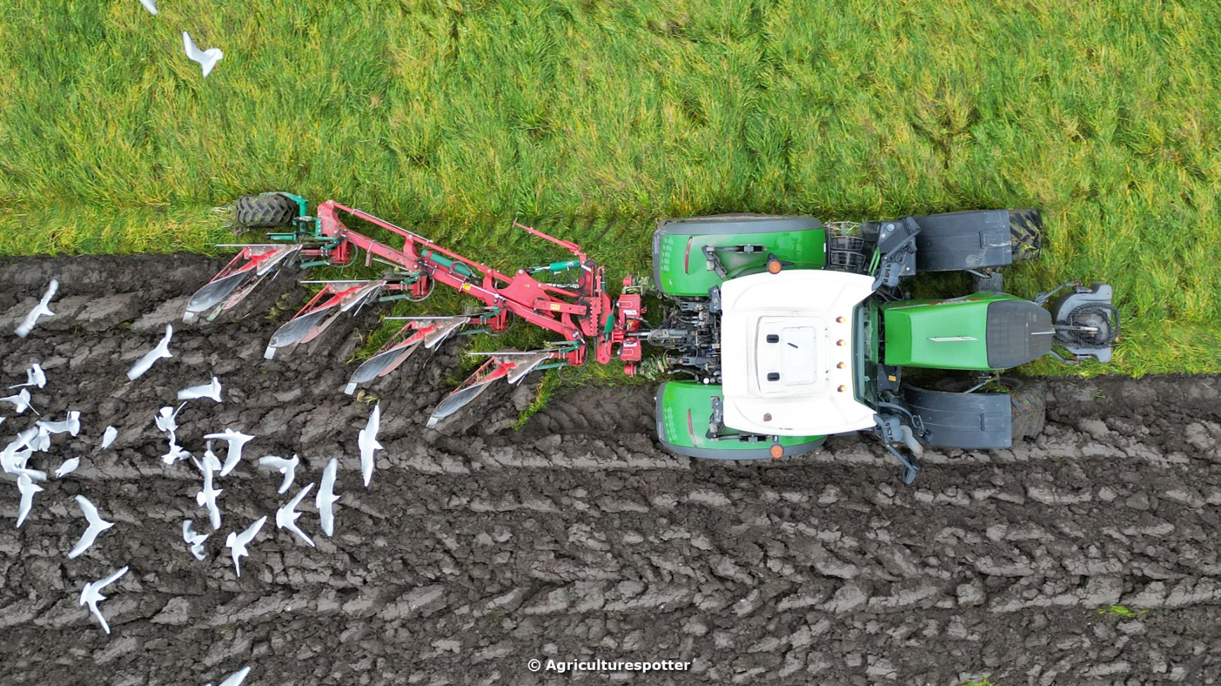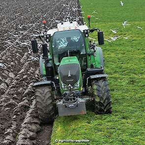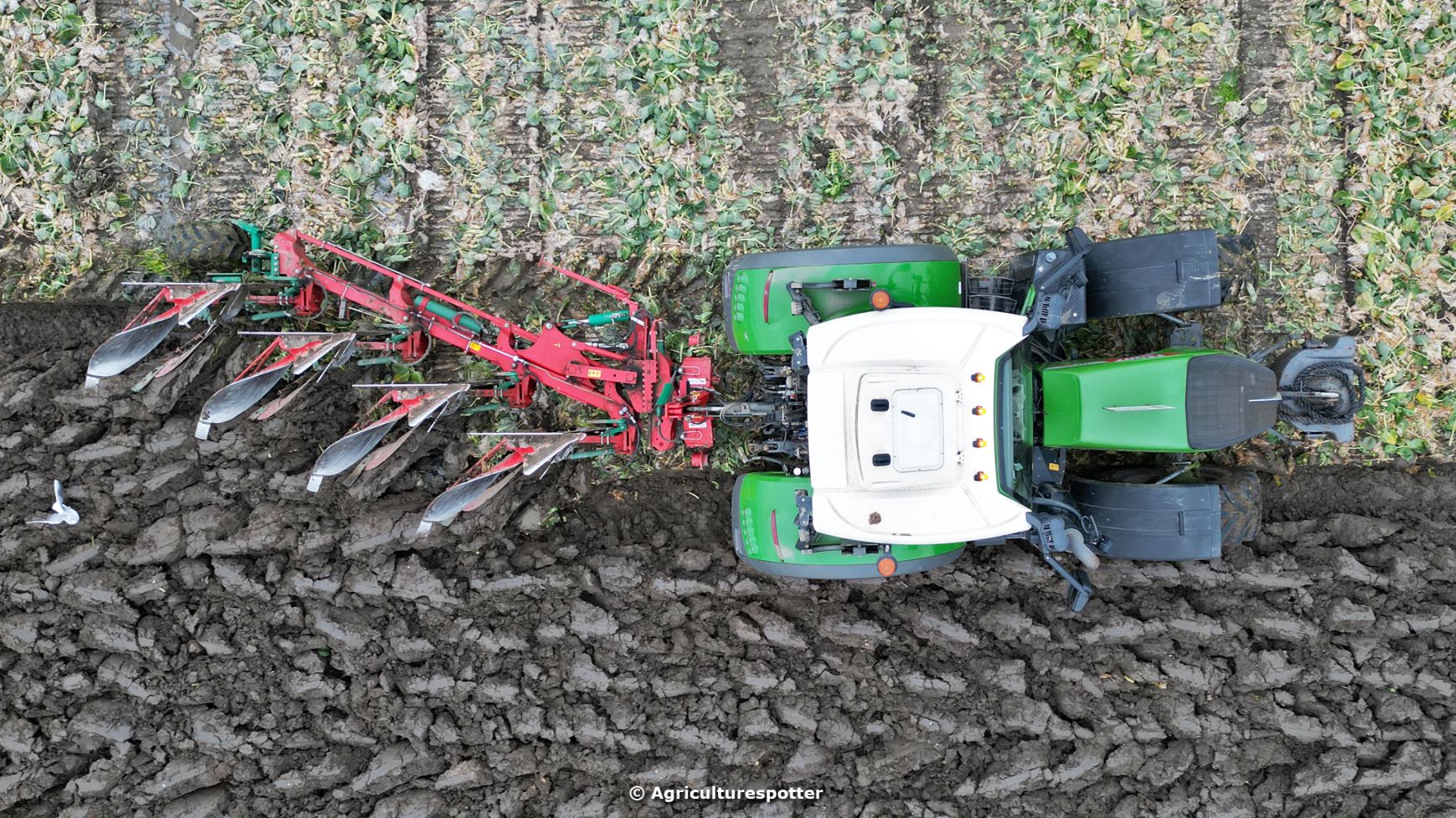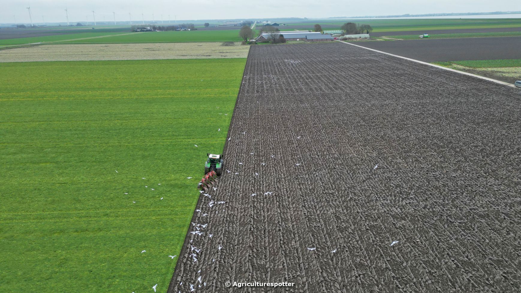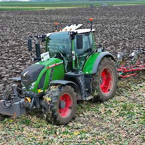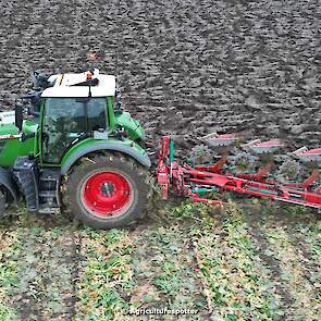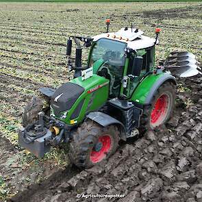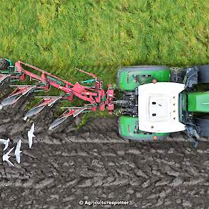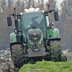 Ploegen met een Fendt 724 Vario en een Kverneland EG 100 4-schaar wentelploeg, van loonbedrijf BMWW Agriservice, in de zware klei bij Zeewolde in de Flevopolder.