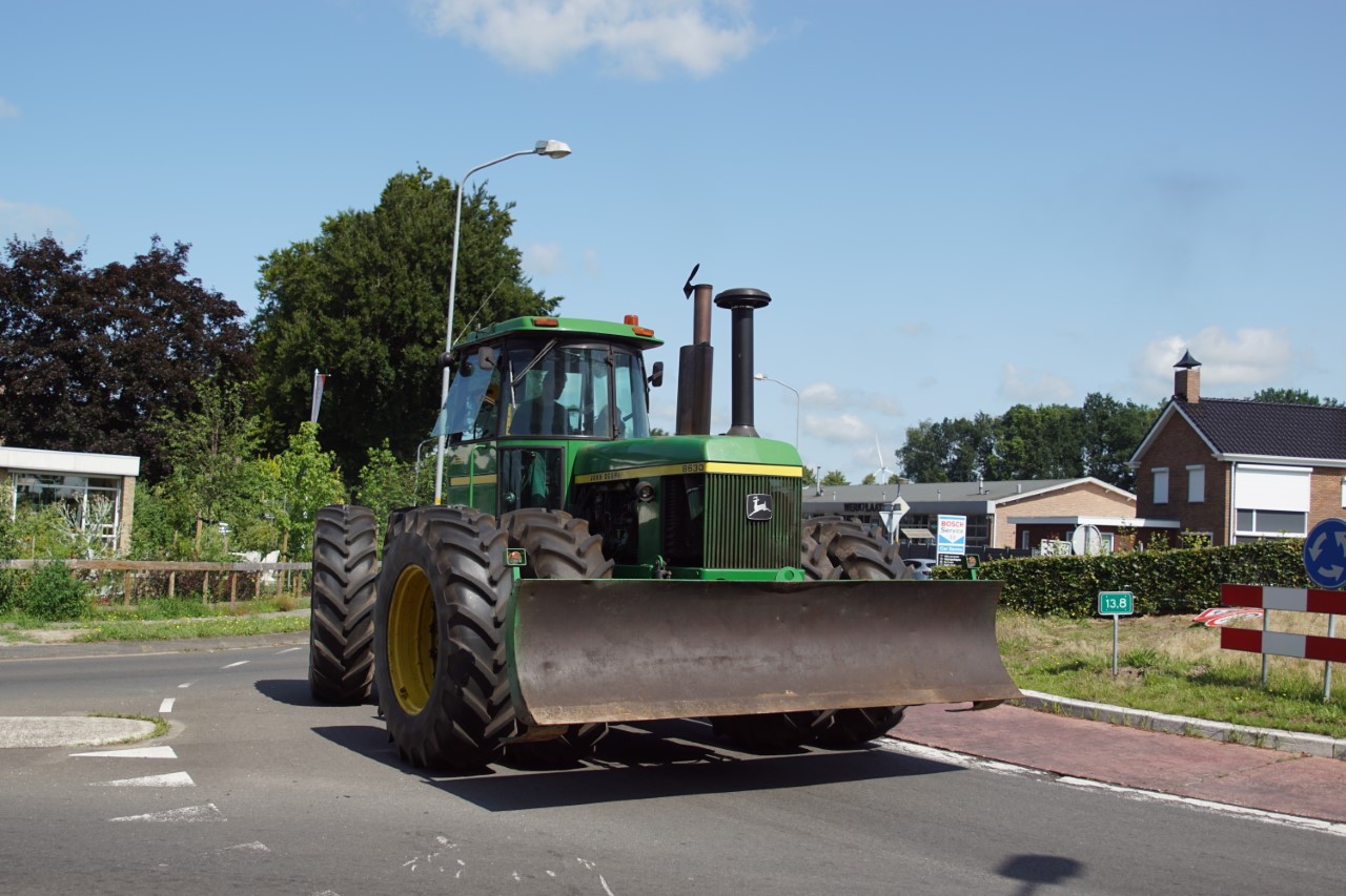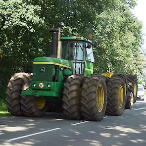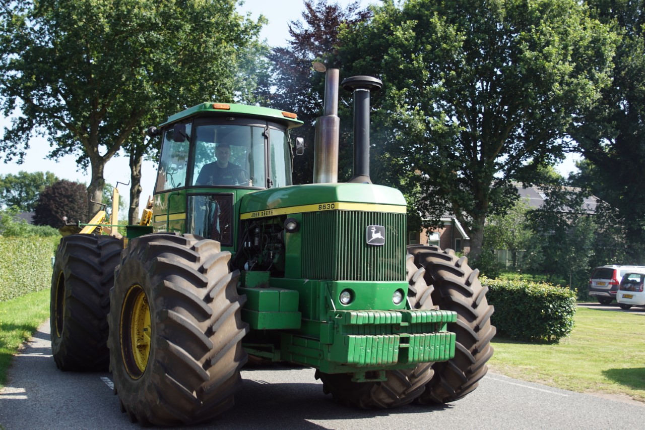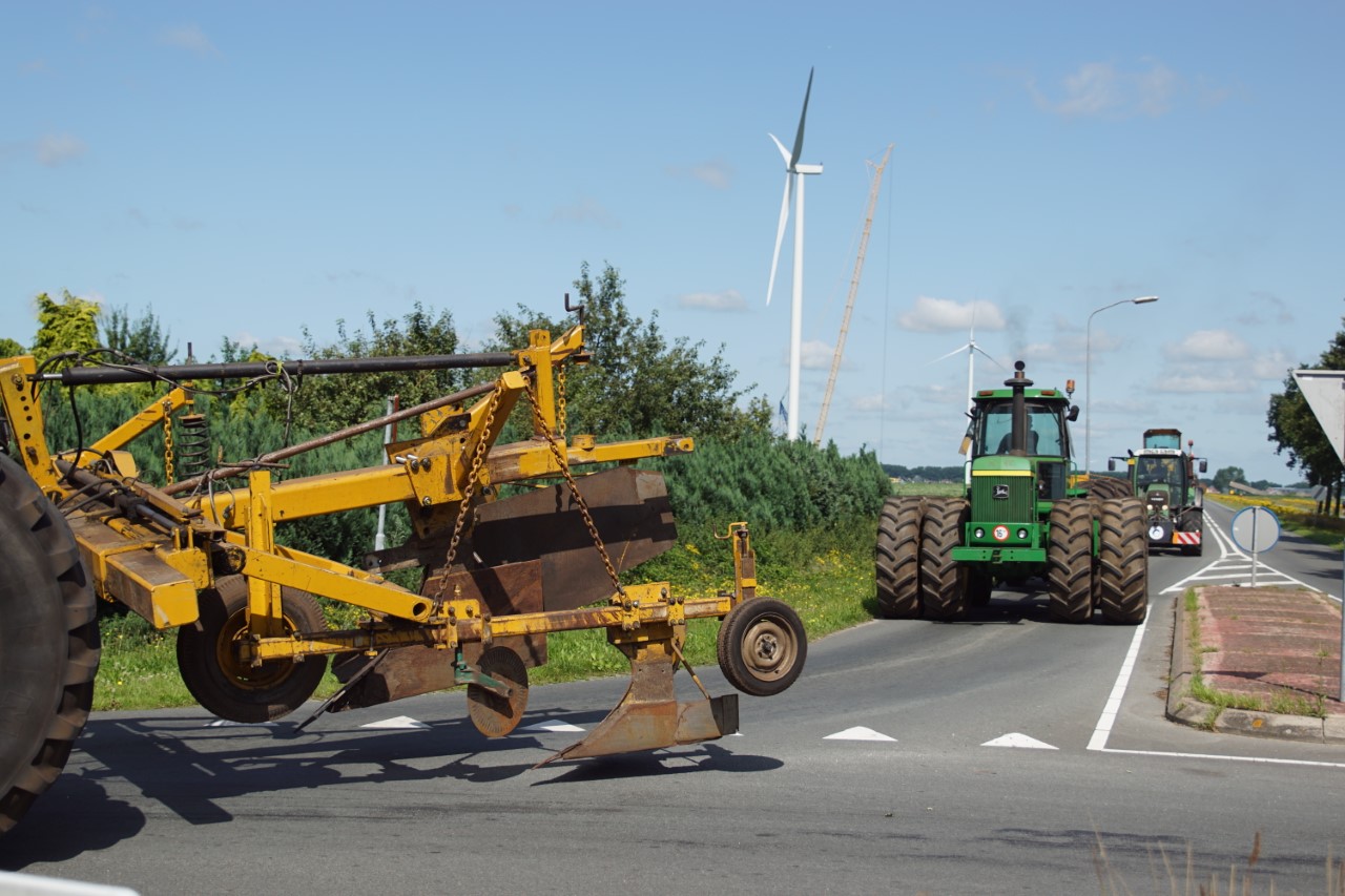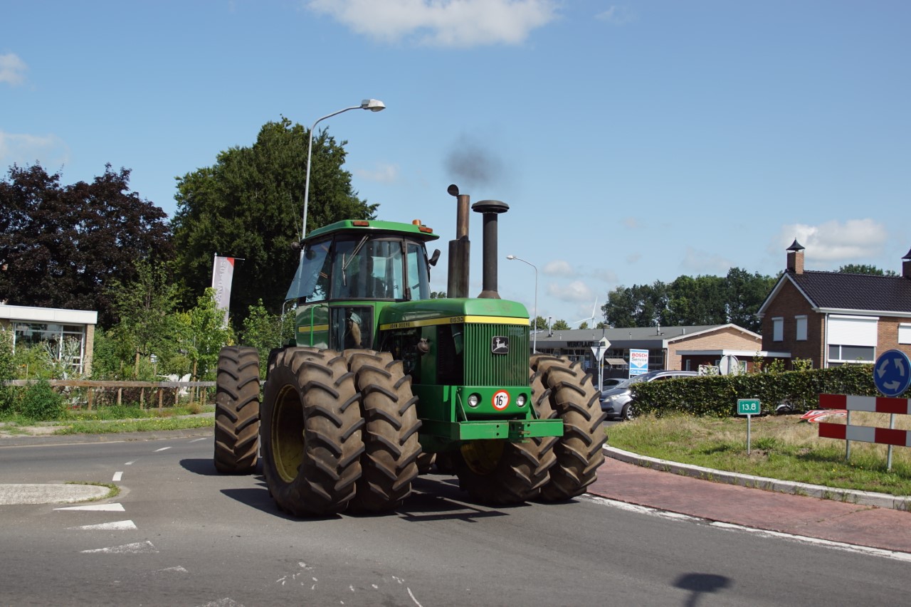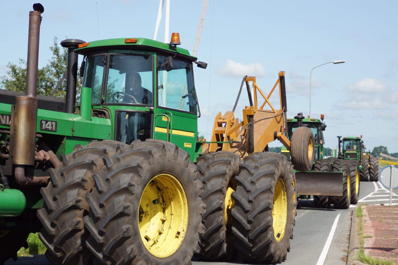 In de jaren zeventig en tachtig waren kniktrekkers nog geen alledaagse verschijning. Ze waren groot, breed en indrukwekkend - machines die niet alleen werkten, maar ook ontzag inboezemden. John Deere had met zijn 7020- en later 7520- en 8430-series een duidelijke plek veroverd in het zware werk op de akkers en bij loonbedrijven. Wanneer meerdere van deze trekkers samen op pad gingen, bijvoorbeeld bij ruilverkavelingen, grootschalige grondbewerking of demonstratiedagen, was dat een spektakel op zich.