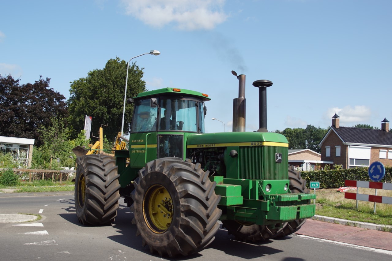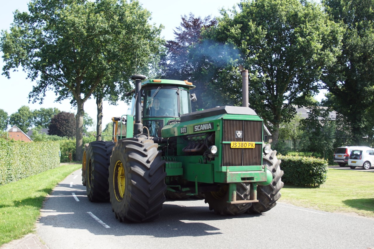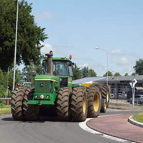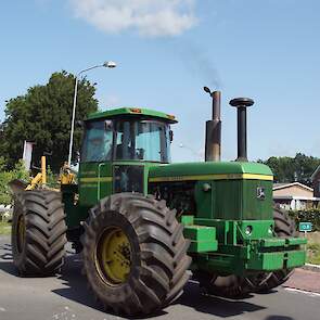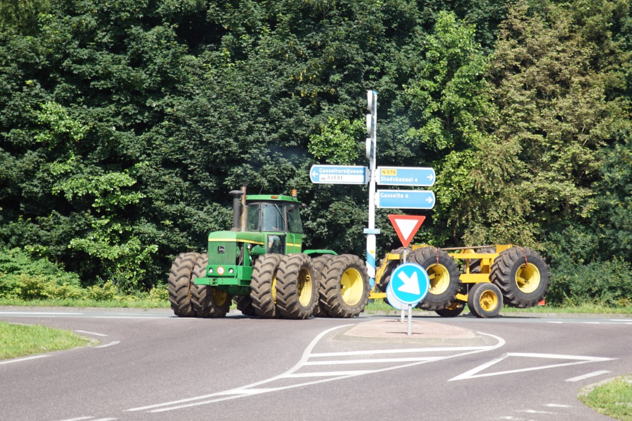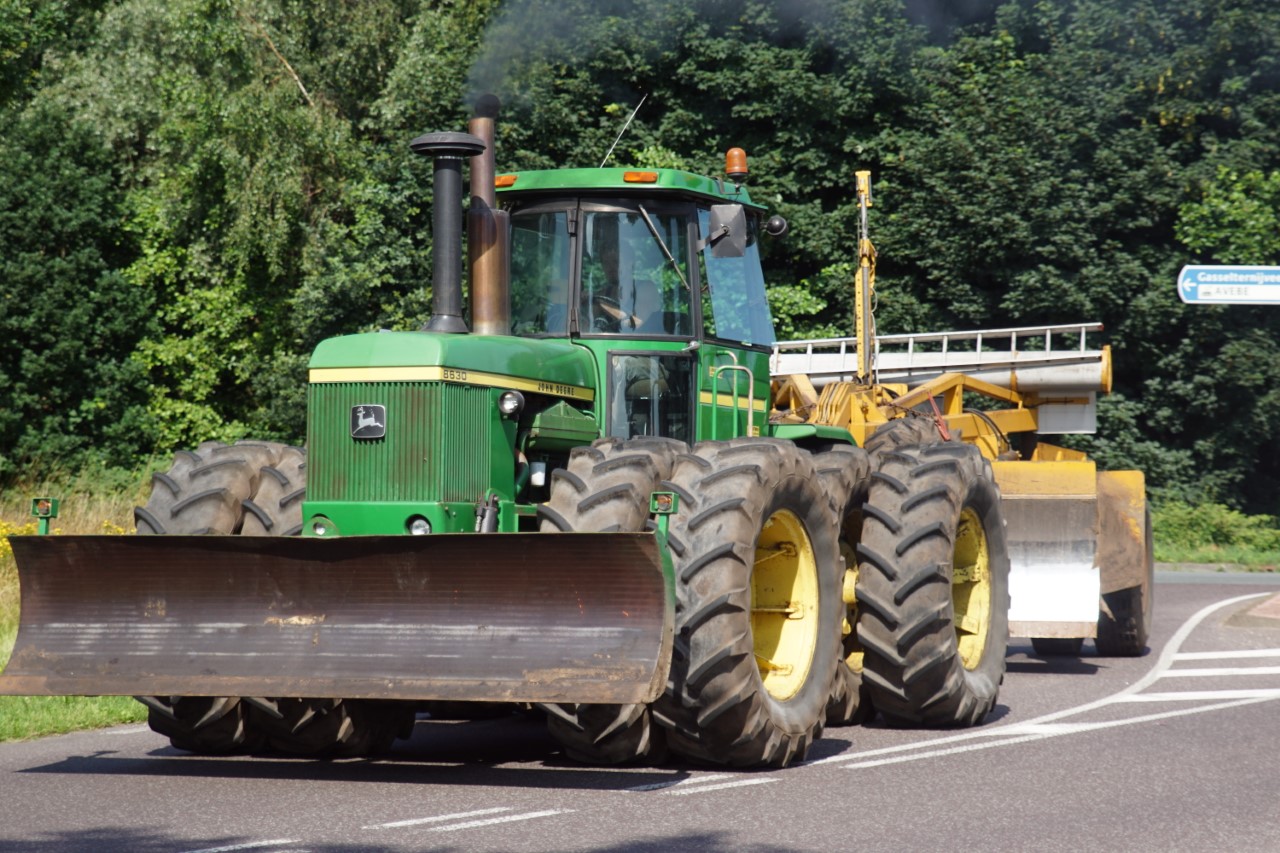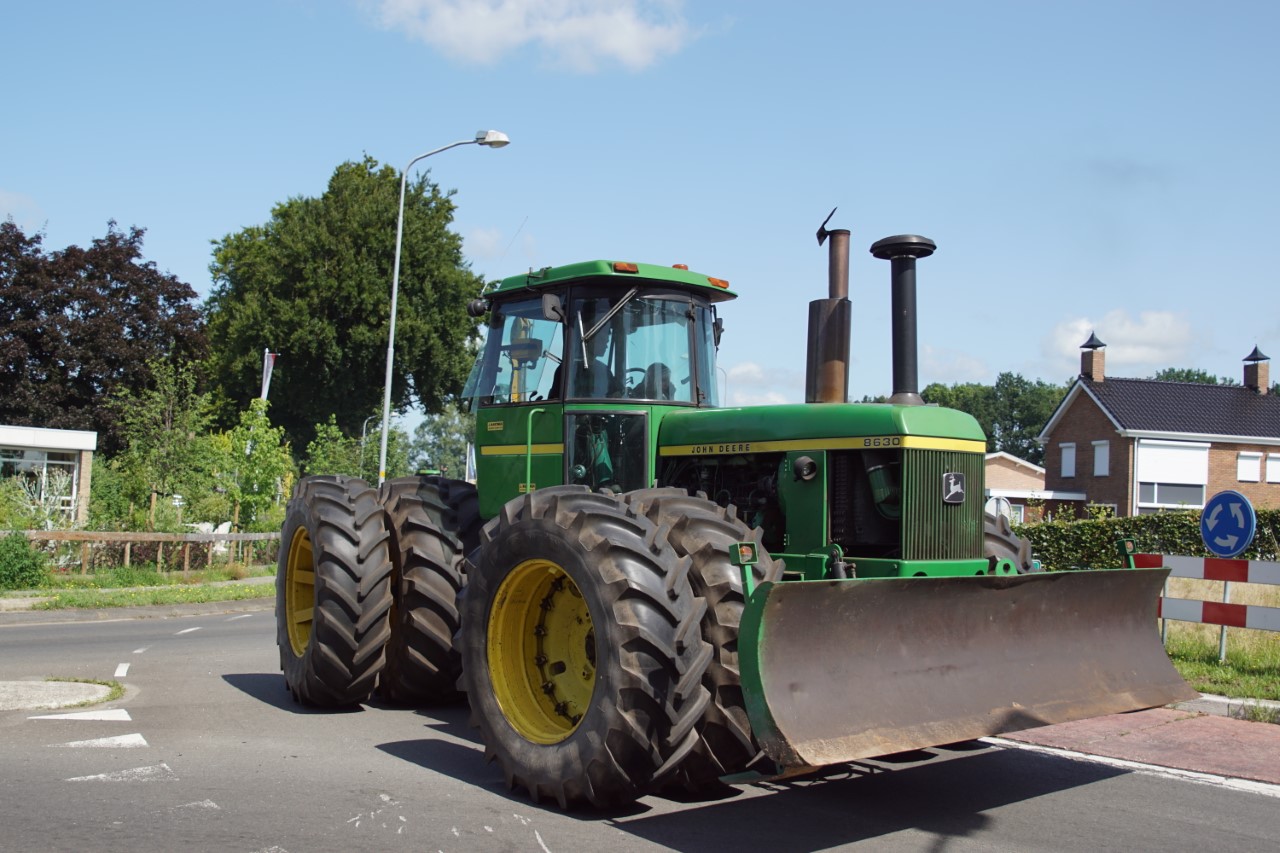 In de jaren zeventig en tachtig waren kniktrekkers nog geen alledaagse verschijning. Ze waren groot, breed en indrukwekkend - machines die niet alleen werkten, maar ook ontzag inboezemden. John Deere had met zijn 7020- en later 7520- en 8430-series een duidelijke plek veroverd in het zware werk op de akkers en bij loonbedrijven. Wanneer meerdere van deze trekkers samen op pad gingen, bijvoorbeeld bij ruilverkavelingen, grootschalige grondbewerking of demonstratiedagen, was dat een spektakel op zich.