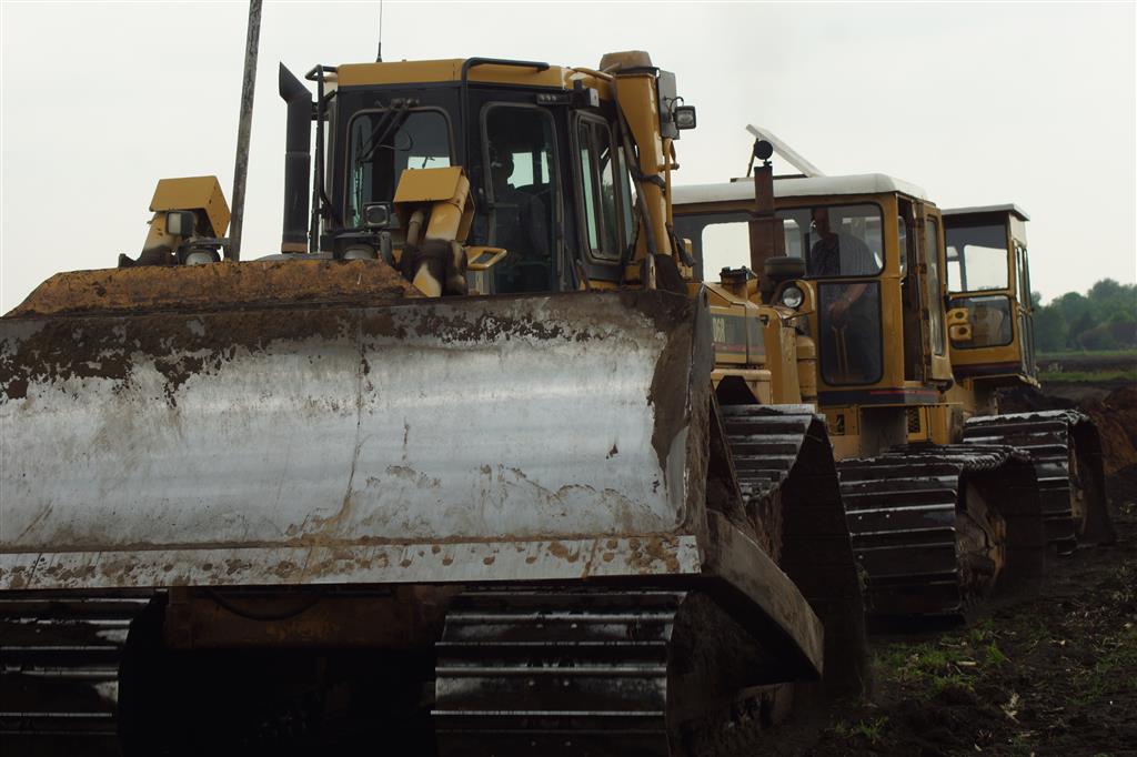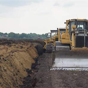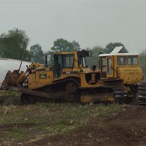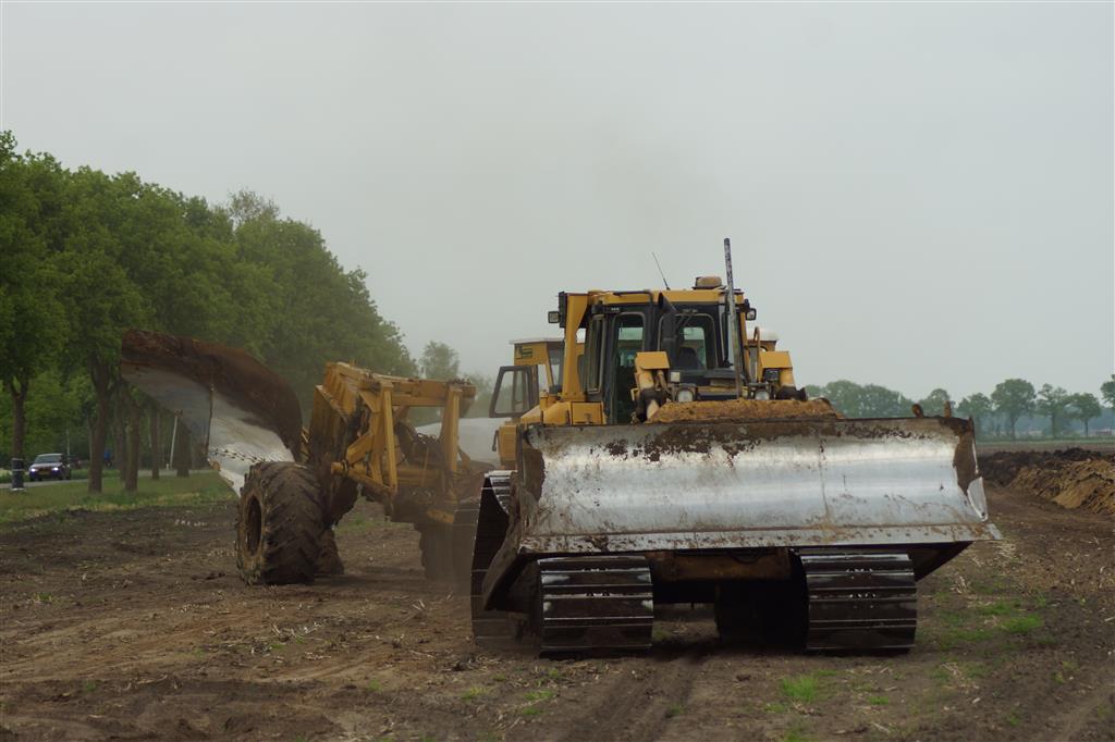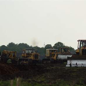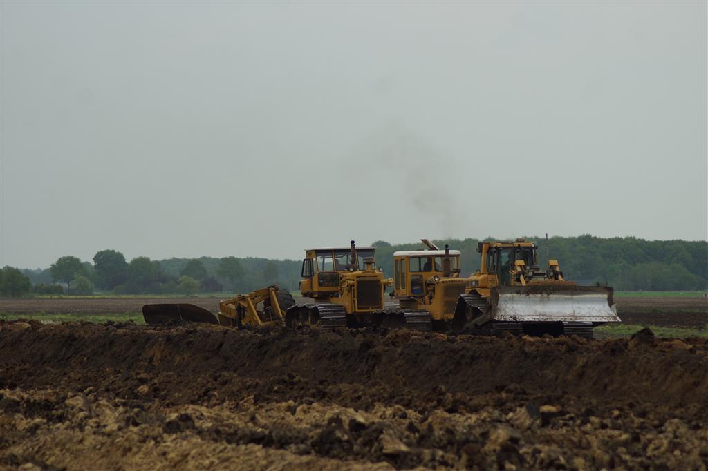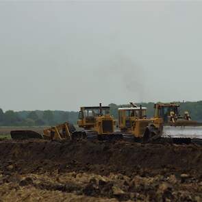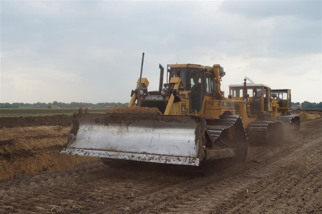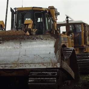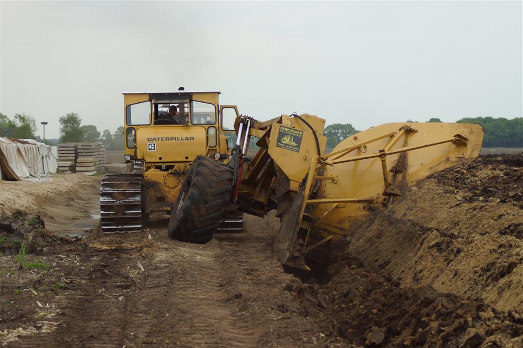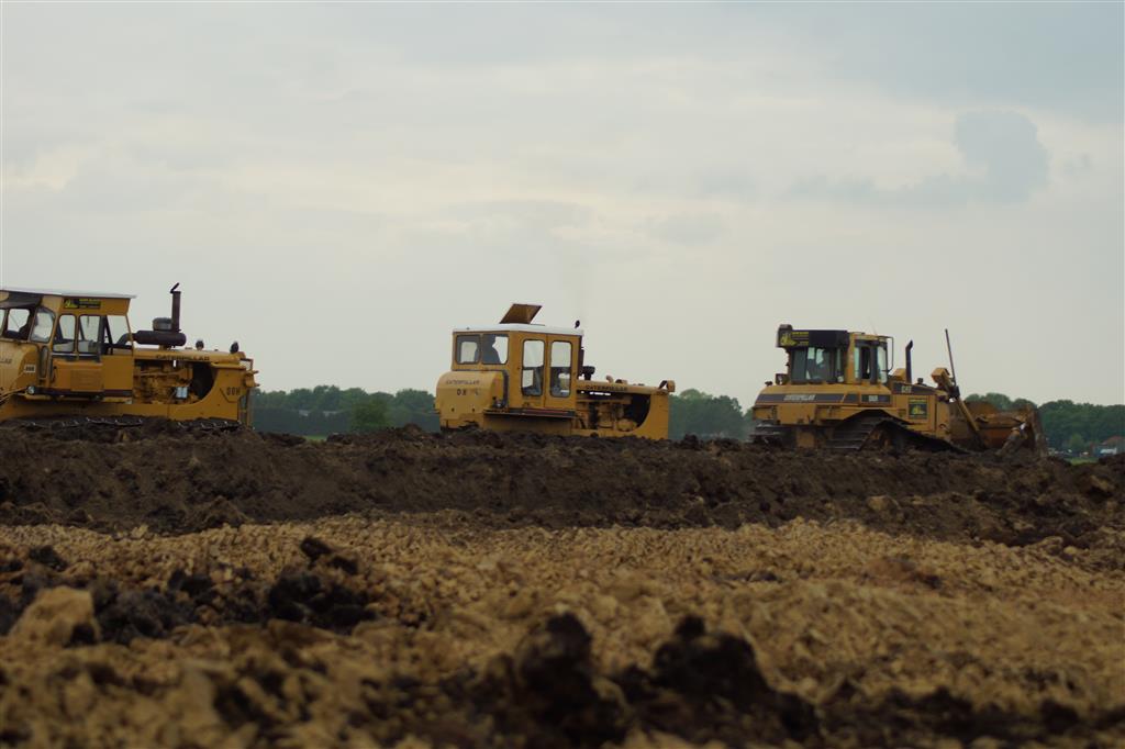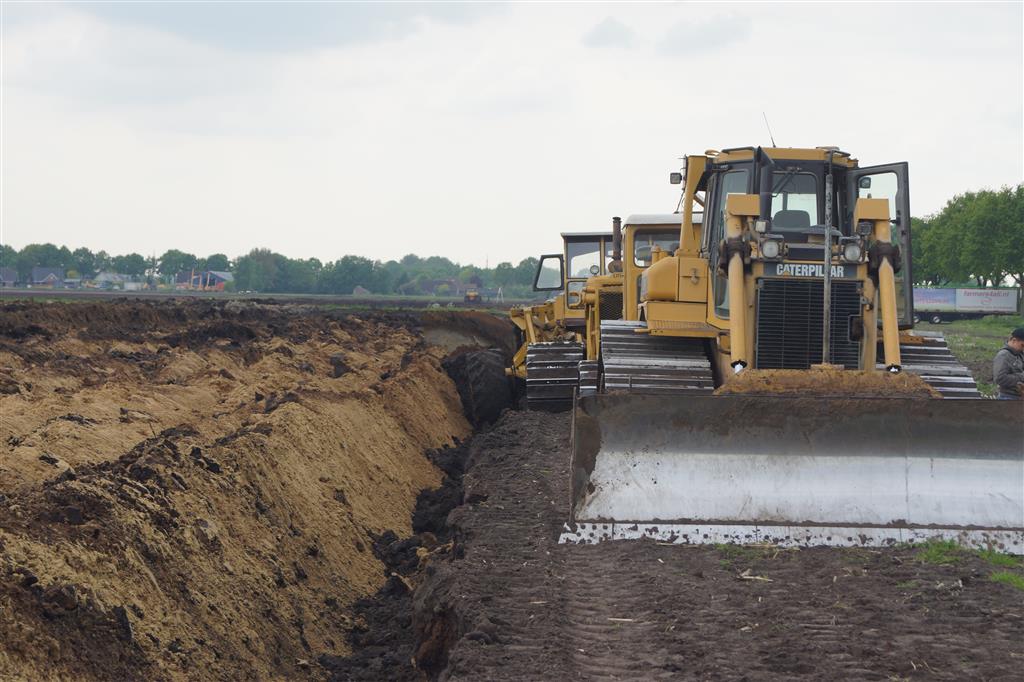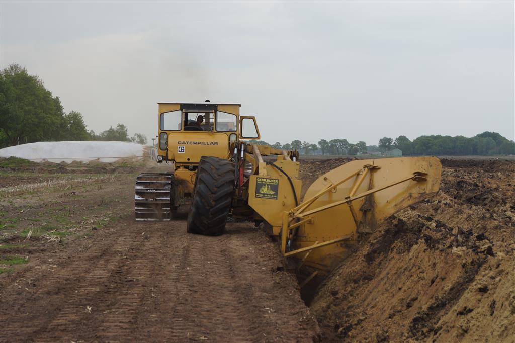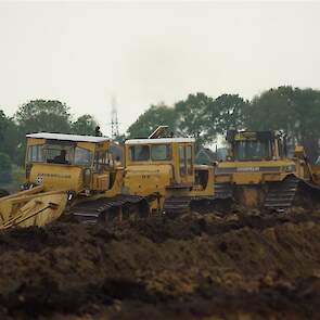 Twee meter diepploegen met Caterpillar D6, D8, D8 en eigen gebouwde diepploeg van de firma Bijker uit Rouveen (OV).