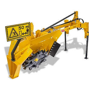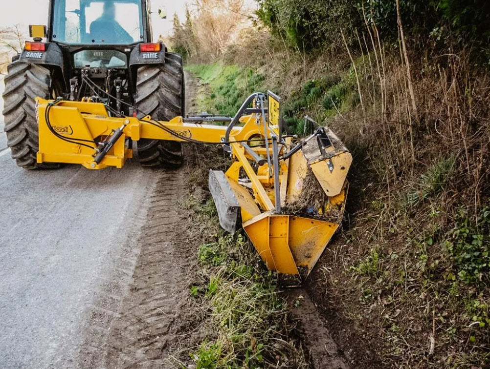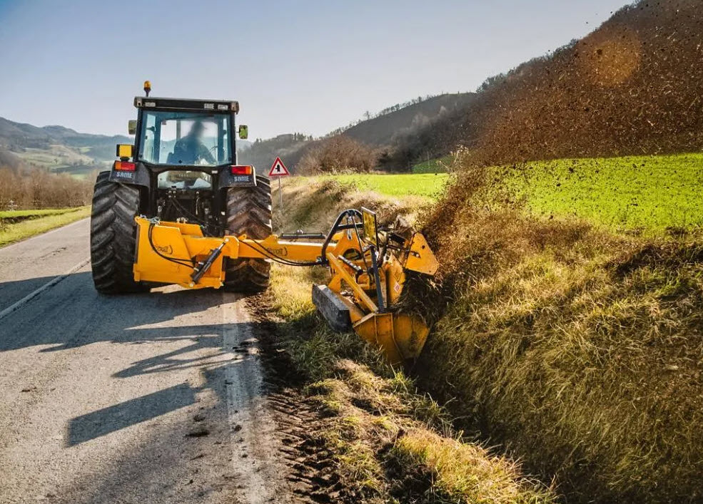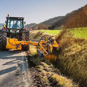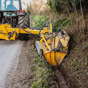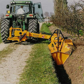 De greppelfrees kan met de nieuwe optie verder zijdelings worden versteld dan voorheen. De machine is handmatig of hydraulisch verstelbaar, met een bereik van 90 cm naar links en 115 cm naar rechts vanuit het hart van de trekker. Ter vergelijking: de bestaande standaarduitvoeringen boden een verstelling tot respectievelijk 80 en 95 cm.