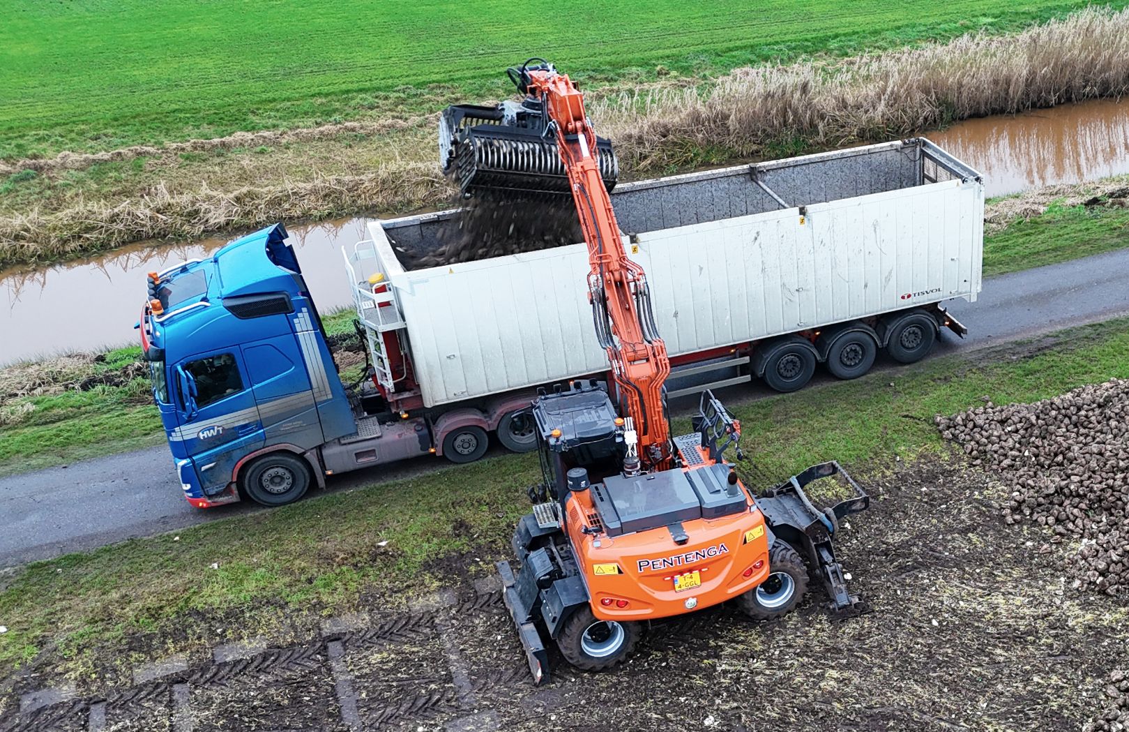 Zijn agrarische achtergrond vormt een belangrijke drijfveer. Naast het laden van suikerbieten wil Pentenga de grondverzetactiviteiten nog wat verder uitbreiden, al beseft hij dat een 19-tons bandenkraan daarvoor wat aan de zware kant is. “Misschien komt er in de toekomst wel een maatje kleiner bij.”