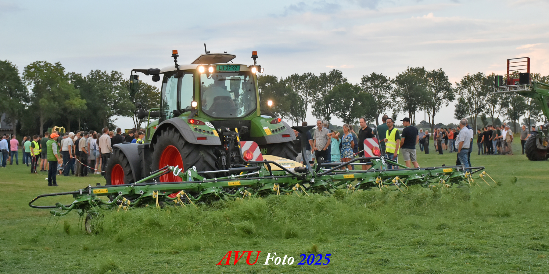 Na het maaien volgt het schudden van het gras. De nieuwe Krone Vendro-modellen gaan van 4,70 m tot 8,20 m, de grote KWT 1300 getrokken Krone-schudder werkt tot 13,10 m en heeft 12 rotoren.
