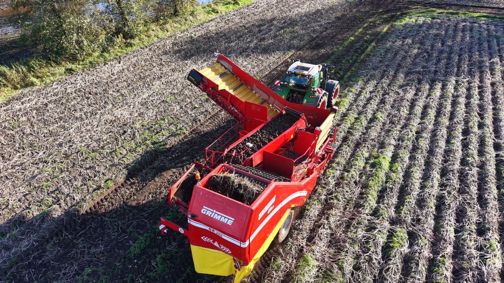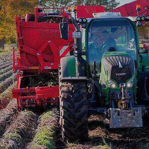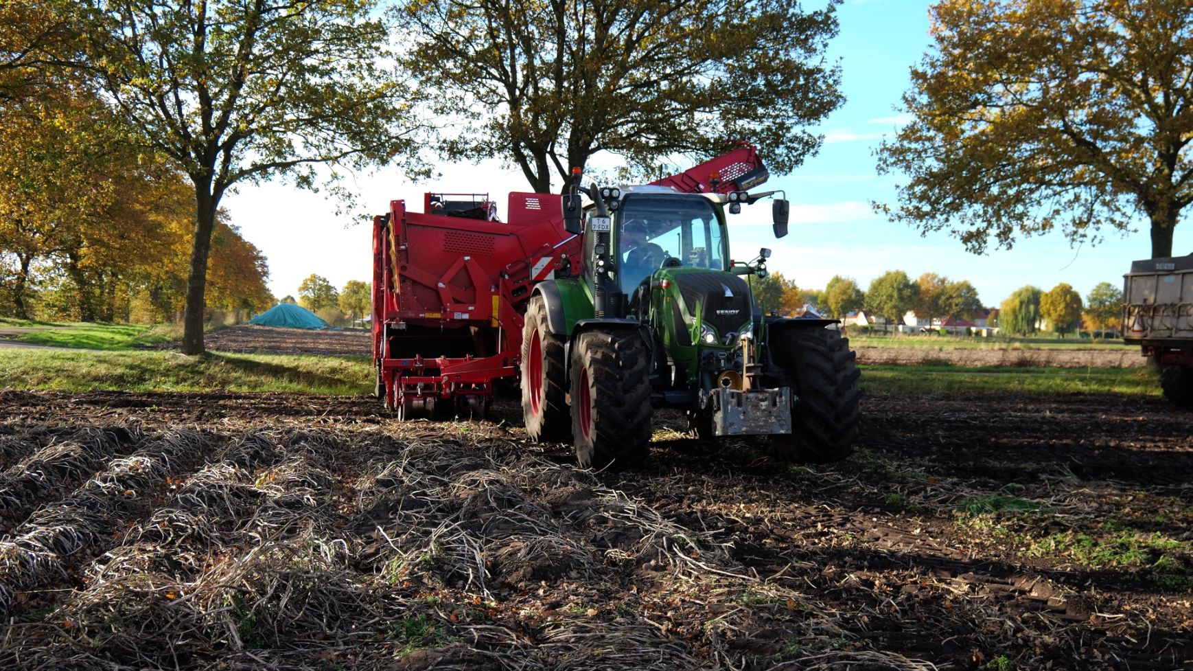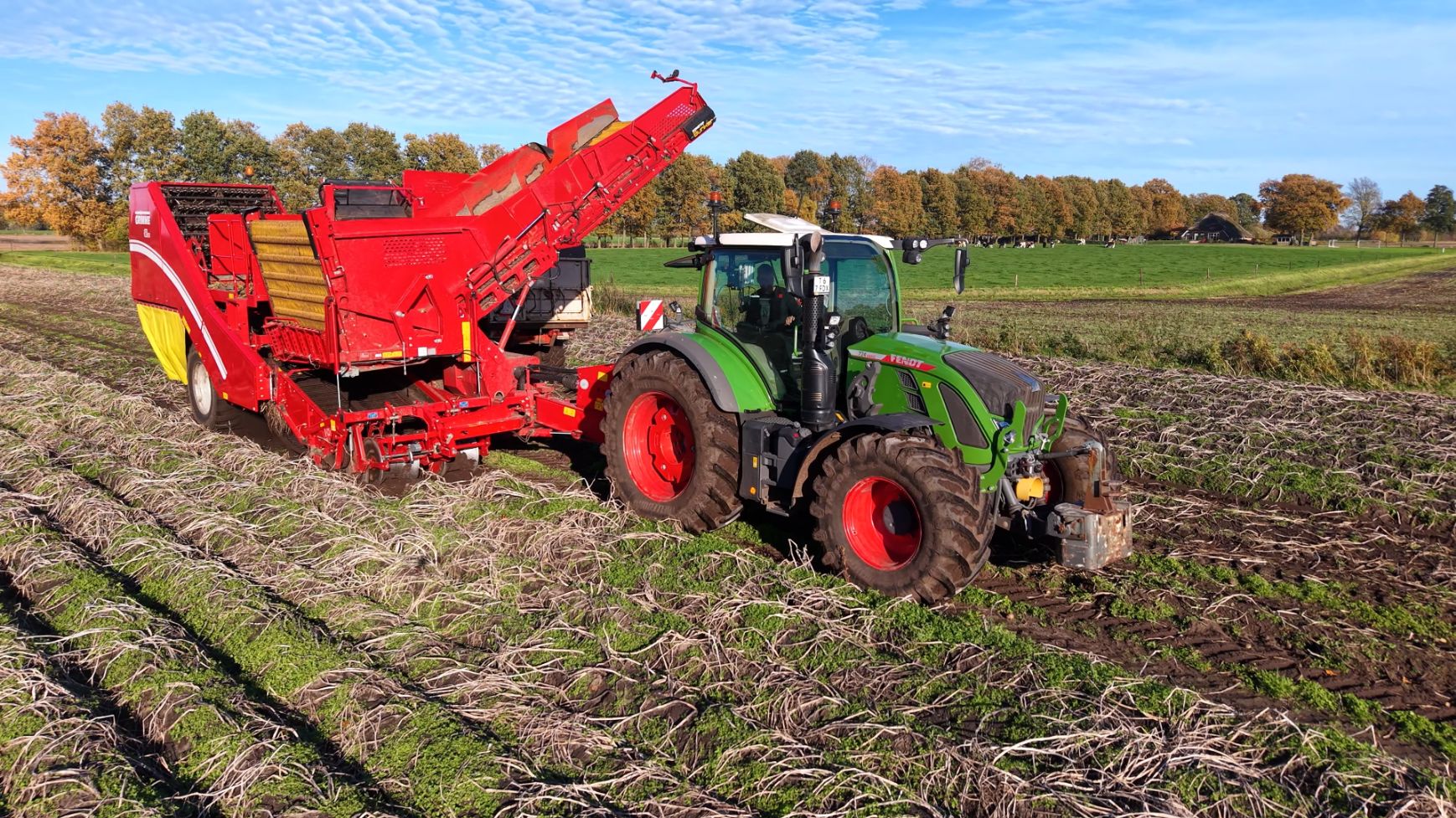 Fendt 724 met Grimme SE 260 fabrieksaardappelen rooien