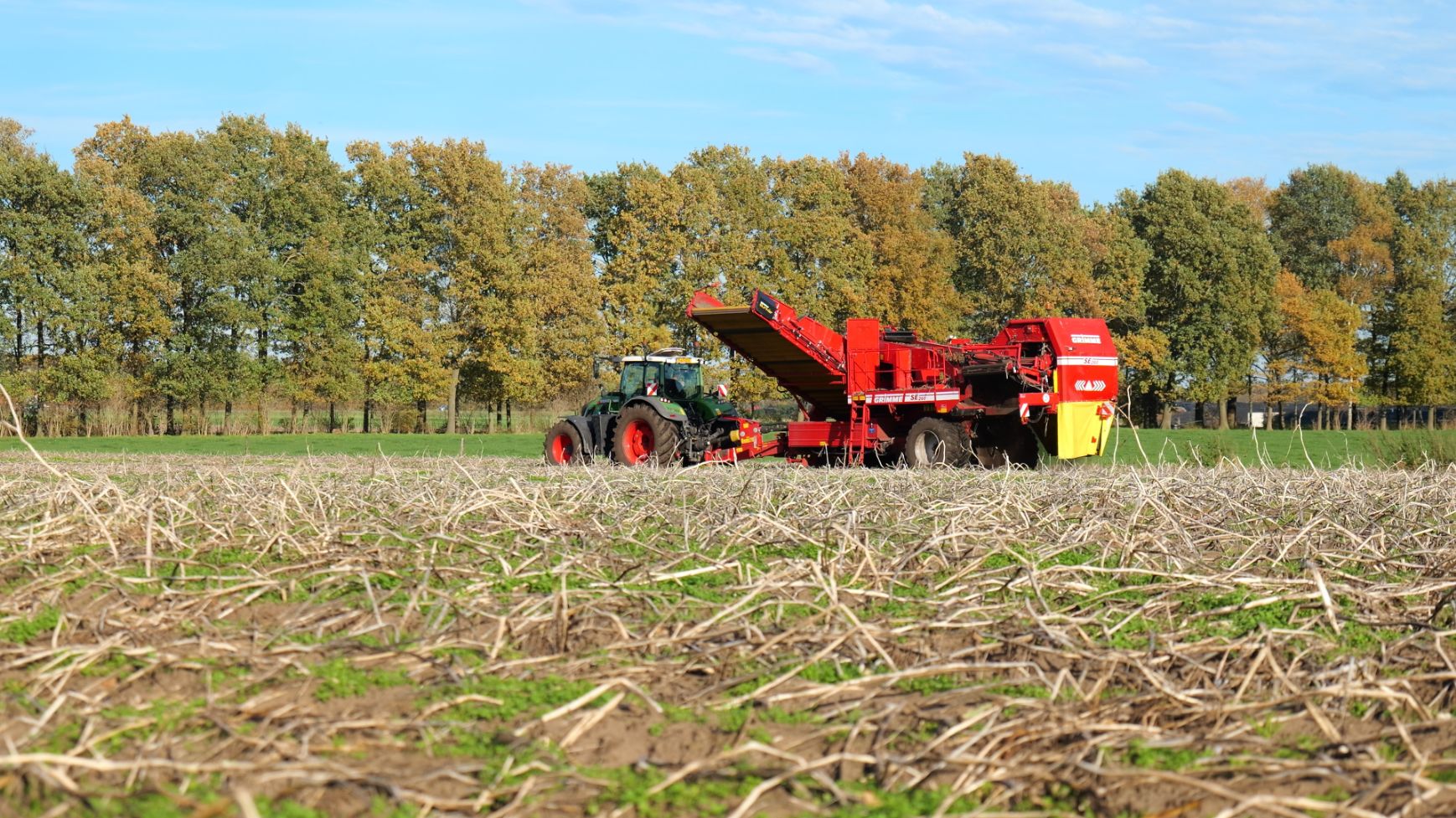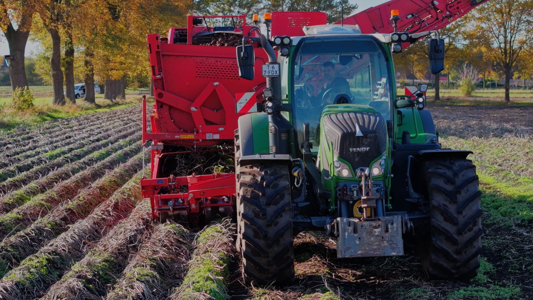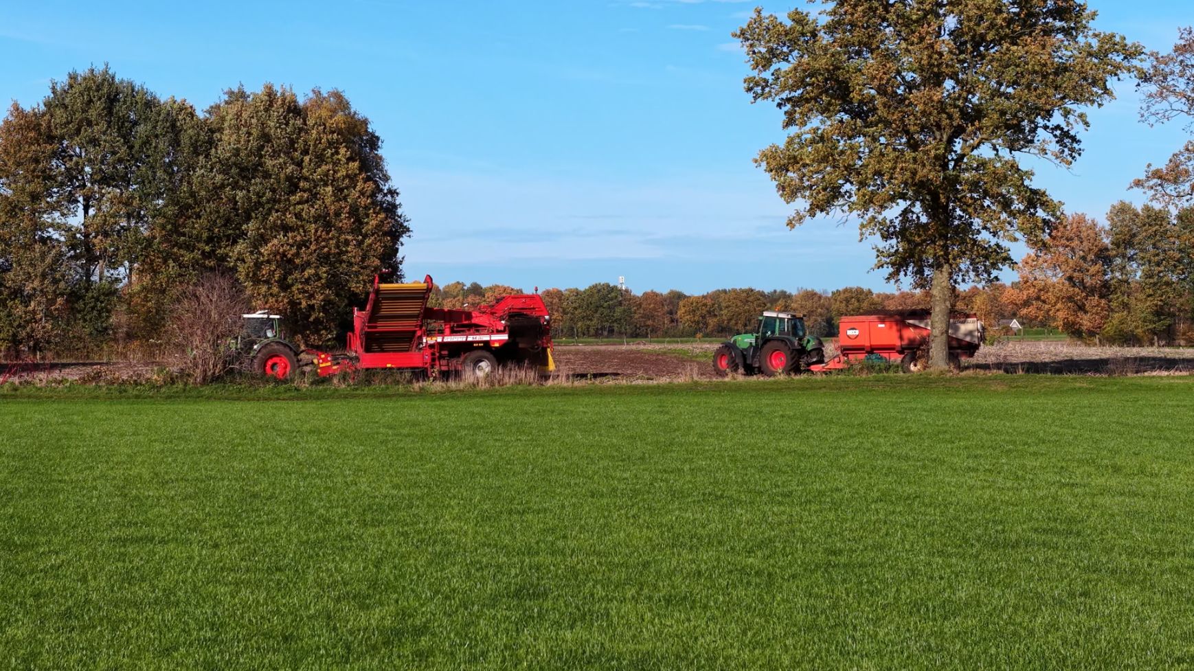 Melkveebedrijf Kramer aan het aardappelen rooien voor Avebe.