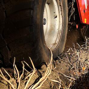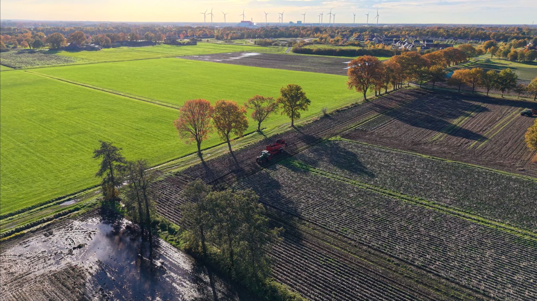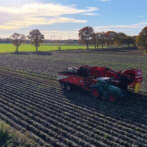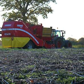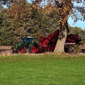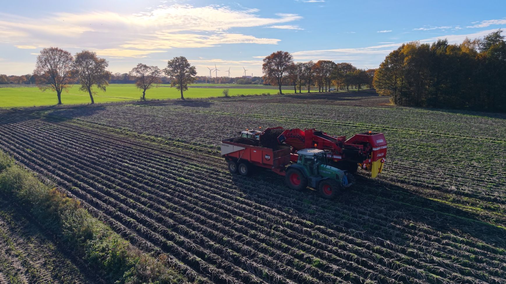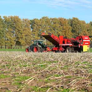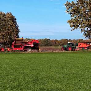Melkveebedrijf Kramer aan het aardappelen rooien voor Avebe.