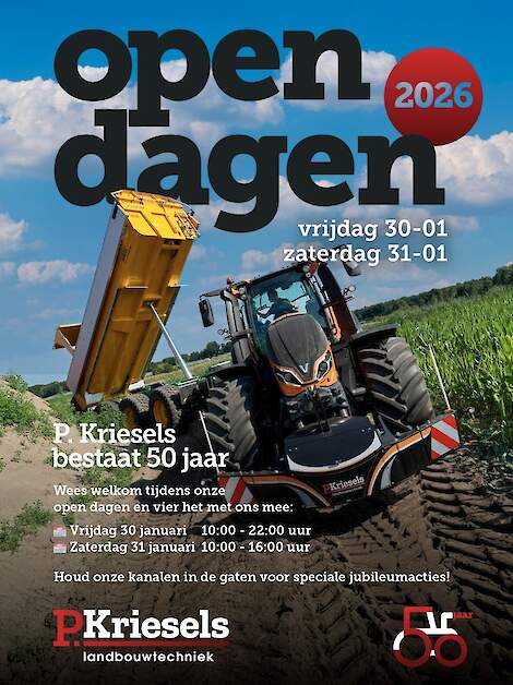In 2026 bestaat P. Kriesels Landbouwtechniek 50 jaar. Dat bijzondere jubileum willen wij graag samen met jullie vieren tijdens twee feestelijke open dagen.
