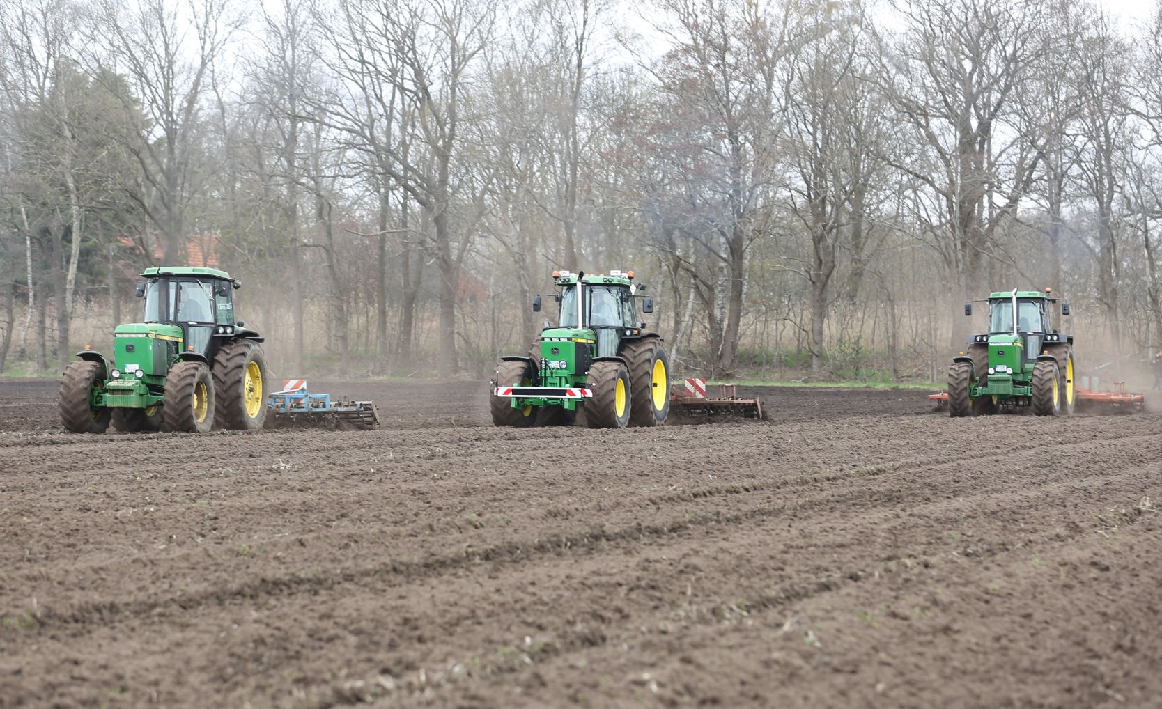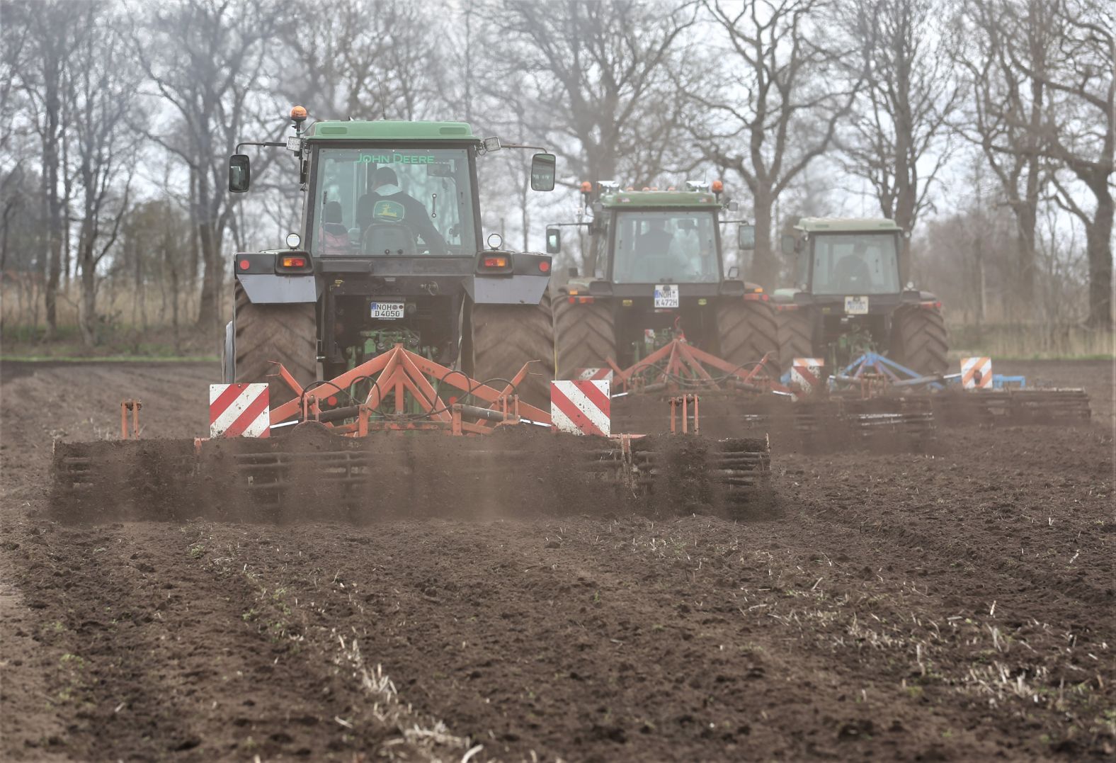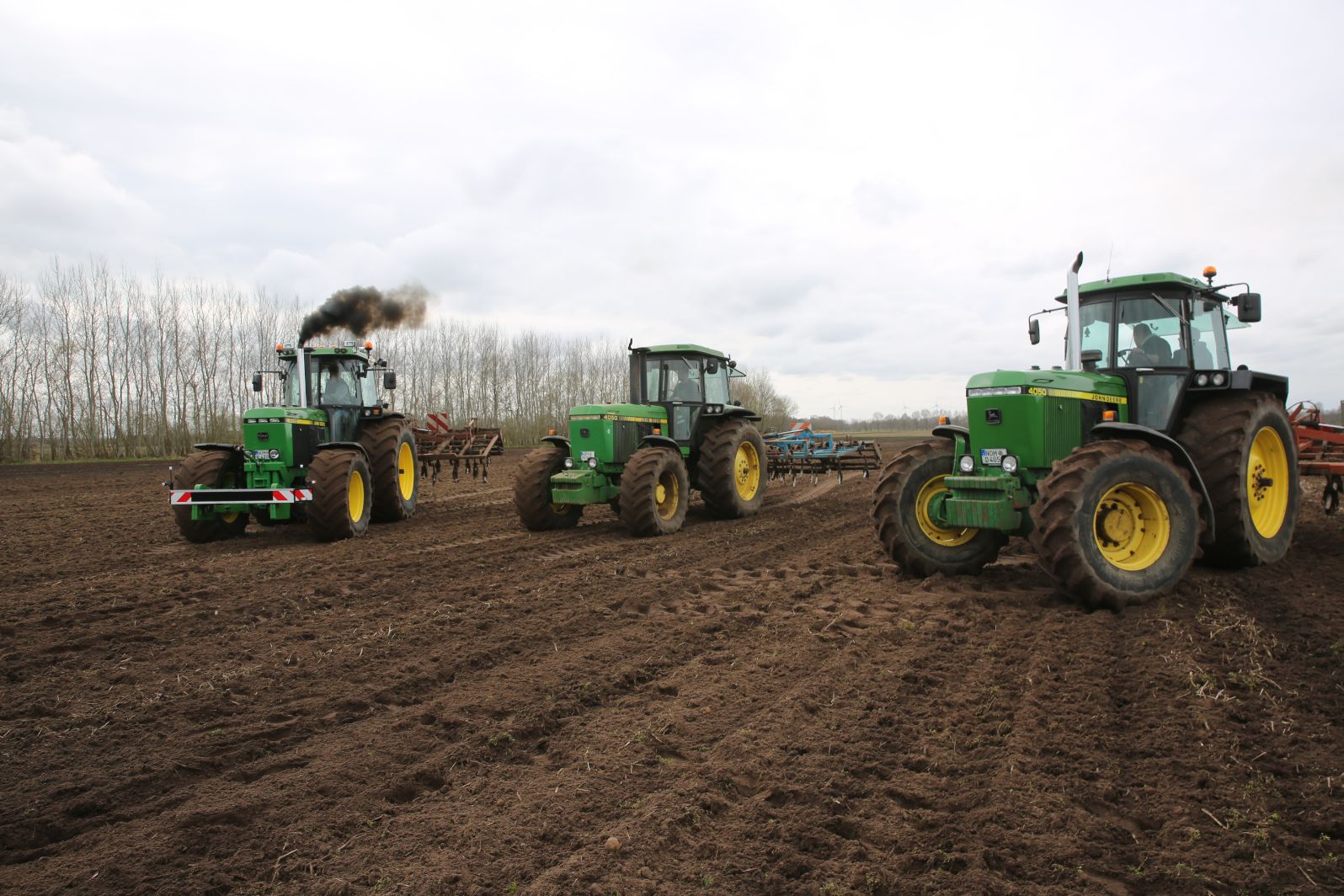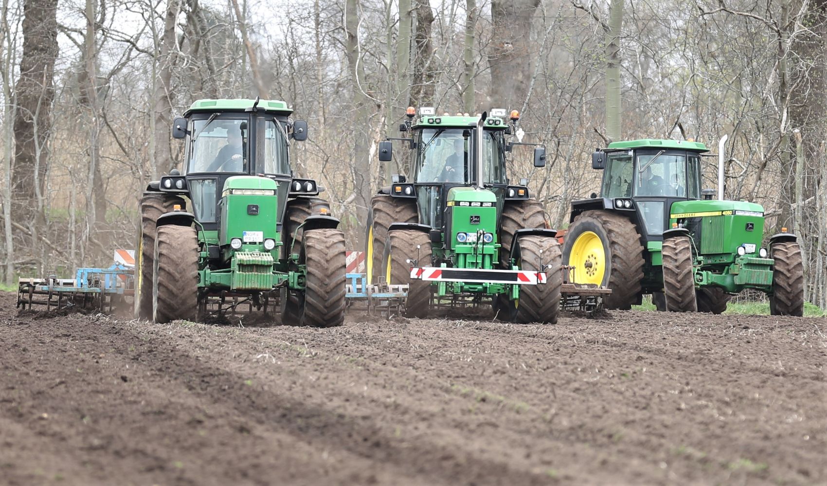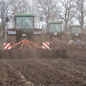In onderstaande fotoreportages leggen de Duitsers Heinrich Kortmann, Nils Janssen en Dennis Imhoff met hun Amerikaanse John Deere-trekkers met cultivators land klaar. Ze hebben een 4455 en twee 4050’s. (Meer over deze trekkers en hun eigenaren heeft in het vakblad gestaan van mei 2021).