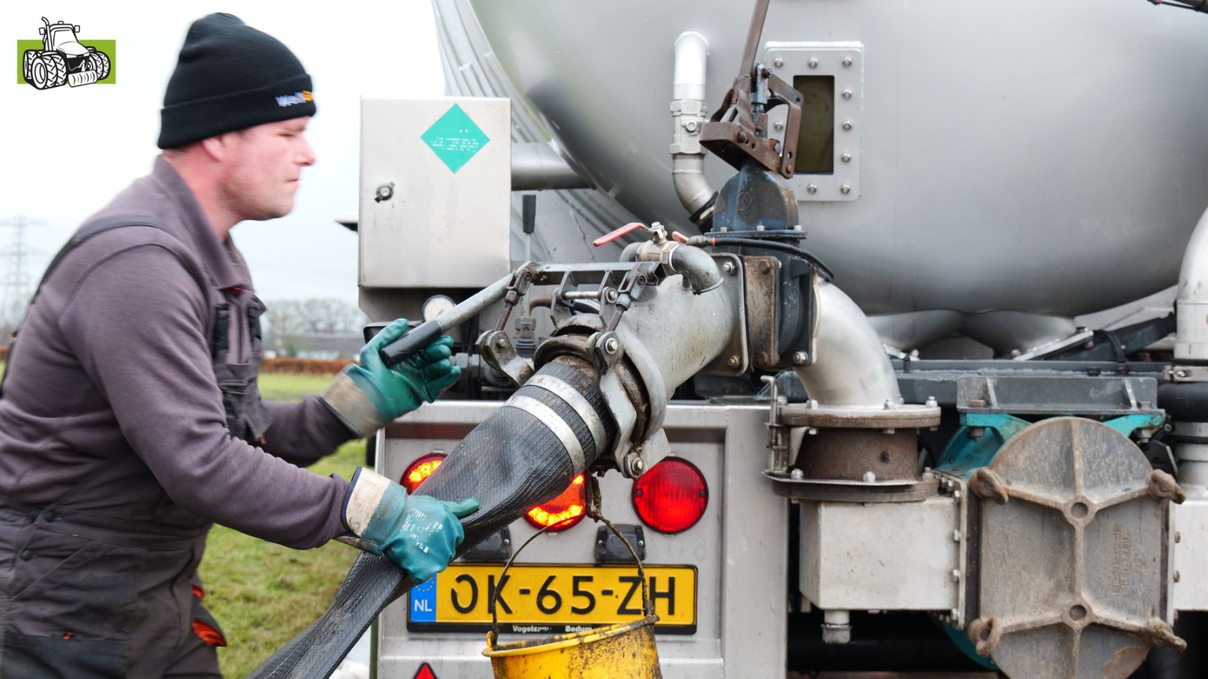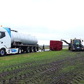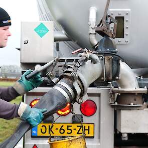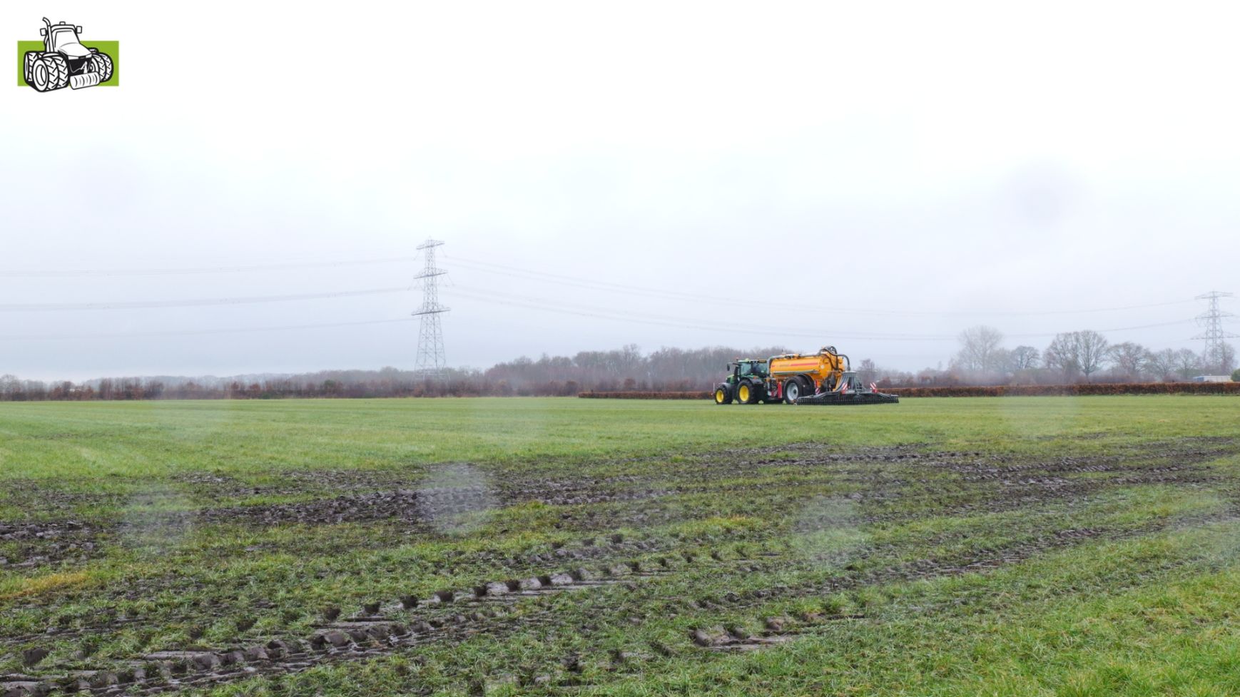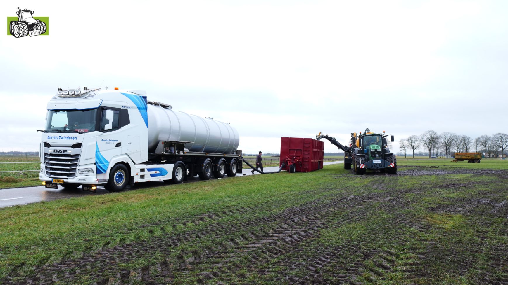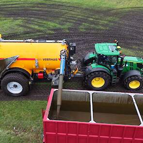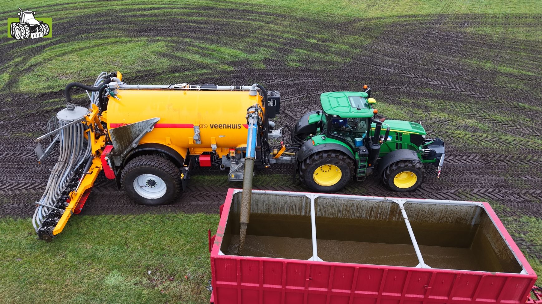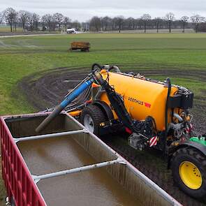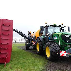 Loonbedrijf Gerrits uit Zwinderen kon vandaag de eerste mest uitrijden van 2026 met de John Deere 6230R met Veenhuis-tank.