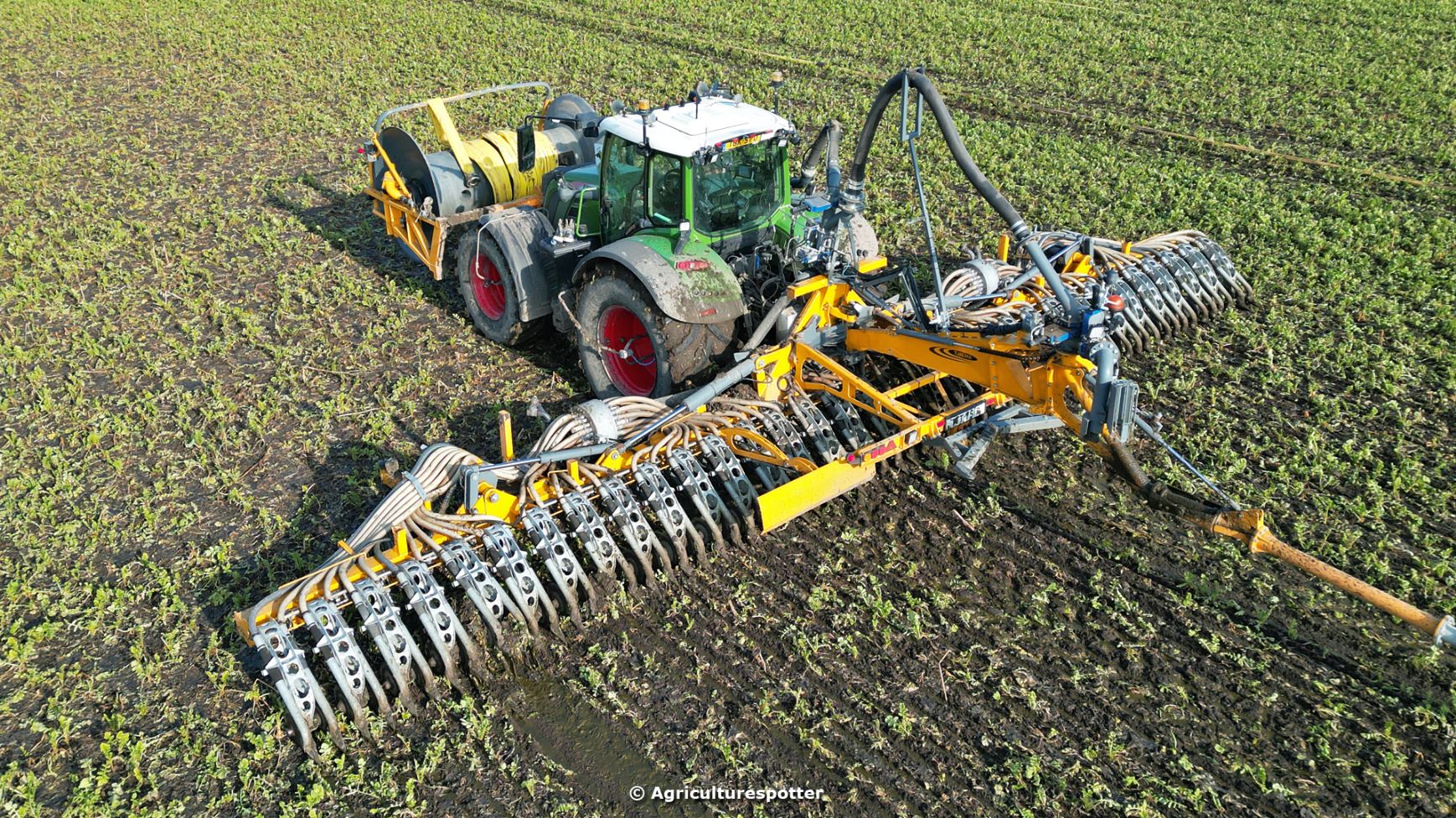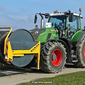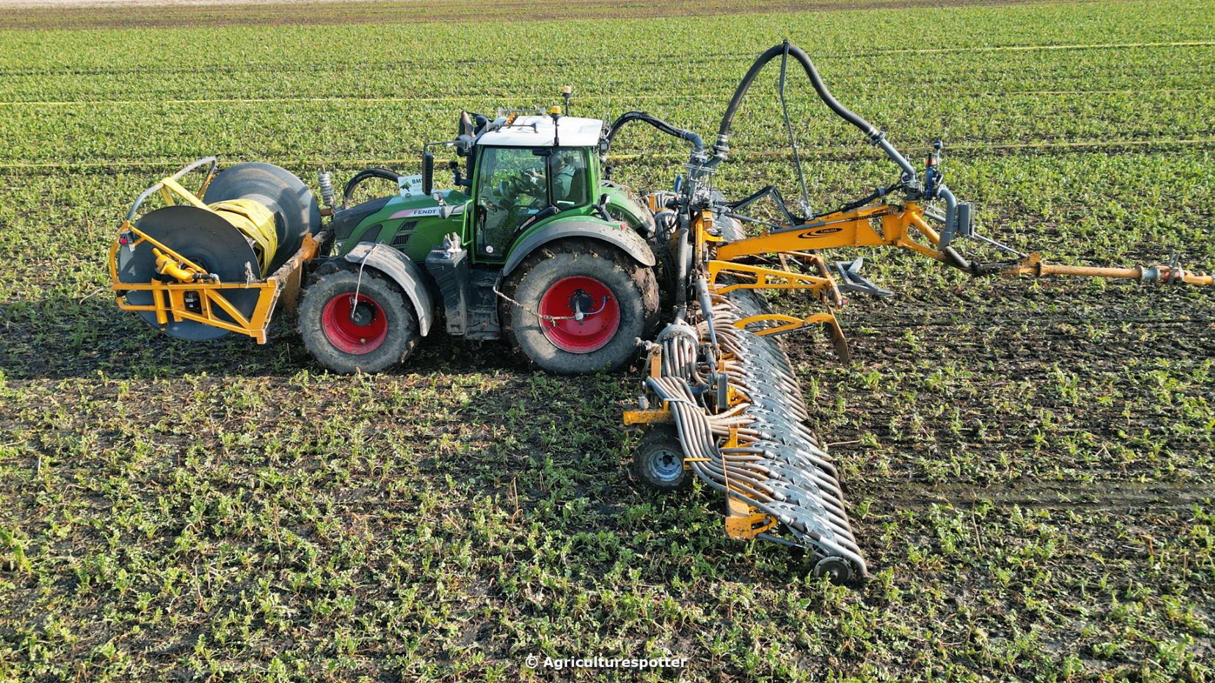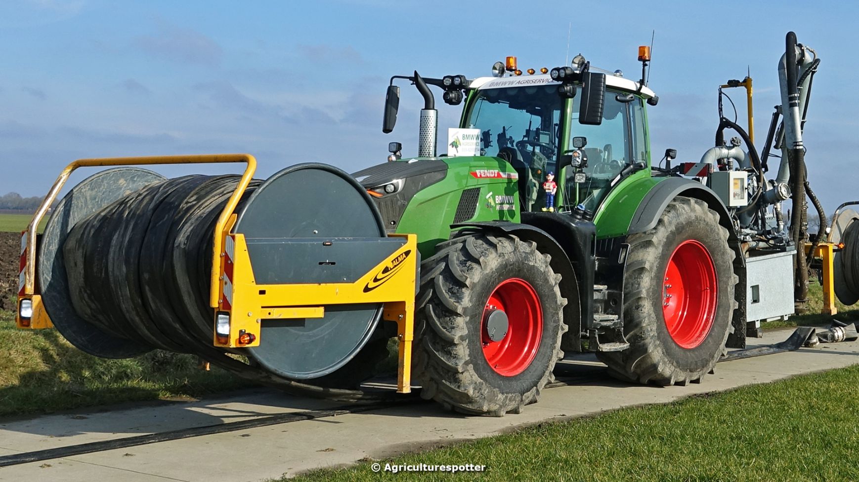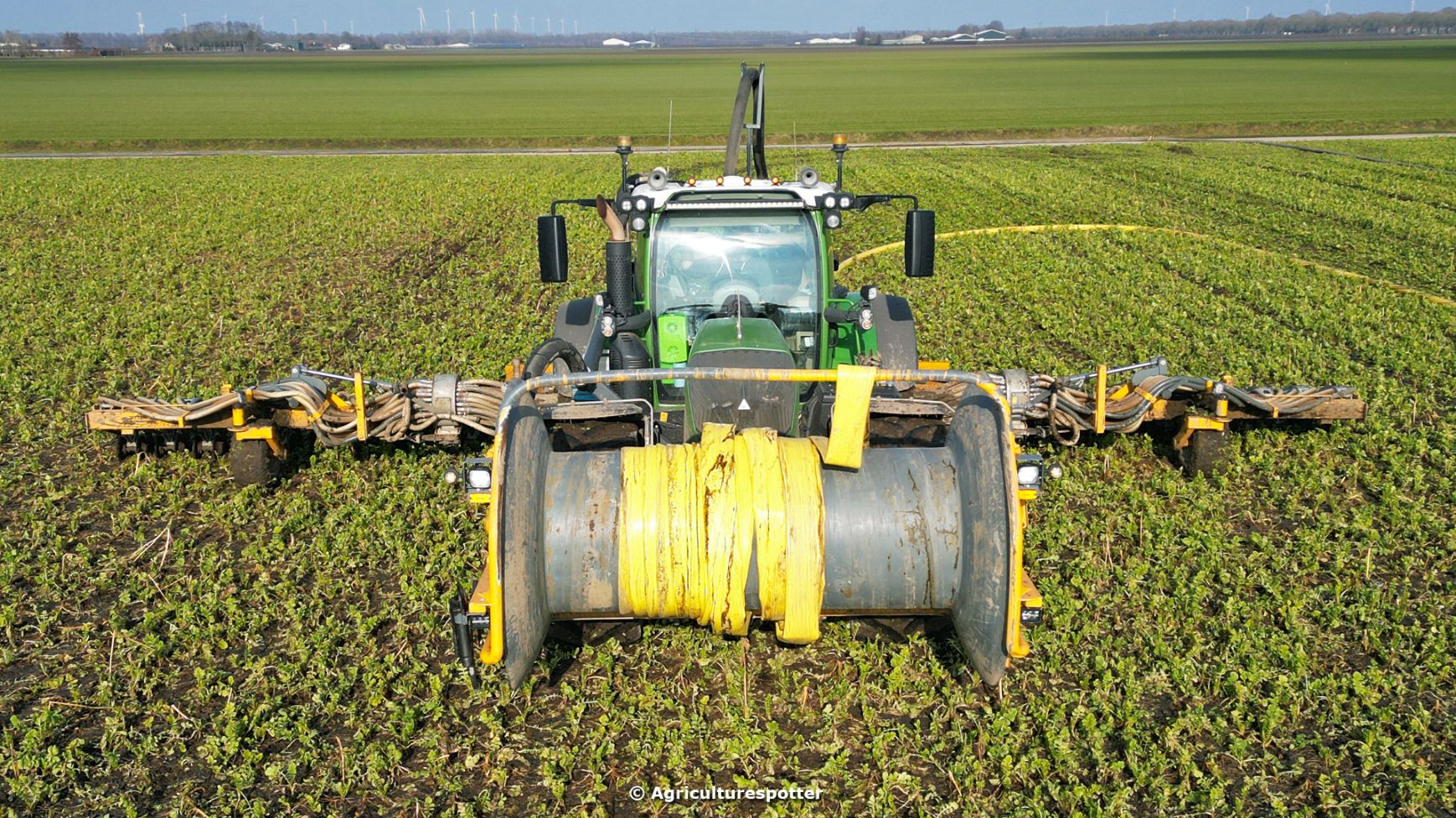 Sleepslangbemesten in Biddinghuizen met een Fendt 728 Vario en een Fendt 724 Vario met een Tjalma-sleepslangbemester van BMWW Agriservice BV uit Nijkerkerveen.