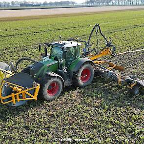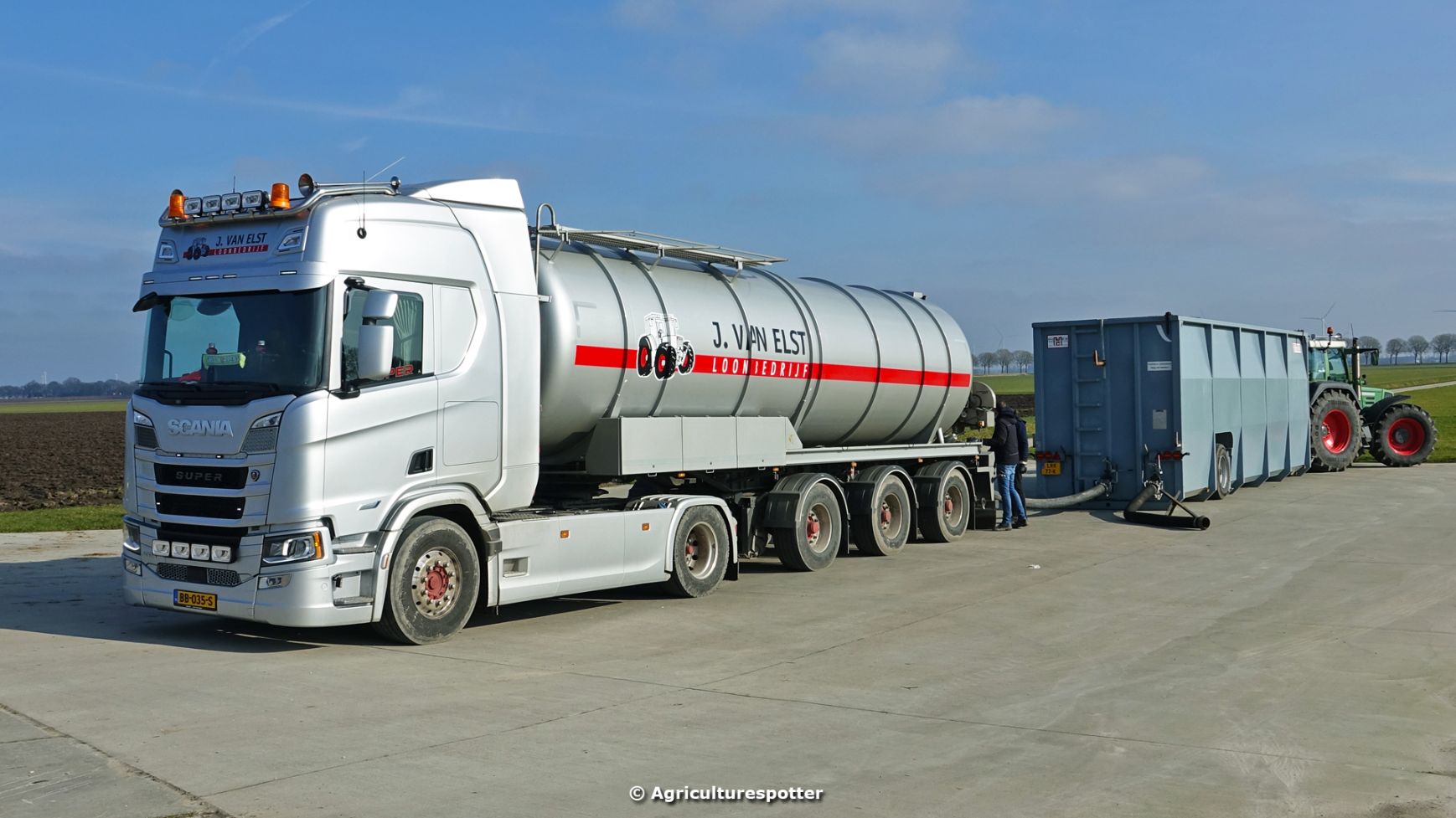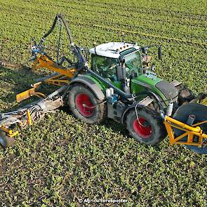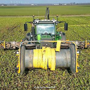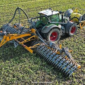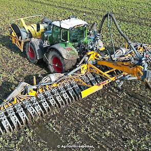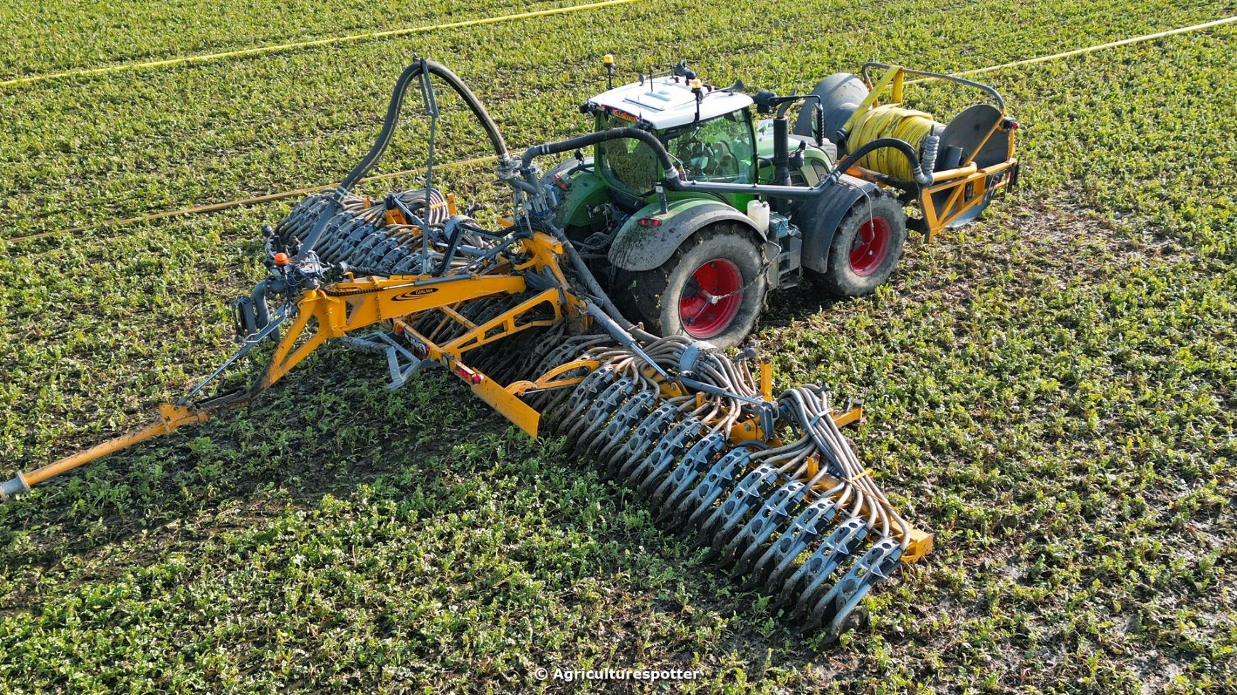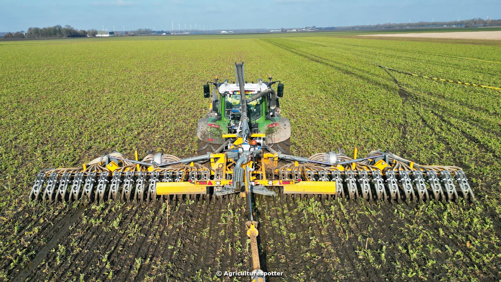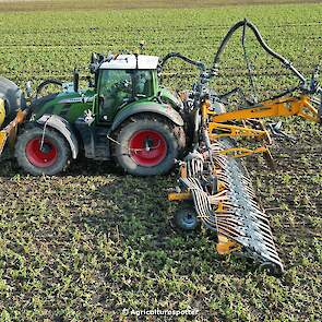 Sleepslangbemesten in Biddinghuizen met een Fendt 728 Vario en een Fendt 724 Vario met een Tjalma-sleepslangbemester van BMWW Agriservice BV uit Nijkerkerveen.