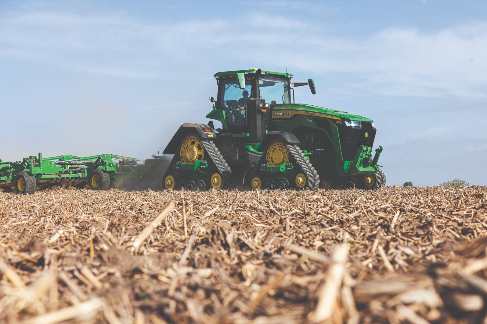 De nieuwe 8RX-modellen maken gebruik van een vernieuwd vierbaans systeem met opnieuw ontworpen onderstellen en Soucy CustomFit P-serie riemen. Het ontwerp met lage riemspanning is bedoeld om de belasting van de riem te verminderen en de levensduur te verlengen. Afhankelijk van de configuratie biedt het rupsbandsysteem een contactoppervlak van maximaal 4,87 m² en daarmee een bodemdruk van slechts 0,4 kg/ cm², wat bodemverdichting tot een minimum beperkt.