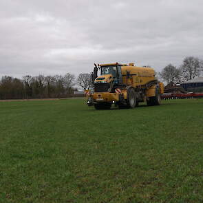 Grasland bemesten door loonbedrijf Westerveld uit Breedenbroek met een Challenger Terra Gator TG 845 CVT.