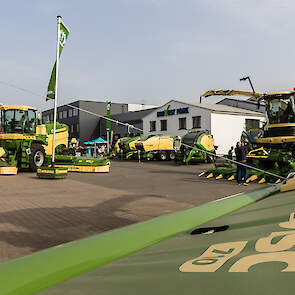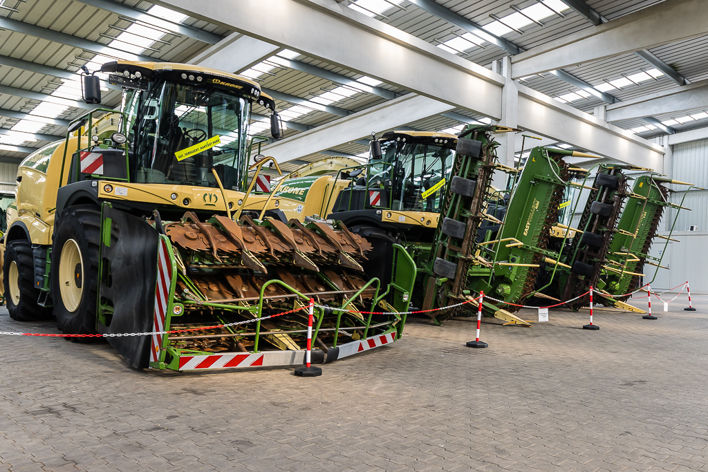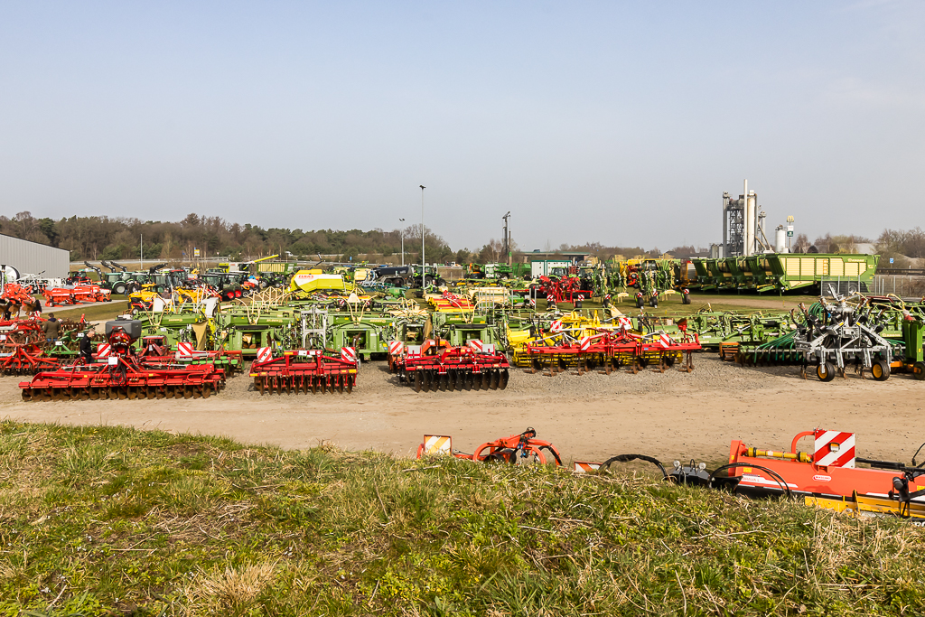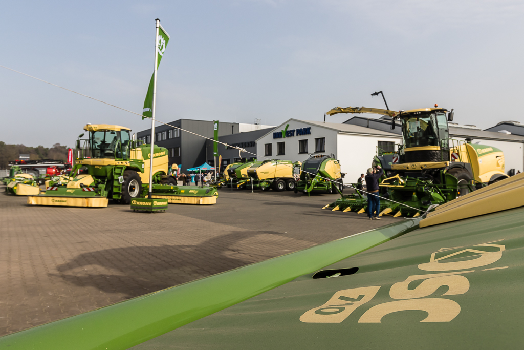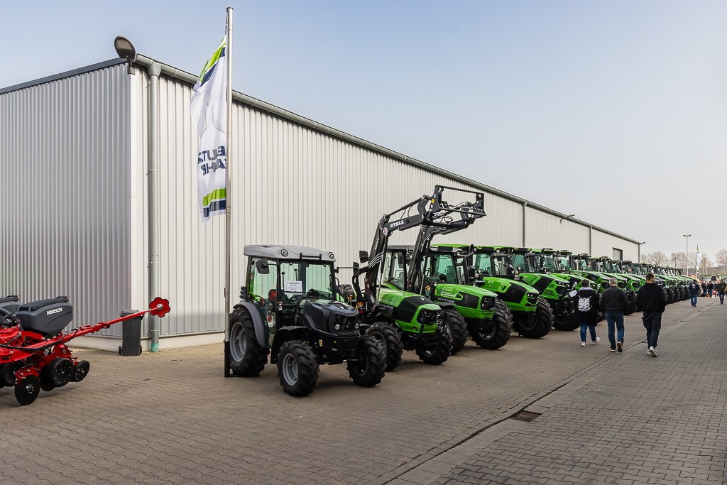 En Deutz-Fahr? Hoewel D. Lankhorst en Landhorst Nord het merk nog een jaar in het assortiment houden en de tractoren uit Lauingen jarenlang het visitekaartje van de dealer waren, stonden ze dit keer letterlijk een beetje in de schaduw. Dicht opeengepakt tussen de werkplaats en de hal met gebruikte machines stond een hele rij Warrior-modellen en andere groene machines opgesteld.