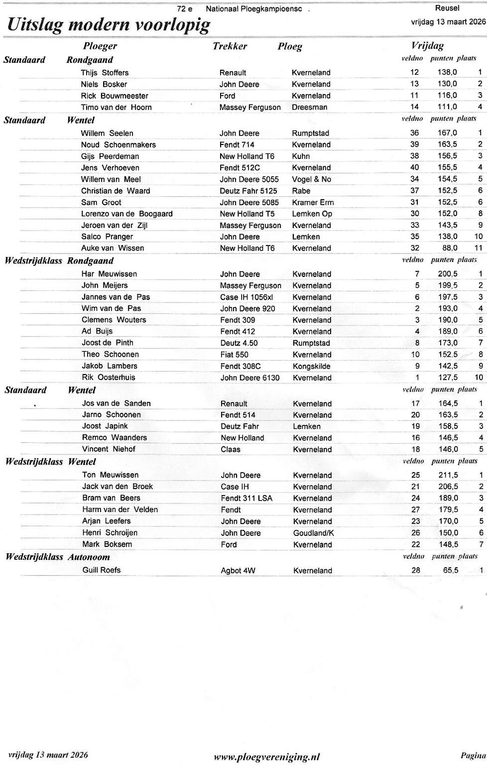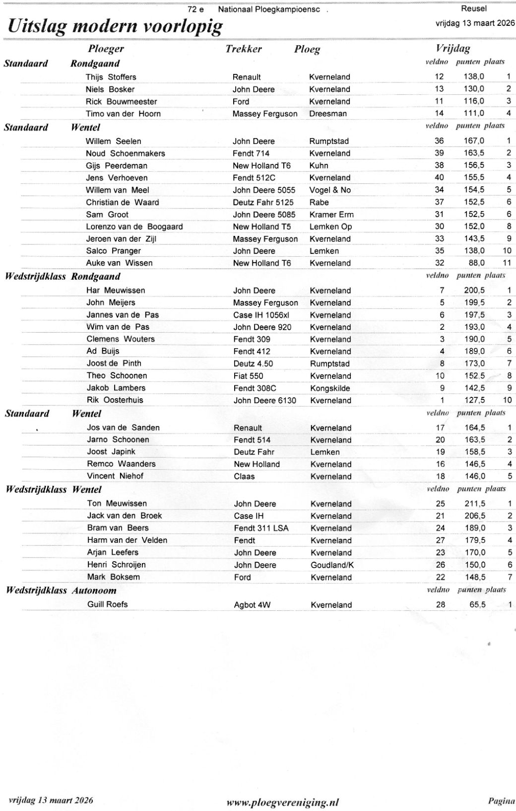Bijgaand het begin van elke officiële wedstrijddag, de omstandigheden verder op de dag waren niet ideaal, veel regen, maar zoals altijd voor iedereen hetzelfde, op zaterdag 14-3 de 2e wedstrijddag. Bijgaand ook de uitslag van de 1e dag en de AOC kampioenen.