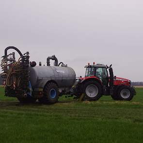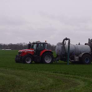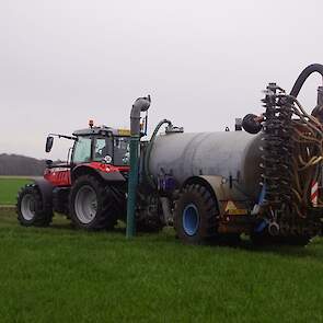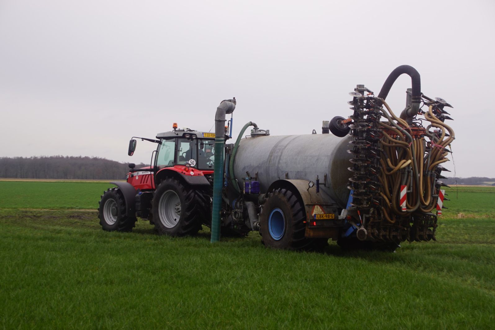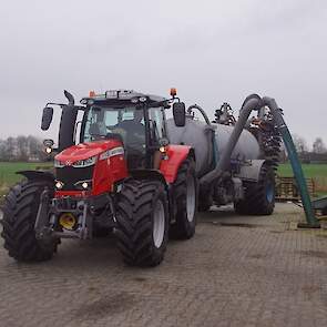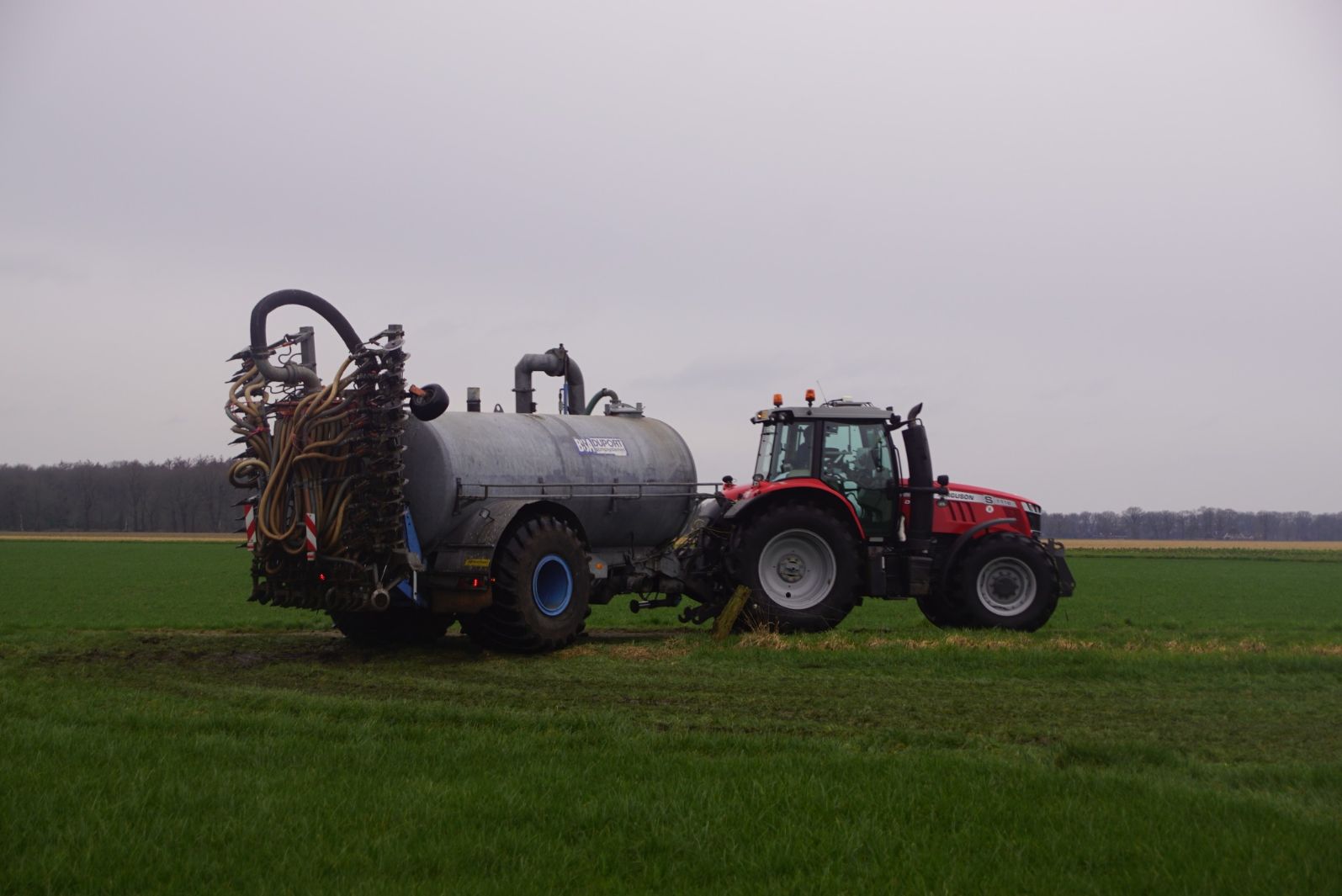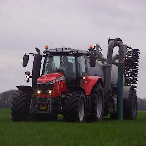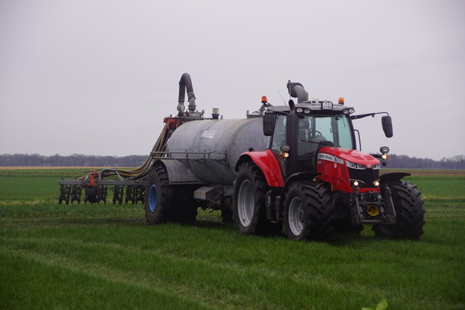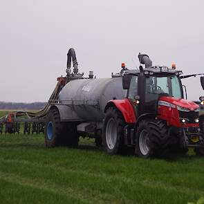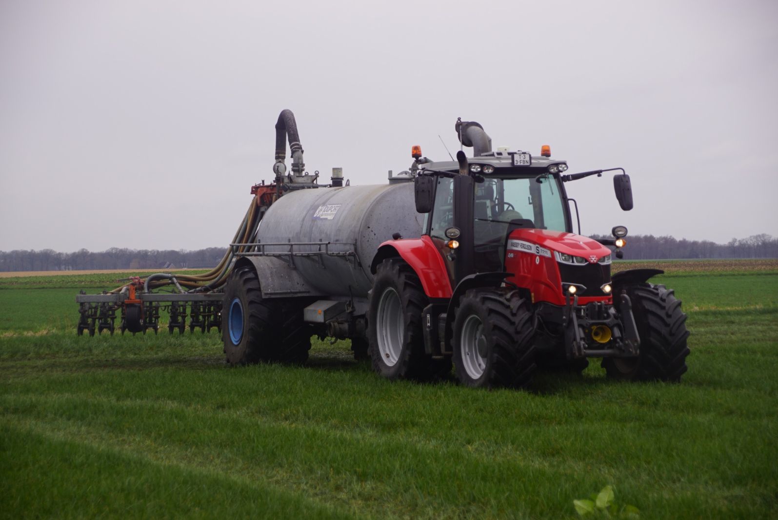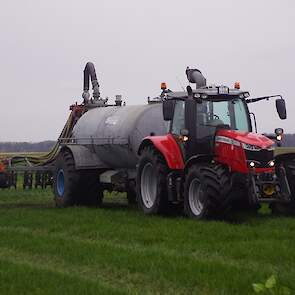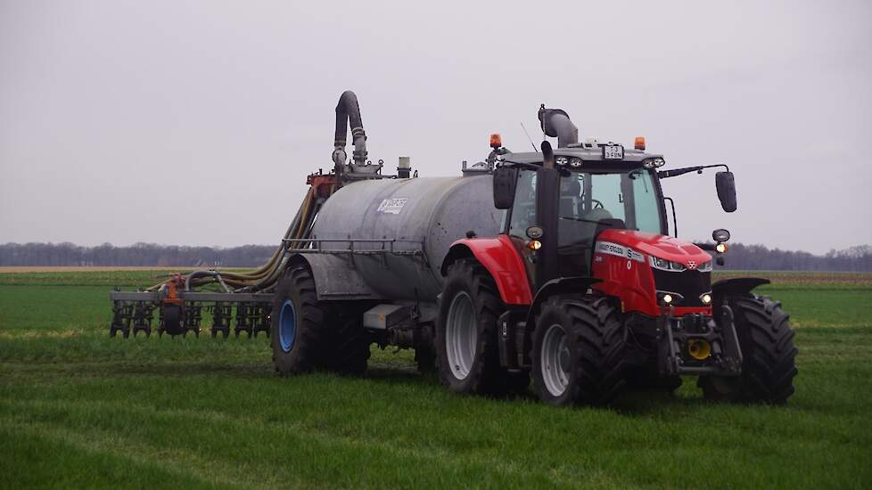BSA Duport-tank met Massey Ferguson S 7718 Dyna VT grasland aan het bemesten.