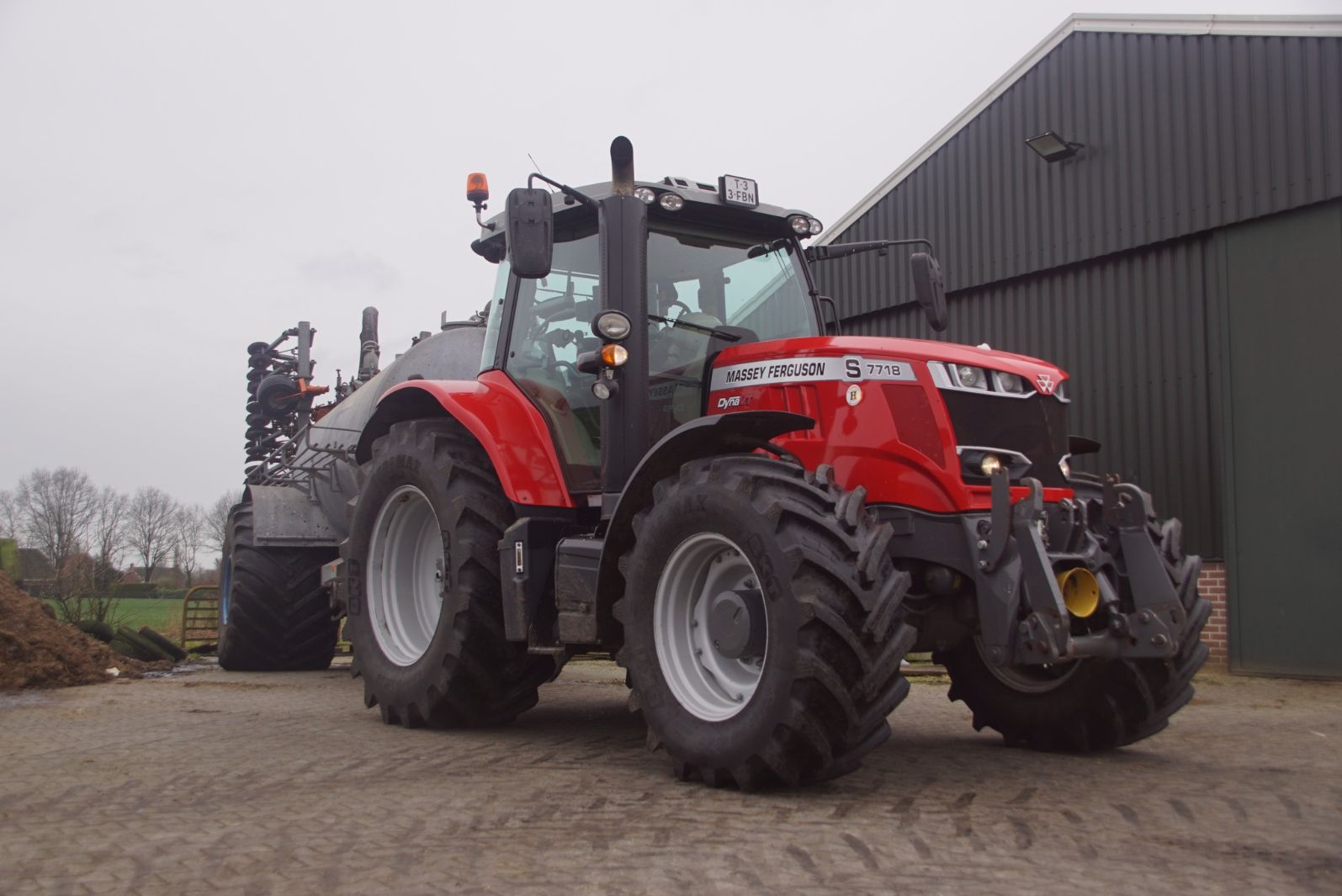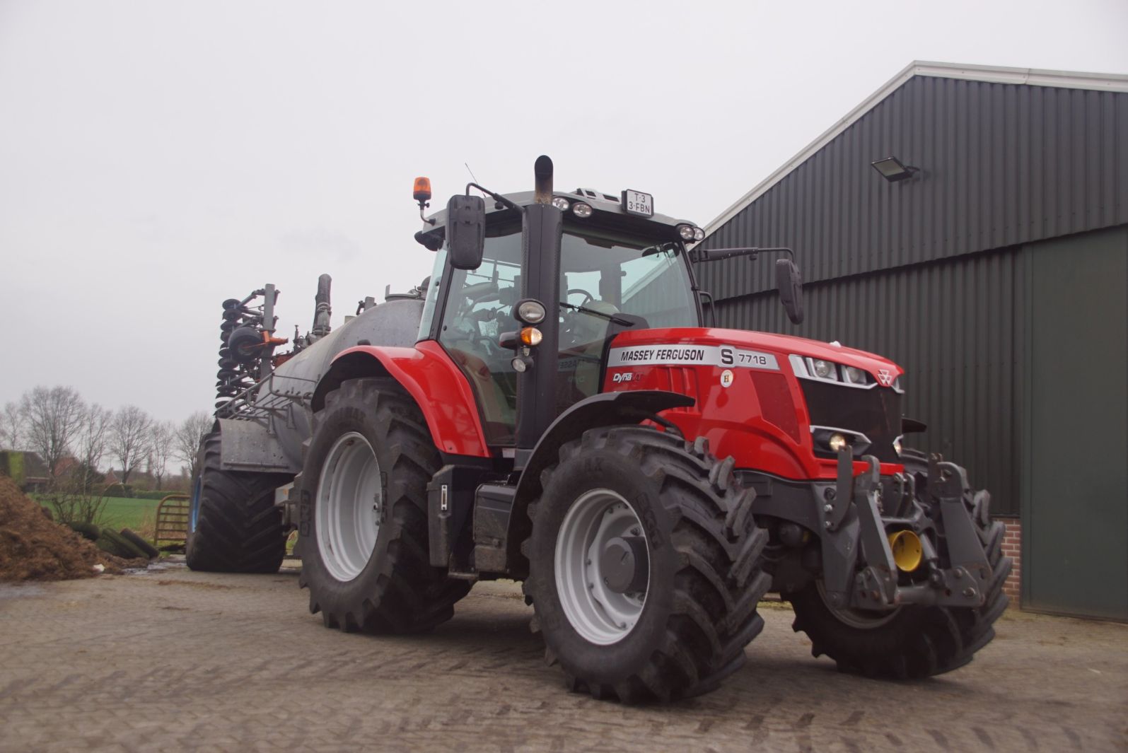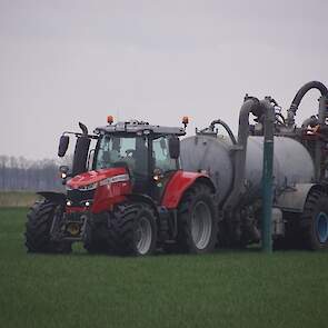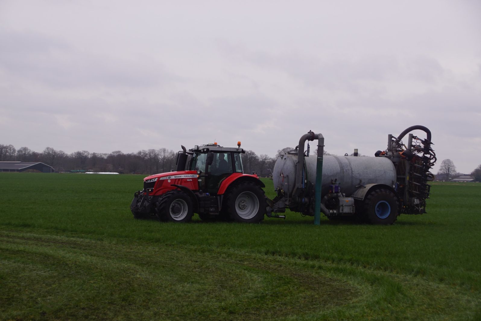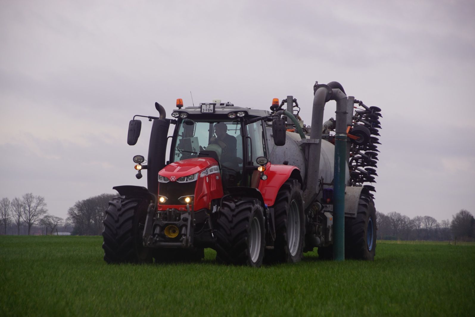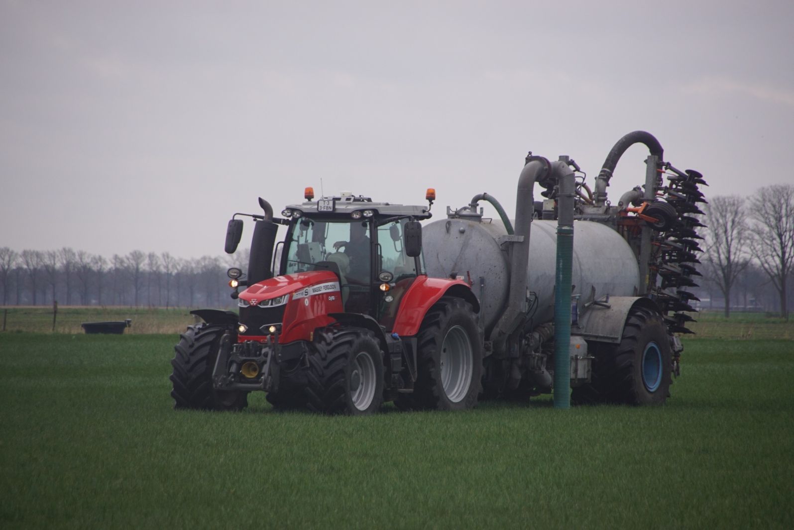 BSA Duport-tank met Massey Ferguson S 7718 Dyna VT grasland aan het bemesten.